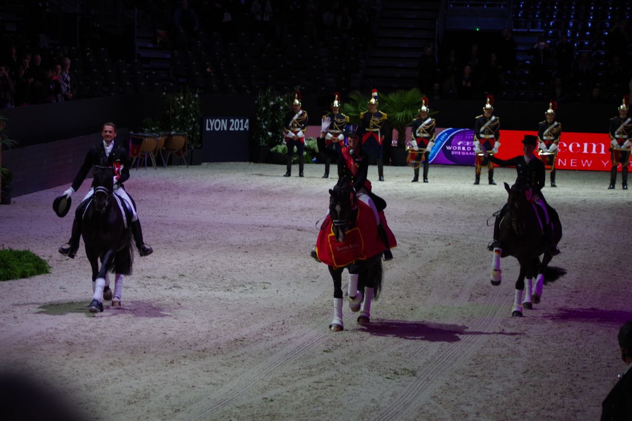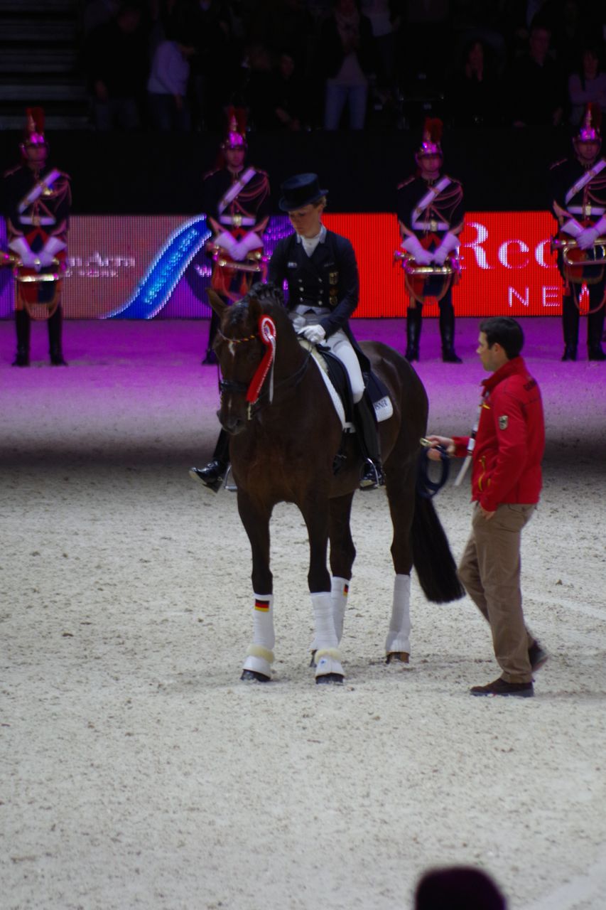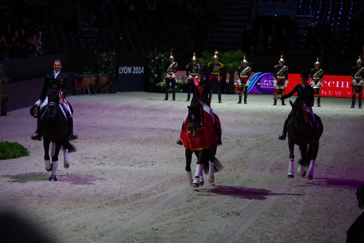 Quel discipline fascinante ! Grâce à la création de la Coupe du Monde, le dressage a pu s’exprimer sur un modèle accessible au grand public, la reprise libre en musique (Grand Prix Freestyle) : moments d’émotions que de voir piaffer, passager, pirouetter ou changer de pied au galop ces athlètes en harmonie sur des compositions musicales spécialement adaptées à leur cadence. L’incroyable maitrise des montures par les cavaliers impose le respect, la concentration est le maître mot. Et c’est dans des arènes pleines mais au public silencieux et tendu que les candidats aux titres entament des véritables chorégraphie équestres. Le spectacle est de toute beauté, la précision des gestes, la grâce des couples, tout est là pour susciter l’émotion. La gagnante Charlotte Dujardin a ravi le public avec une prestation exceptionnelle de beauté.