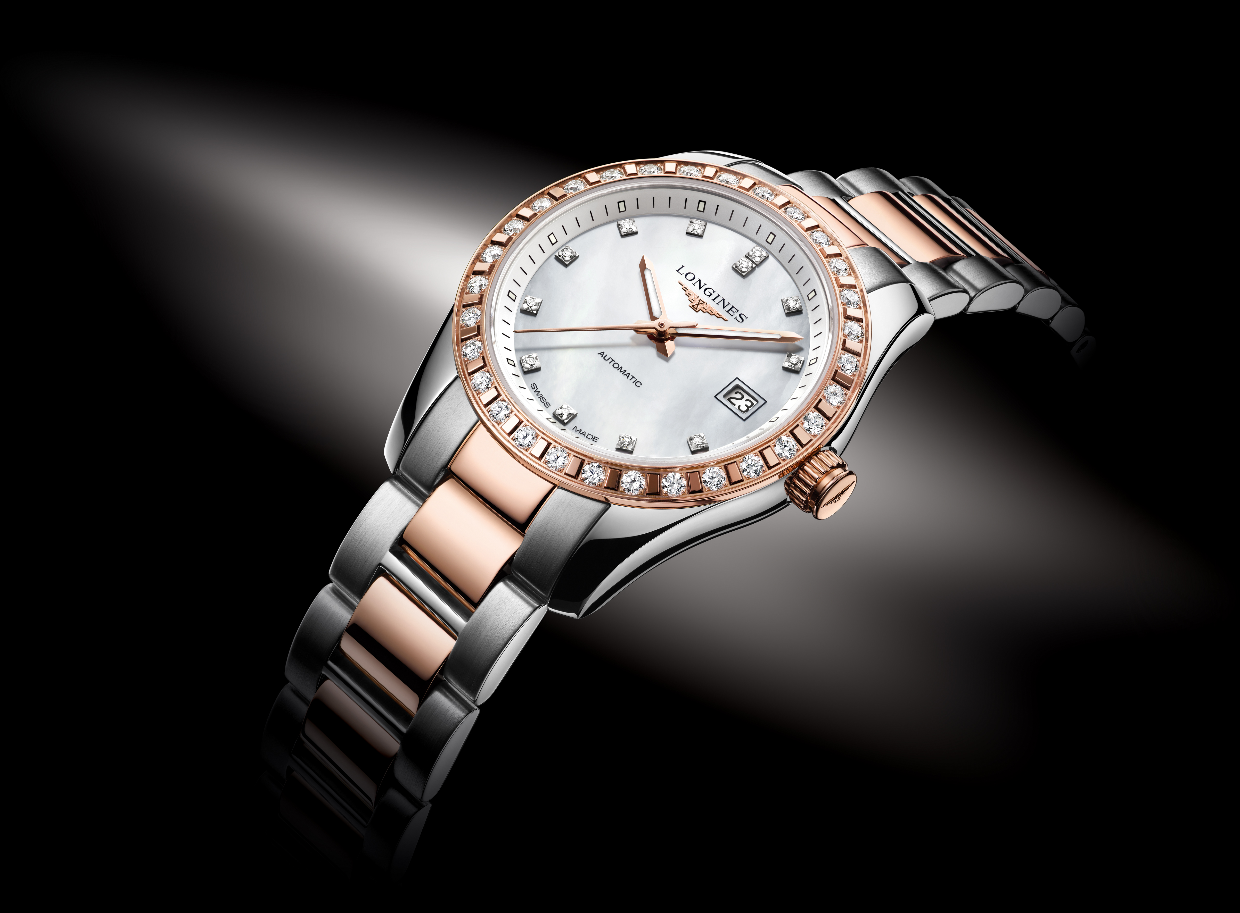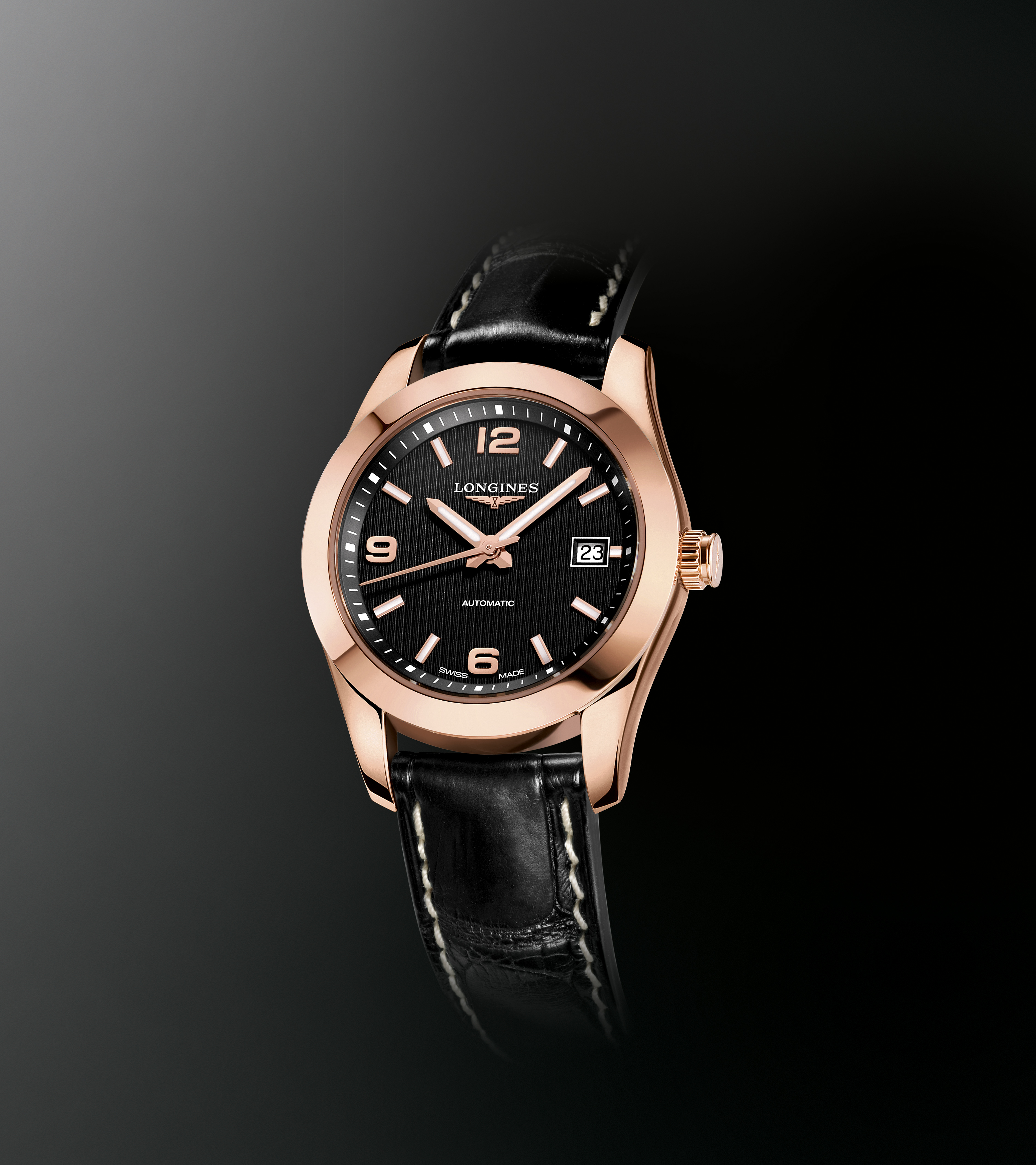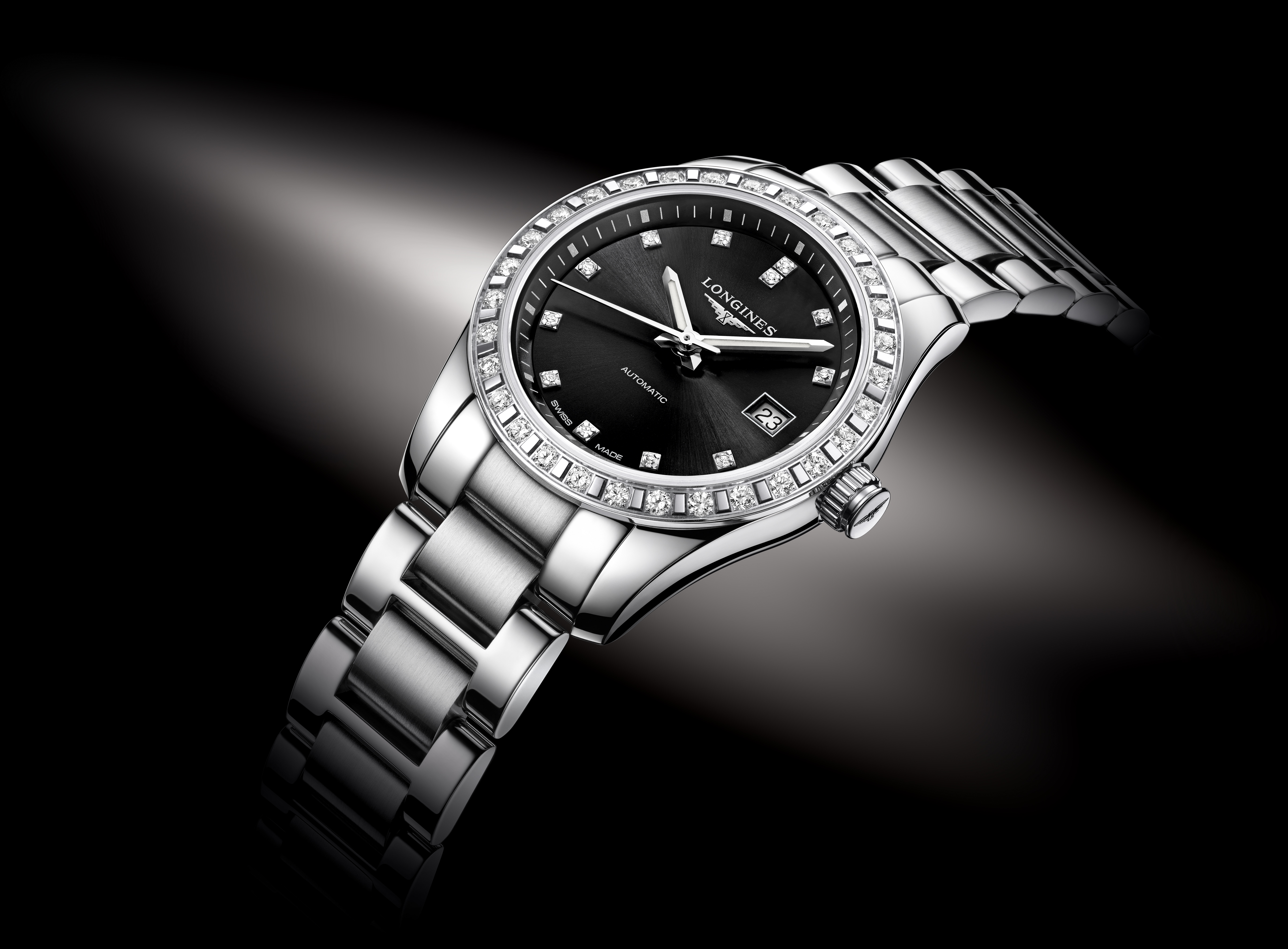 Conquest Classic se décline en trois tailles. Les modèles féminins présentent un diamètre de 29,50 mm. Ces pièces affichent les heures, minutes et secondes ainsi que la date et sont disponibles en acier, or rose ou dans une harmonie d’acier et d’or rose. Le cadran noir ou argenté comporte les chiffres 12, 6 et 9 en applique donnant une touche sportive. Ces différentes versions sont également disponibles dans un diamètre de 40 mm. Des cadrans en nacre sertis de 12 diamants confèrent un caractère particulièrement raffiné à certains des modèles féminins dont la lunette peut également être ornée de 30 diamants. Ces modèles sont équipés de bracelets en alligator noir, en acier ou en acier et or rose, toujours assortis au cadran et disposant d’un fermoir déployant de sécurité.