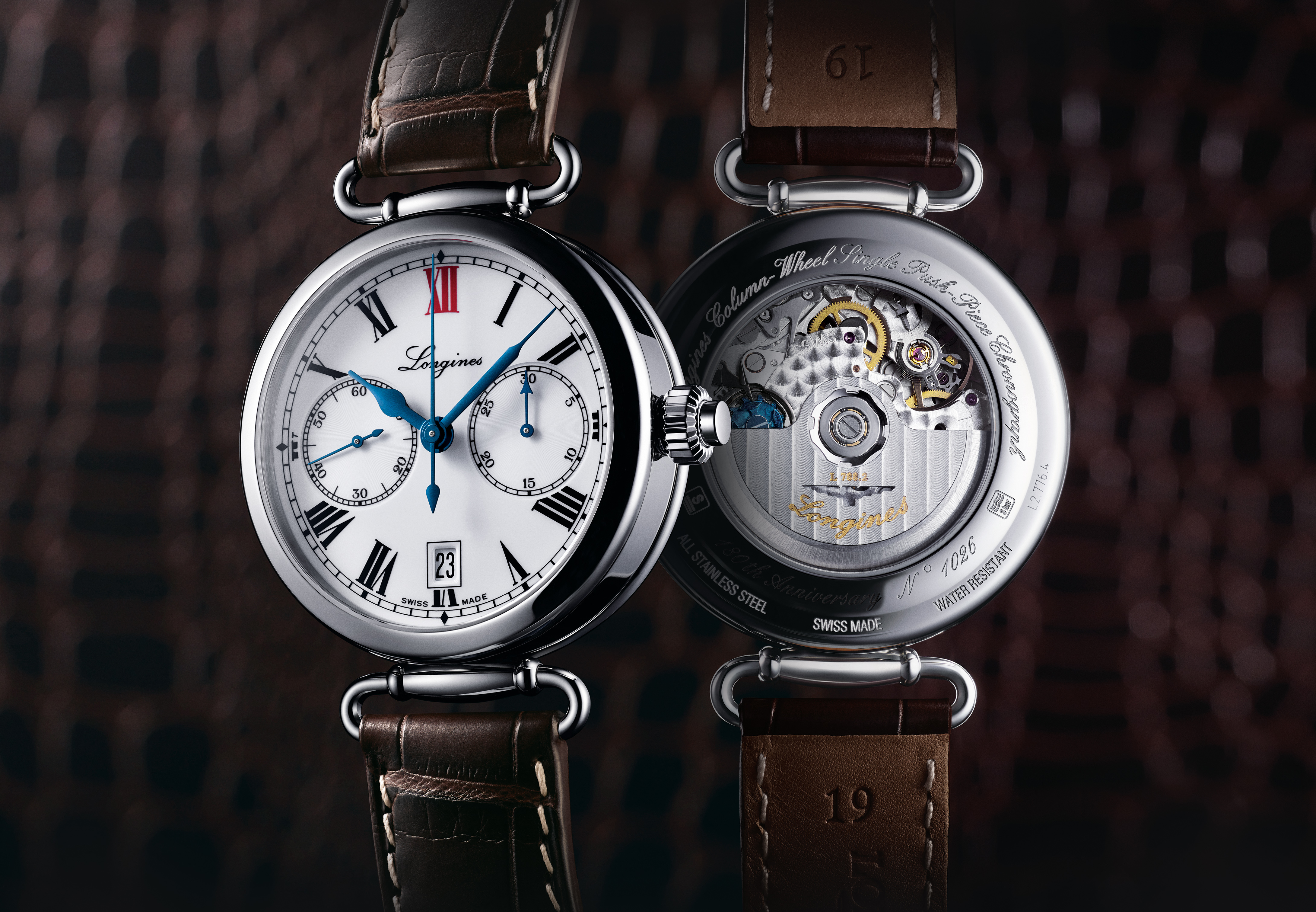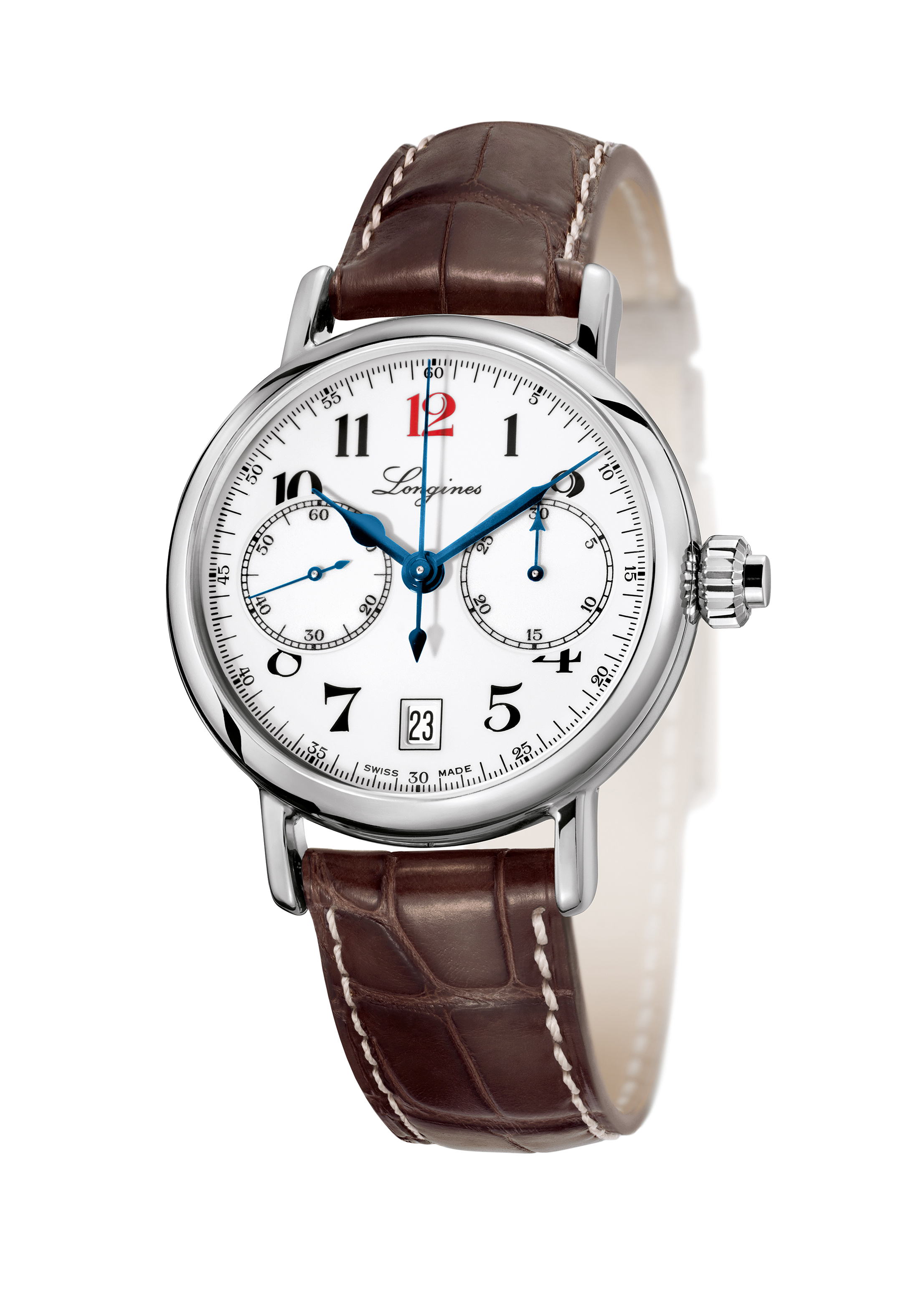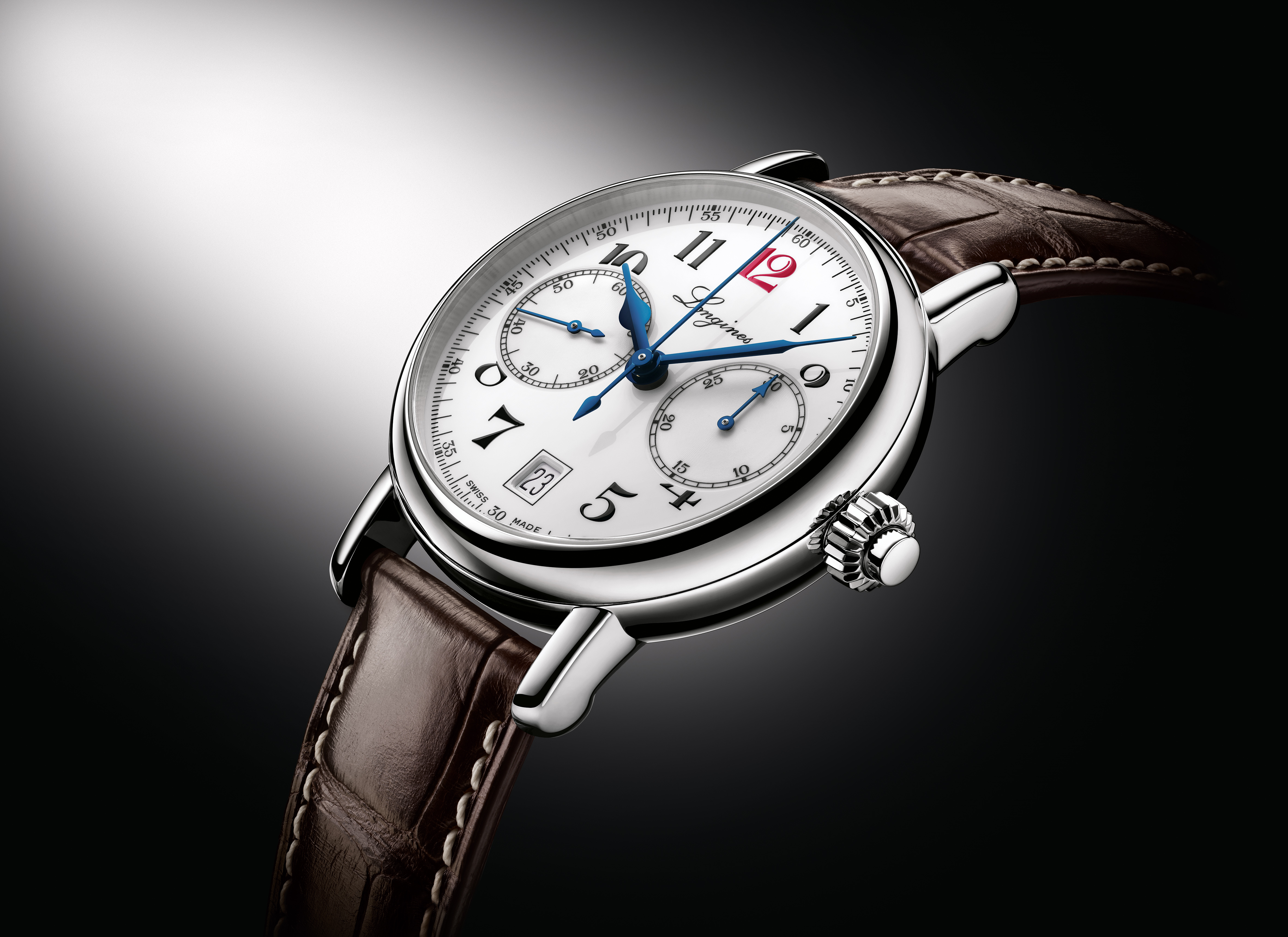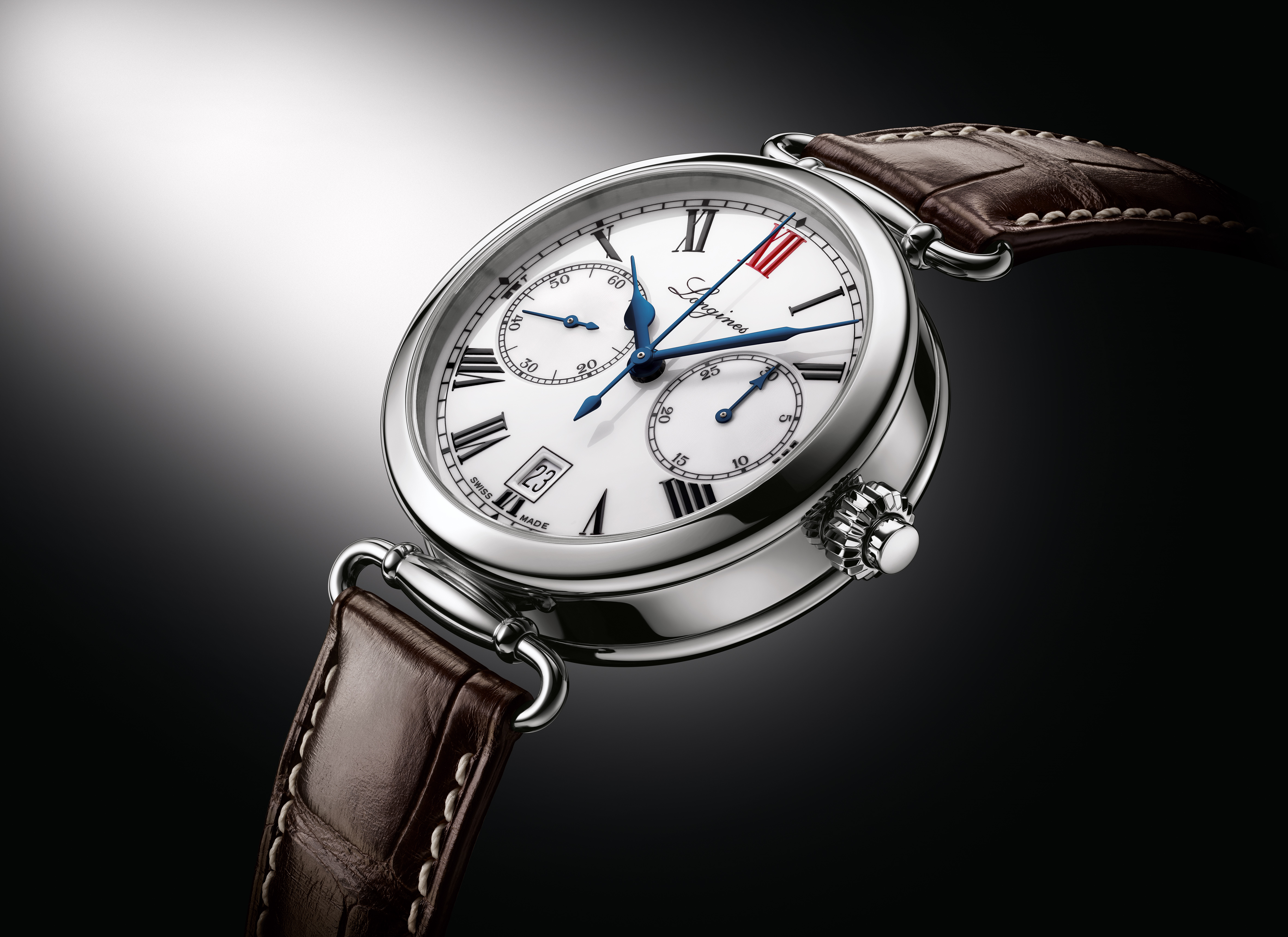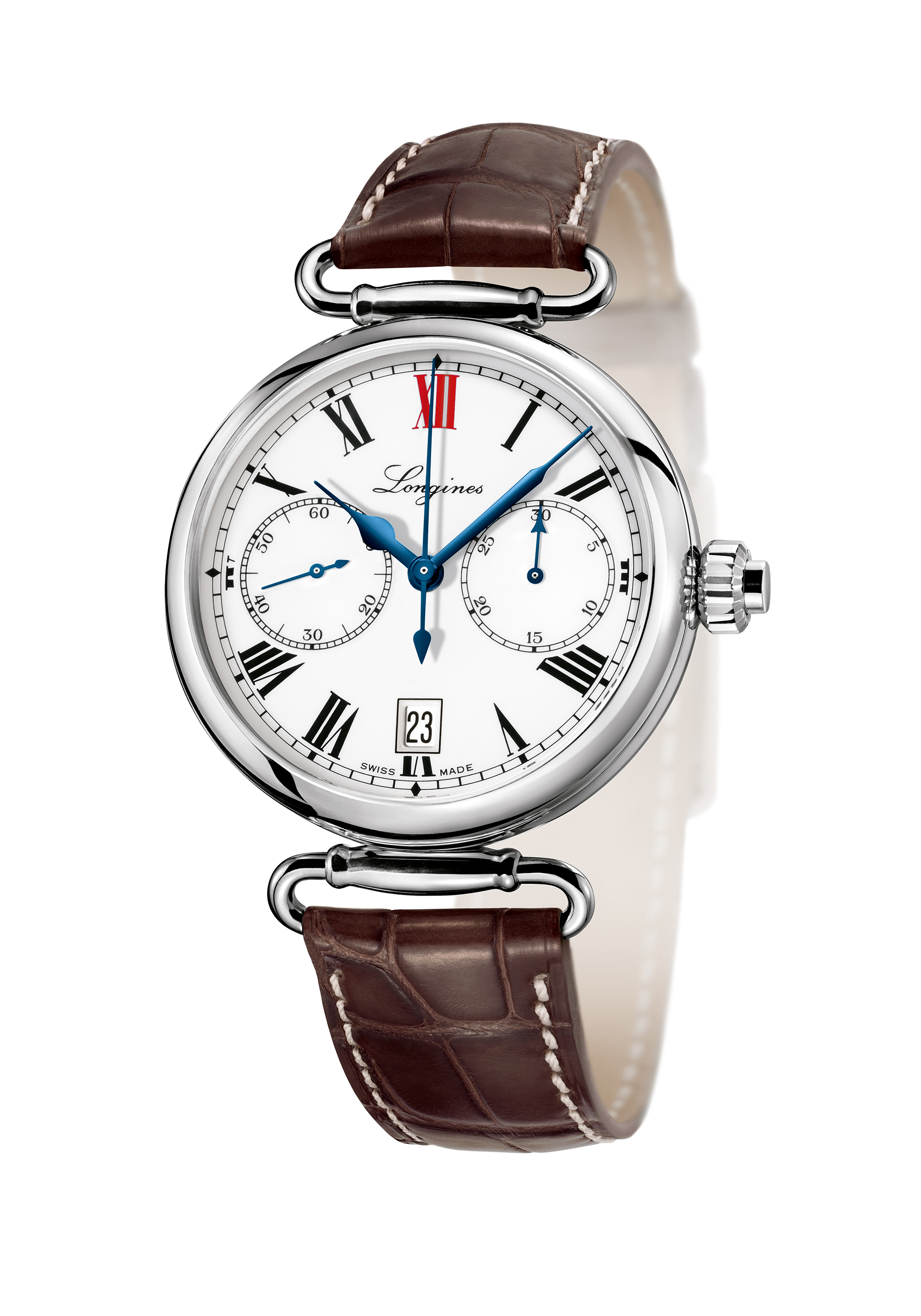 D’un diamètre de 41 mm, les chronographes sont équipés du mouvement à roue à colonne L688 spécialement développé et réalisé en exclusivité par ETA pour Longines. La boîte est proposée en acier, en acier et or rose ou en or rose. Le cadran, argenté ou noir, indique les heures, les minutes, une petite seconde à 9 heures, la date ainsi que les fonctions du chronographe : secondes centrales, compteur de 30 minutes à 3 heures et compteur de 12 heures à 6 heures. Ces chronographes sont munis de bracelets en alligator noir, en acier ou en acier et or rose avec un fermoir déployant de sécurité.