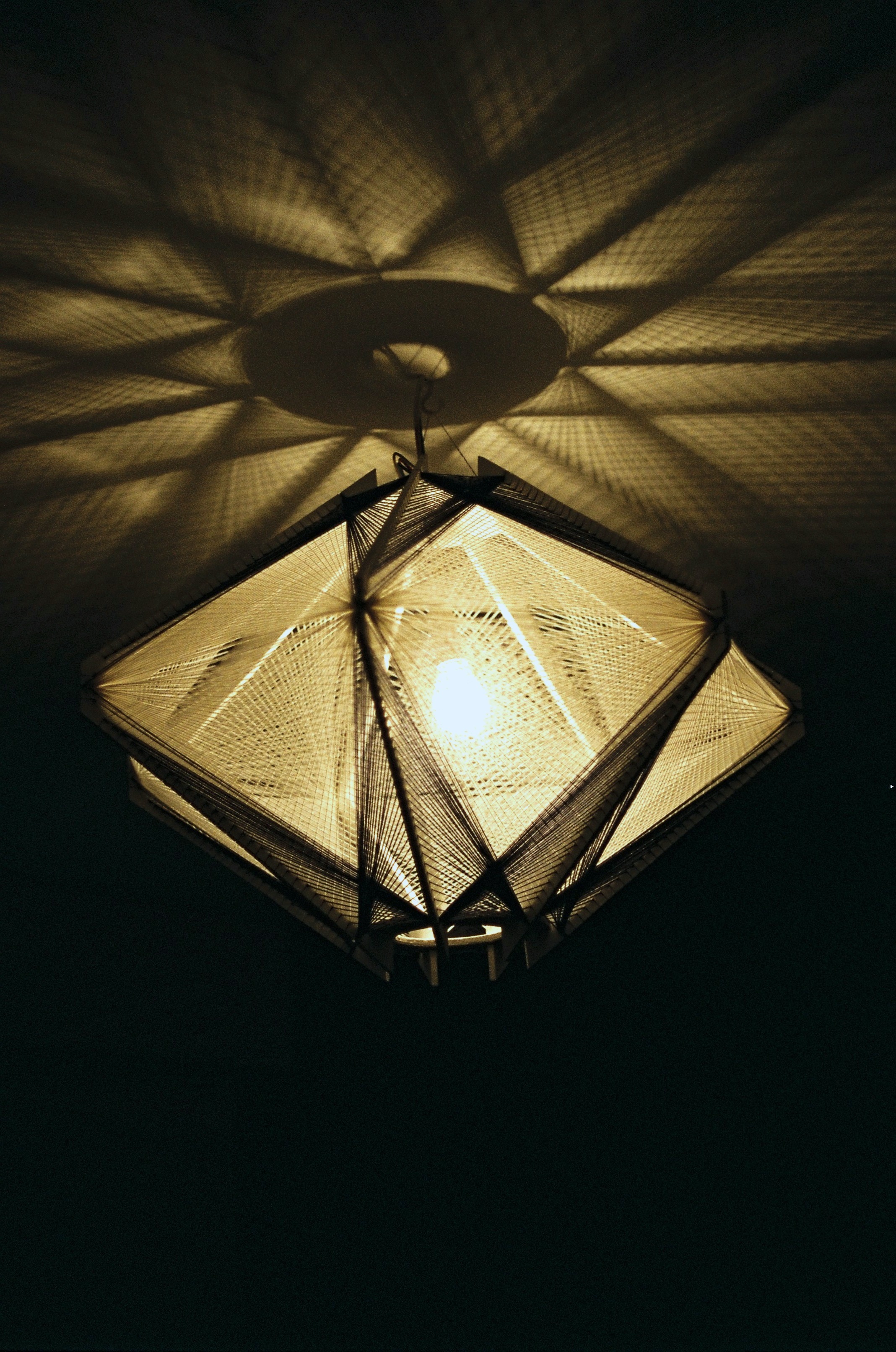 De la découpe au tissage, en passant par le montage, tout dans ces luminaires est fait à Paris de manière artisanale. Chaque lampe est un modèle unique, une pièce d’art, fruit du travail minutieux et passionné de la jeune créatrice. La structure est en bois peint et les fils en coton ou en laine de qualité supérieure. Quelques exemplaires sont prêt-à-vendre, mais la créatrice fonctionne sur commande.