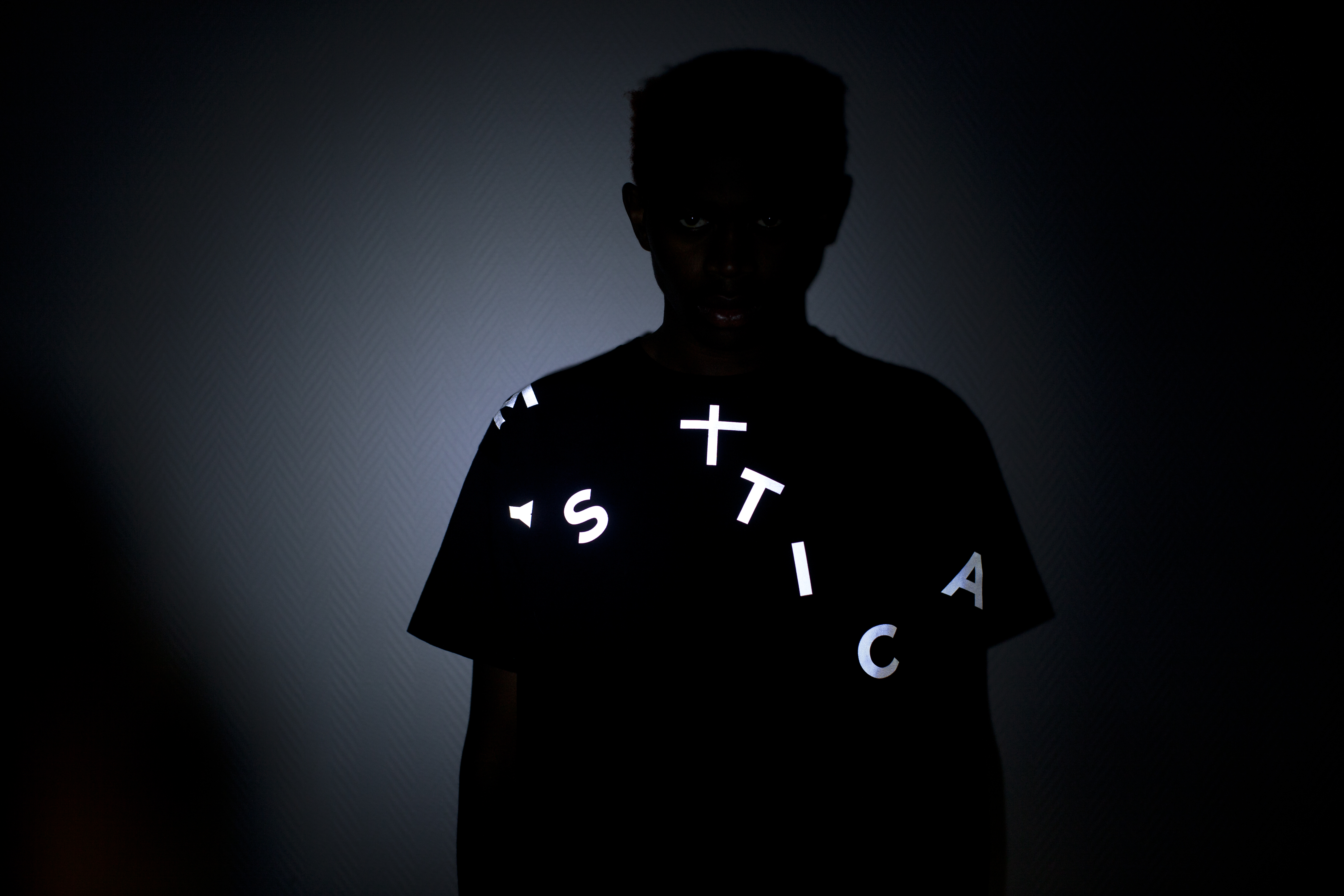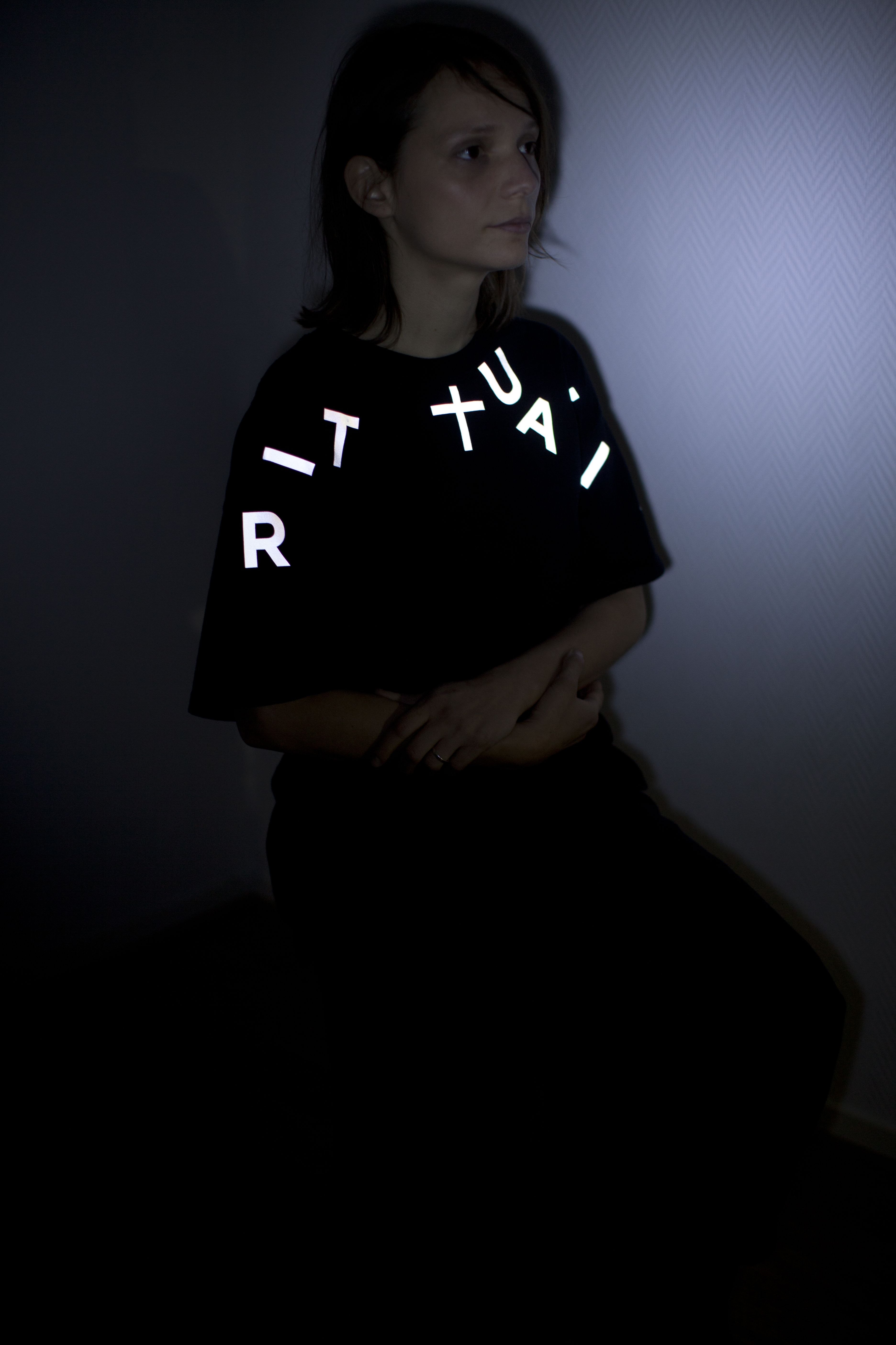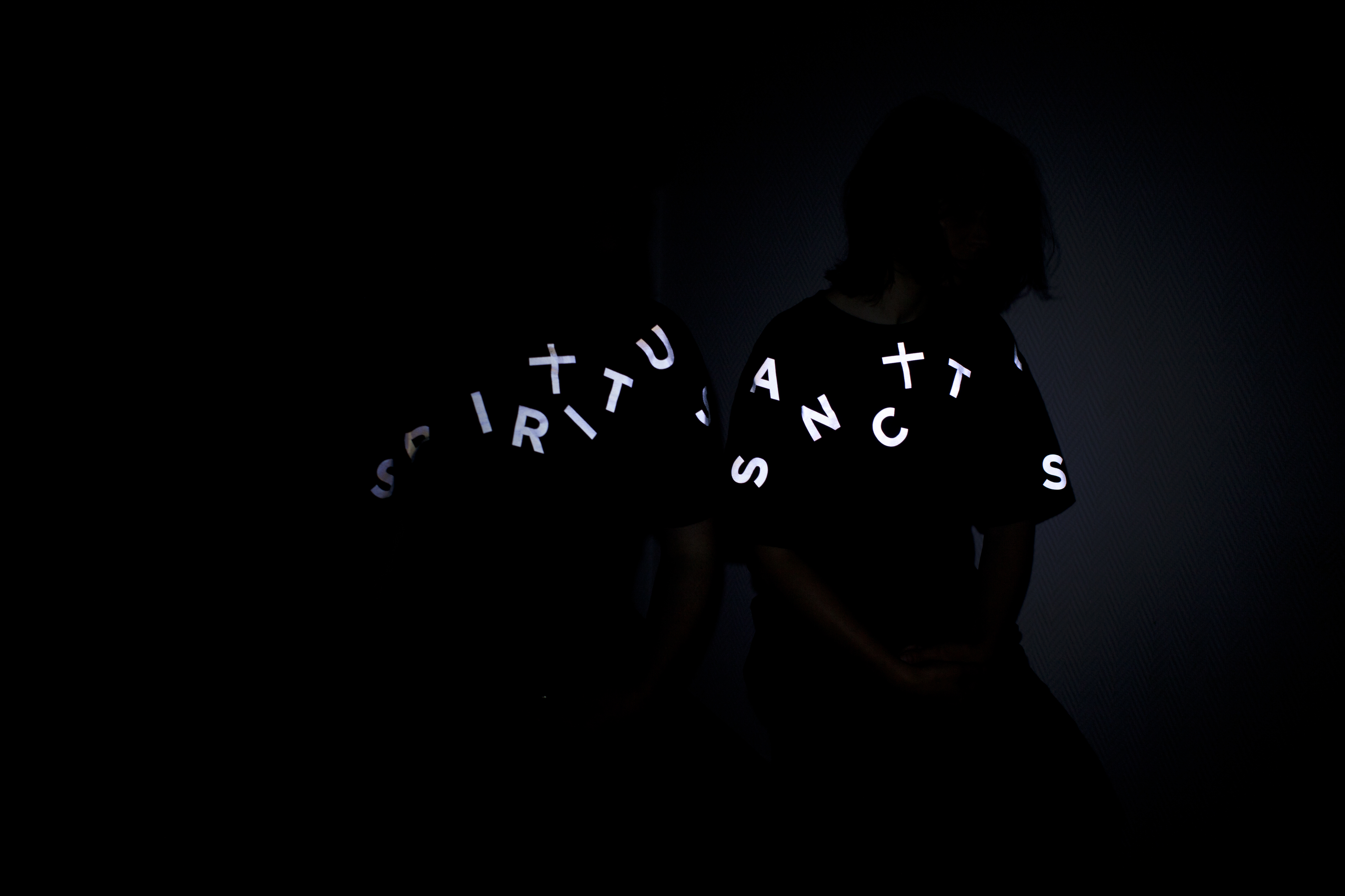 “Père Lachaise” est inspiré du célèbre cimetière du nord-est parisien, cette série reprend les termes phares d’une messe de Requiem. Selon les mots, les lettres prennent des chemins différents autour de la croix immuable. Les mots en latin sont inscrits sur les tee-shirts & sweat noirs ou blancs de deux manières : floqués en matière retro luminescente ou en ton sur ton. Mises en lumière ou simplement évoquées par un jeu de matière, les expressions latines suggèrent l’aspect fantomatique et spirituel des sépultures.
