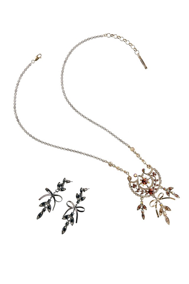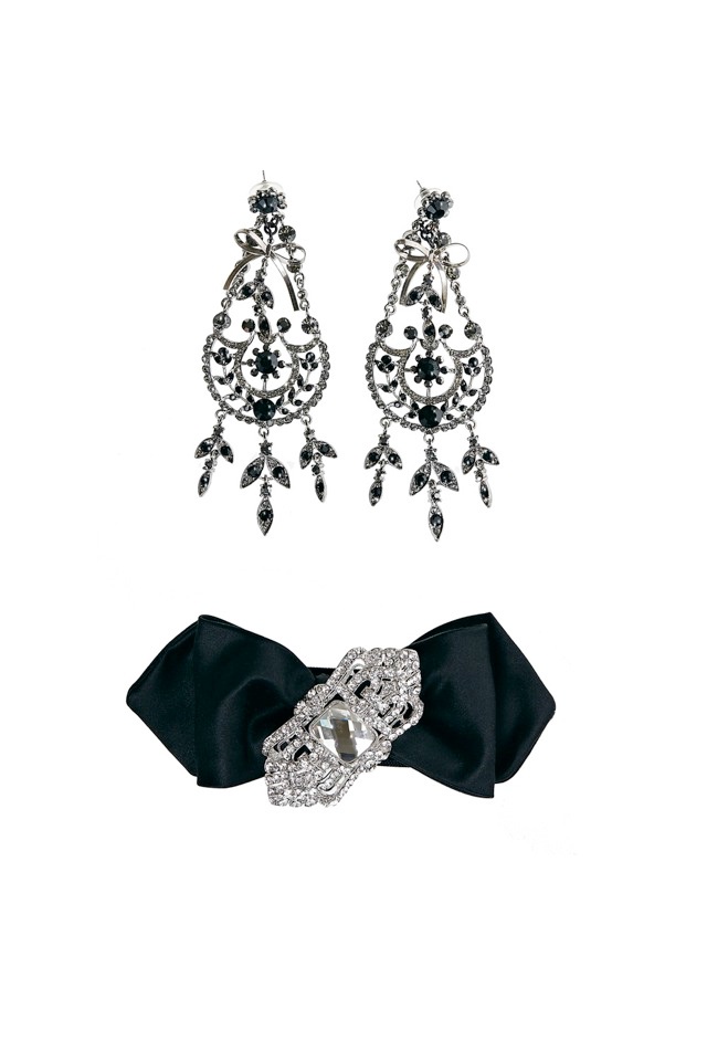 Pour cet Hiver, le créateur Alexis Mabille a imaginé des accessoires d’inspiration vintage. Légèrement dans l’esprit gothique, les colliers et boucles d’oreilles sont faits de dentelles de brillance et de pierres colorées étincelantes.