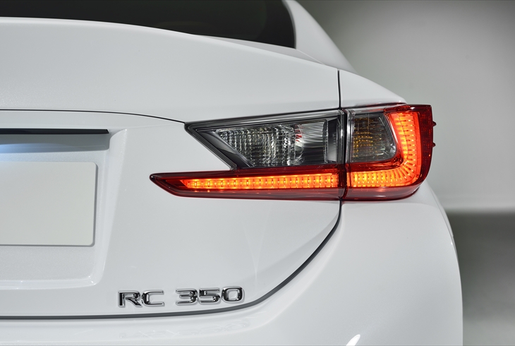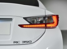 Les feux arrière incisifs et très effilés donnent une nouvelle interprétation du motif en L de Lexus. Les précédents designs intégraient le L comme un élément graphique dans le projecteur. En revanche, sur le RC les feux rouges et stop sont repositionnés pour former un L en 3D.