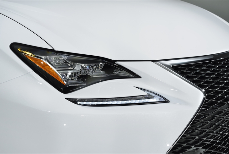 Les projecteurs triangulaires évoquent le design sportif du concept-car LF-LC. Les blocs optiques à trois lampes s’illuminant simultanément hébergent les feux de route et de croisement. Les feux de croisement reprennent le dessin en L identitaire des Lexus et se conjuguent avec l’éclairage diurne indépendant pour conférer au nouveau RC une signature visuelle unique et sportive.