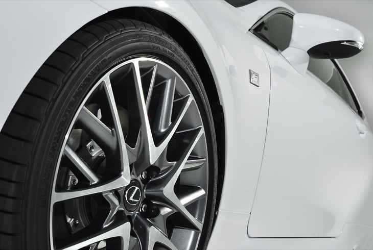 Le nouveau Lexus RC reçoit au choix des jantes en alliage 18 pouces à 5 branches ou 19 pouces à 10 branches. Sa déclinaison F SPORT associe un badgeage spécifique des jantes en alliage 19 pouces au design dédié, avec 10 branches externes polies superposées à 10 branches internes au fini métallisé foncé.