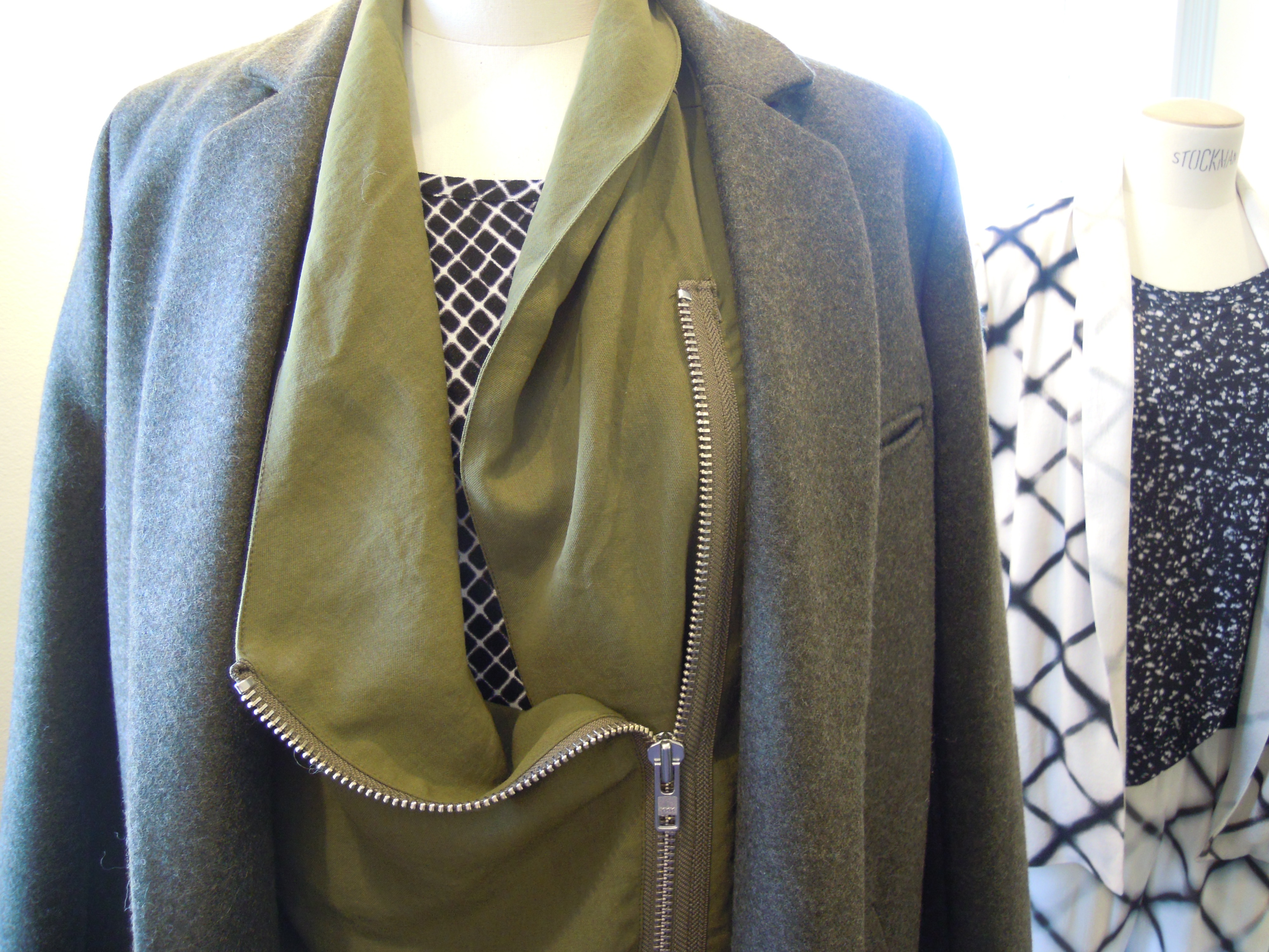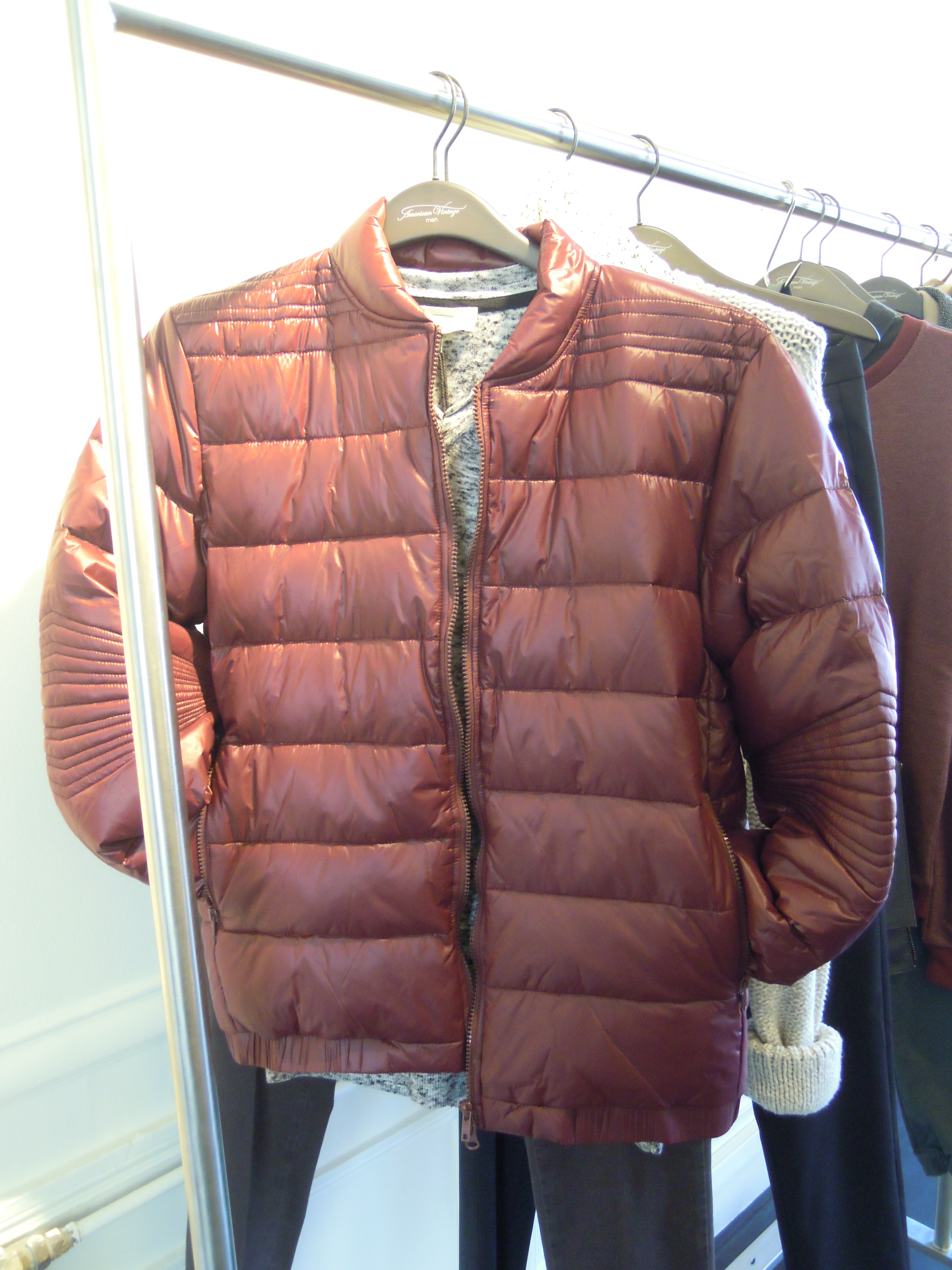 Rehaussée d’imprimés abstraits, la collection comprend aussi des pièces en cuir comme ce perfecto noir ou blanc, ou des leggings très souples. Les couleurs sont tantôt vives, pour un coup de vitamine, tantôt foncées pour plus de discrétion. Le orange, le bordeaux et le moutarde prédominent avec le gris chiné !
