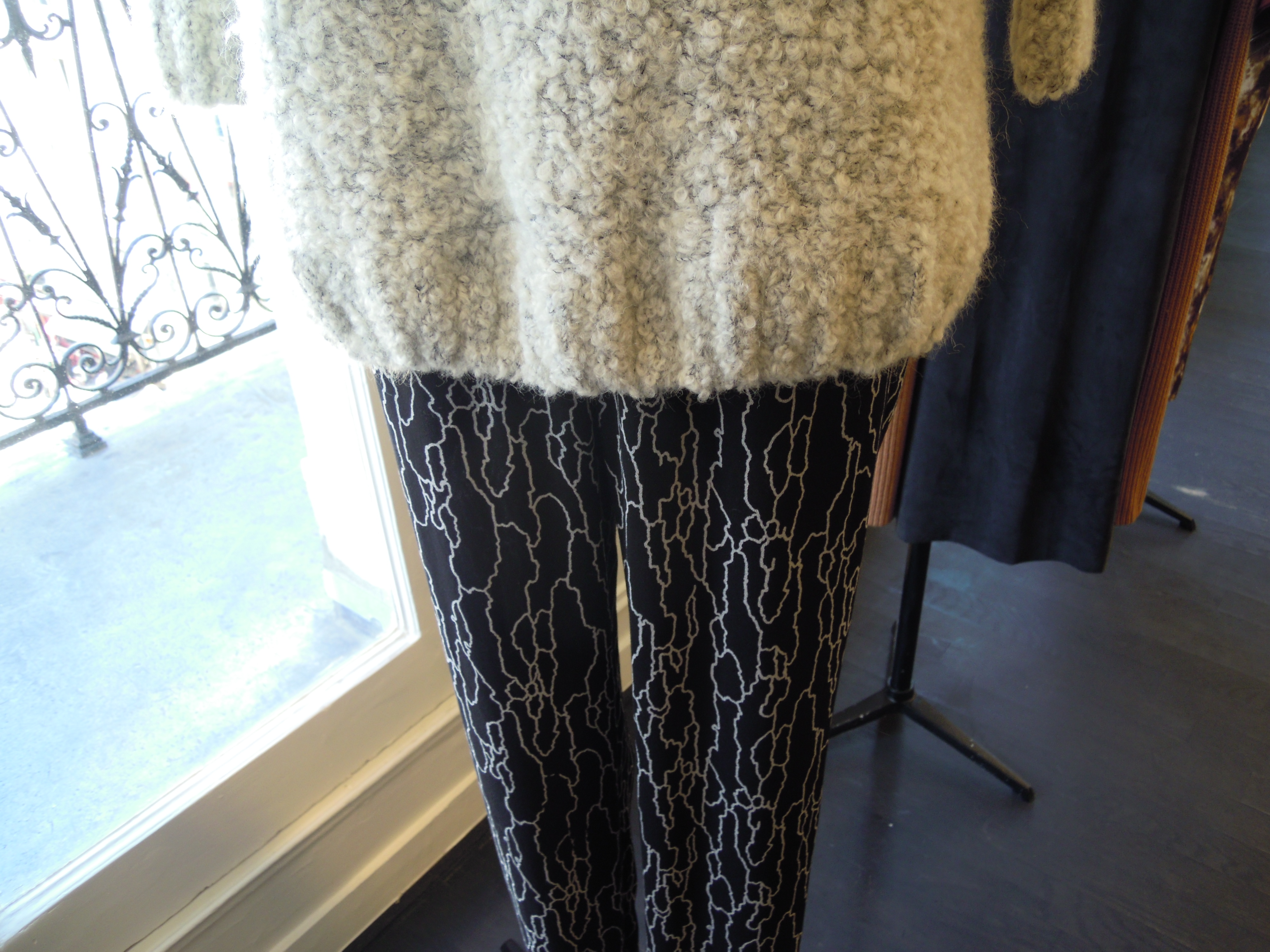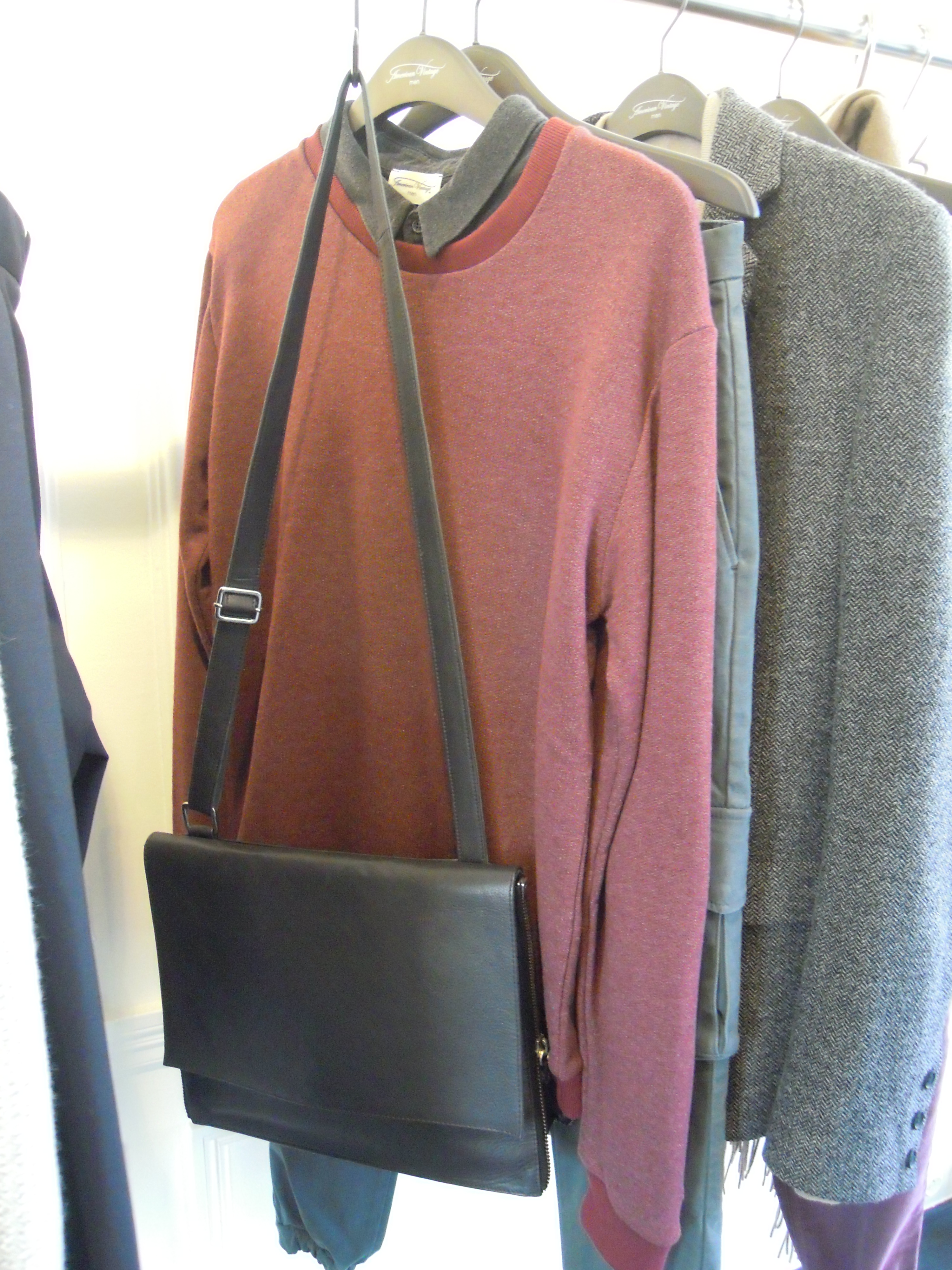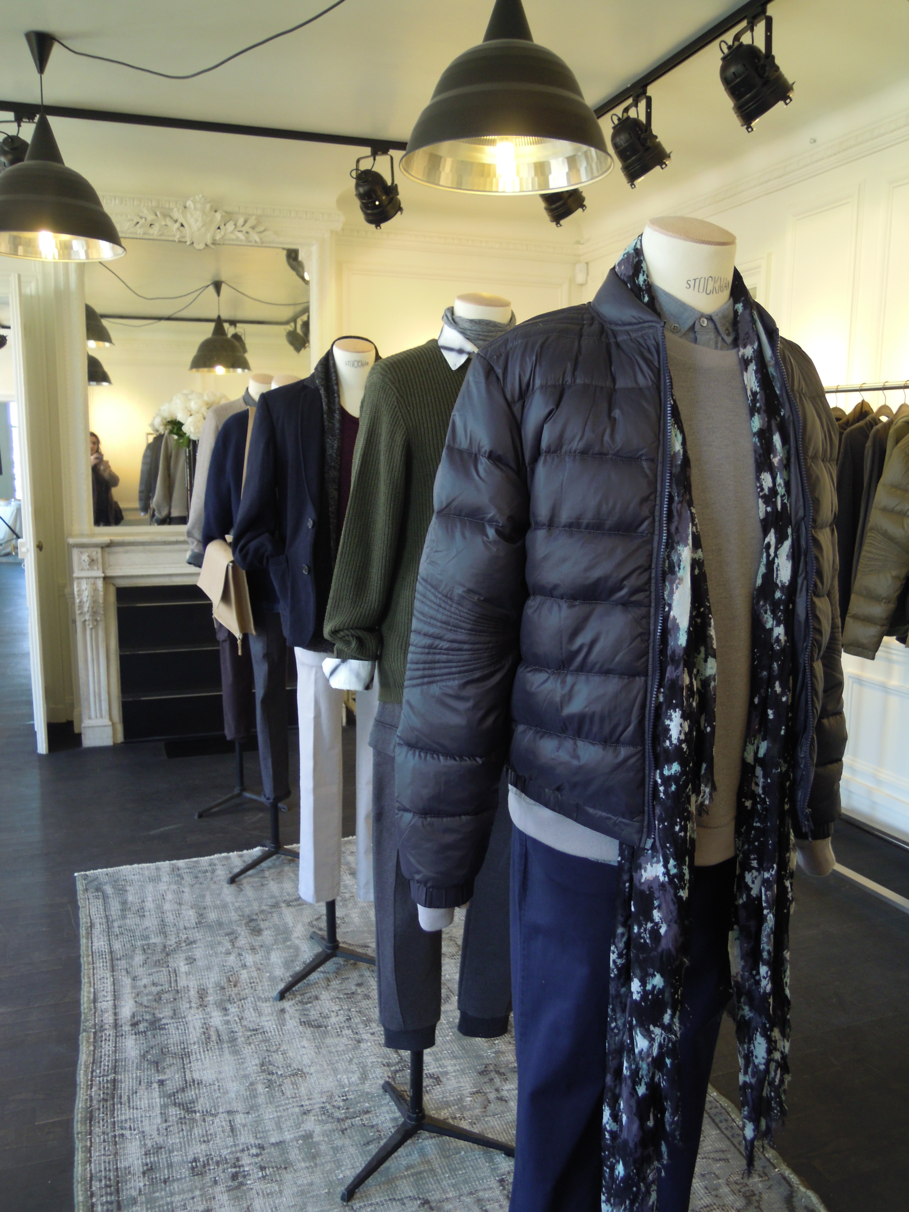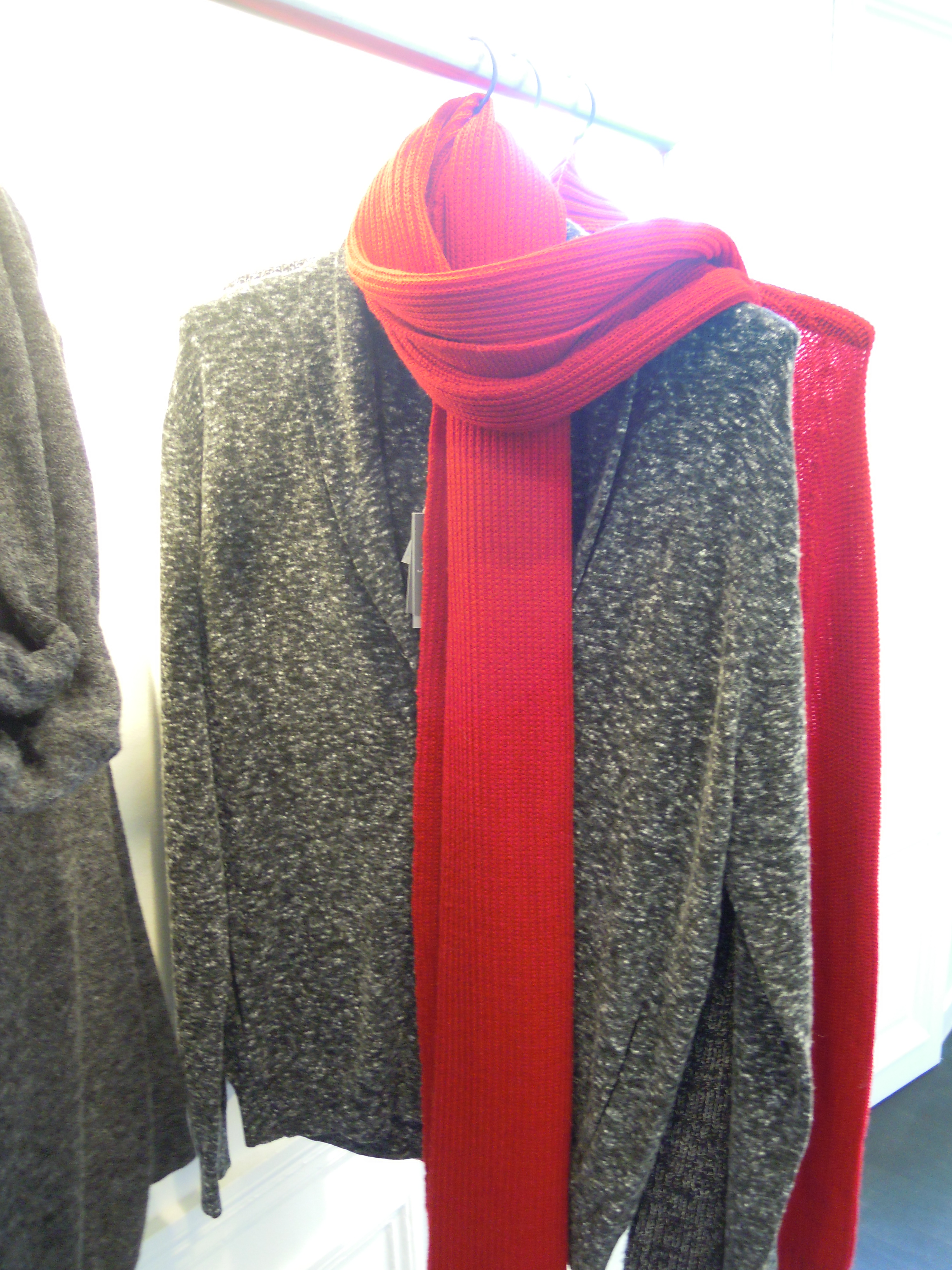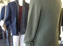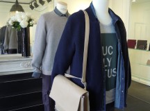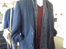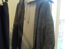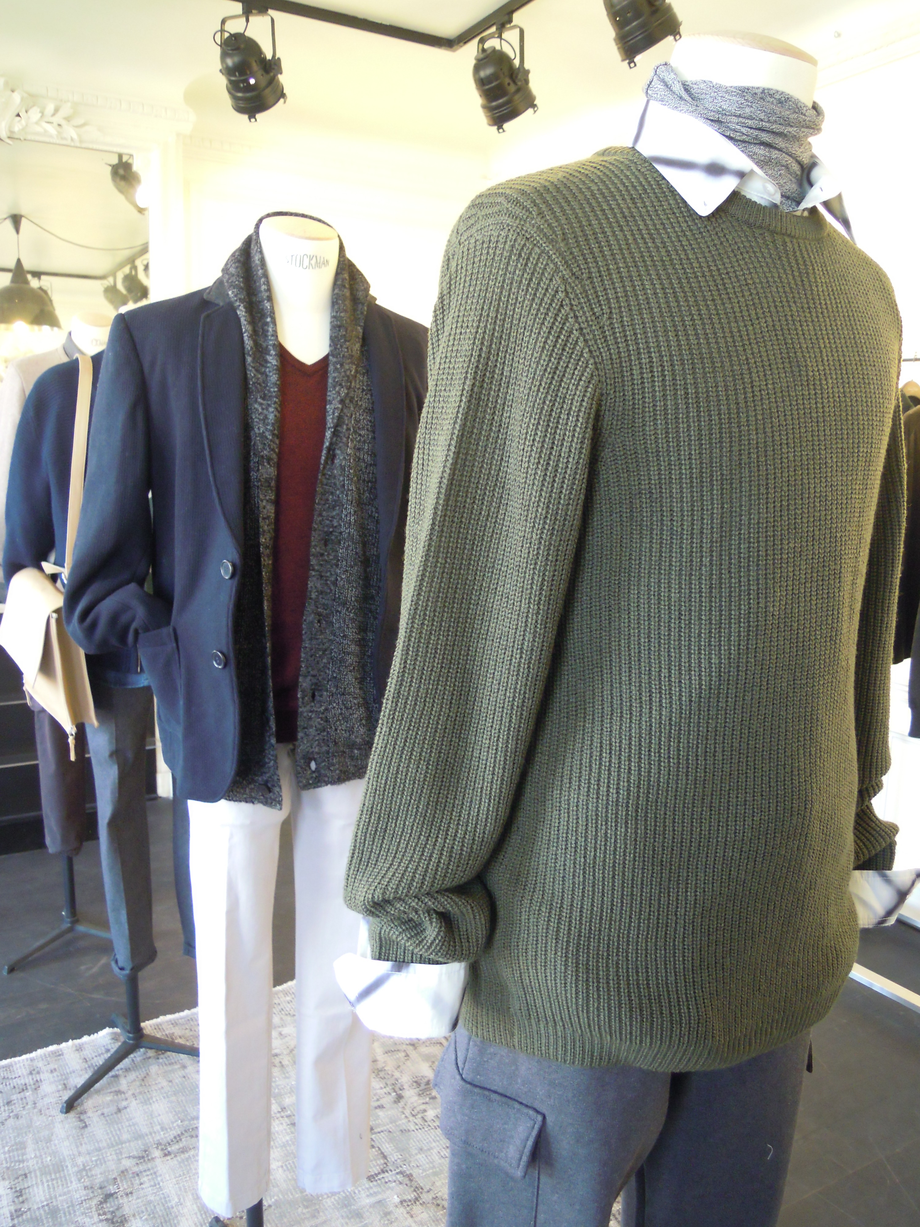Chez l’Homme, on retrouve ce même gris chiné, fait d’une matière très épaisse et très douce au toucher. On apprécie les vestes souples mais structurées, les jeux de maille et la décontraction chic qu’elles offrent. Les couleurs principales sont le gris et le bleu marine, associées à du vert forêt et du rouge !