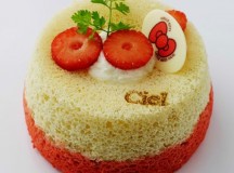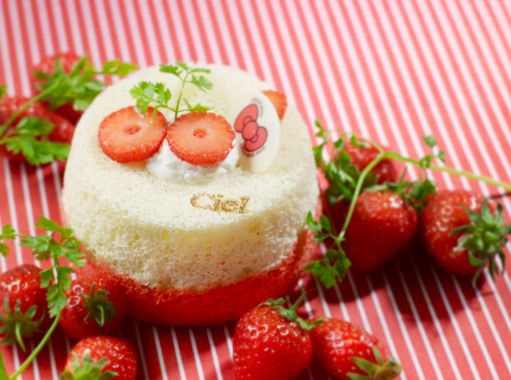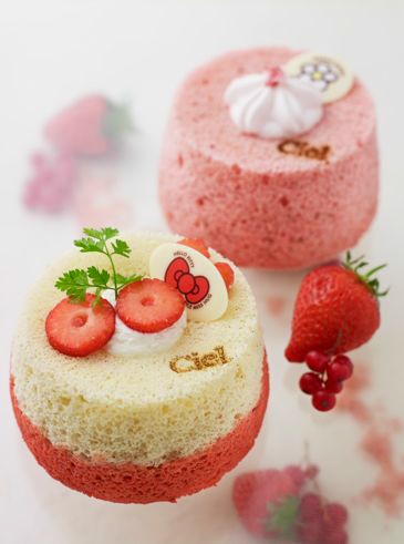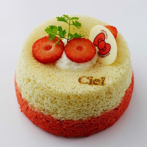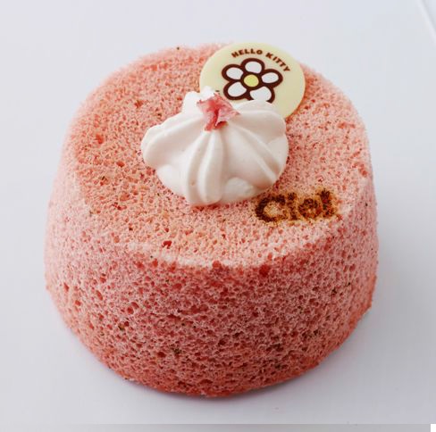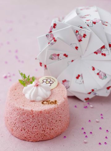 L’Angel Cake Hello Kitty est confectionné avec deux pâtes différentes de celle de l’angel cake, à la vanille et à la fraise. Il est ensuite fourré avec une confiture de fraises des bois et accompagnée de crème chantilly à la vanille. La’Angel Cake Madame Câlin est confectionné avec la pâte de l’Angel Cake mélangée à des pétales et des feuilles de cerisier. Il est ensuite fourré avec une confiture de cerises mitonnée à la pâtisserie Ciel !