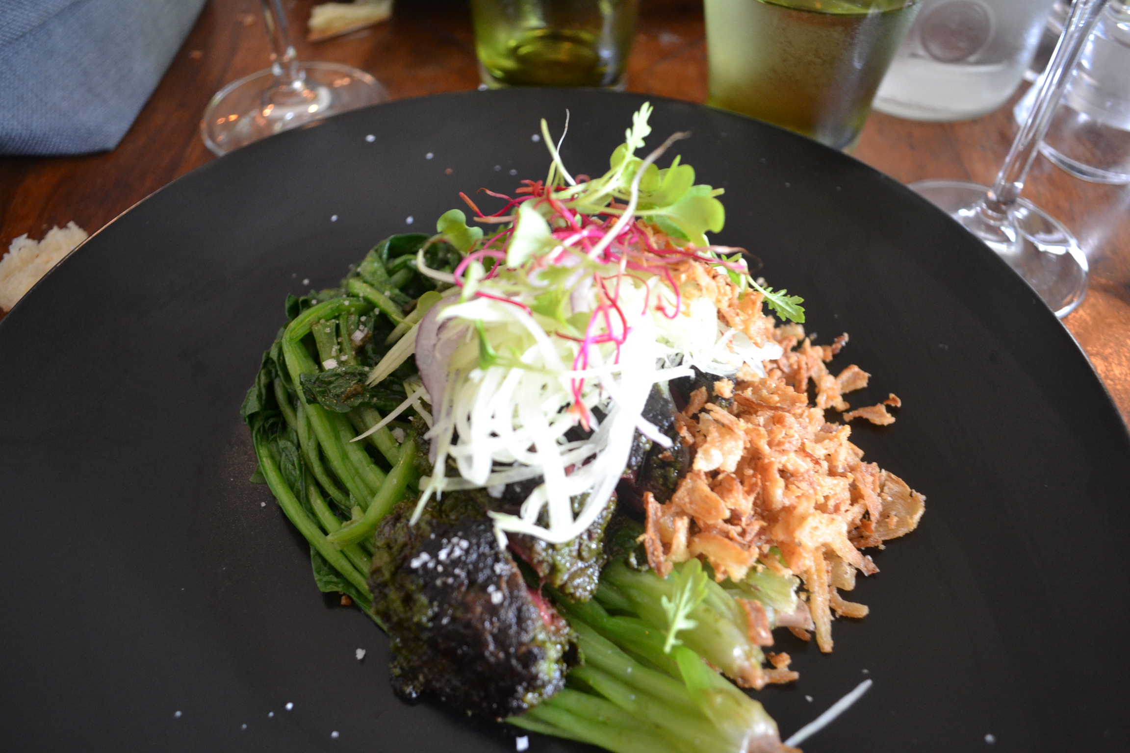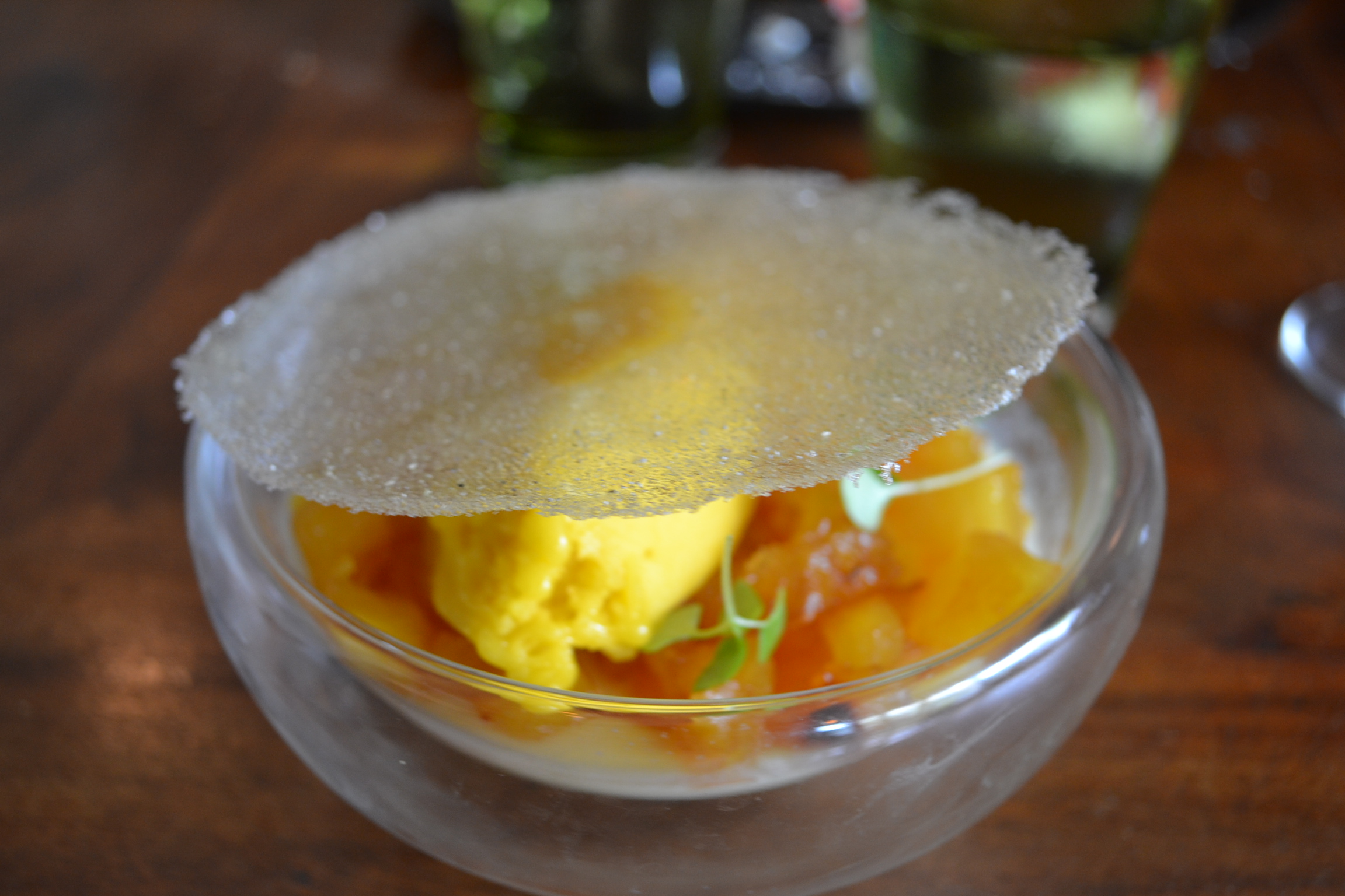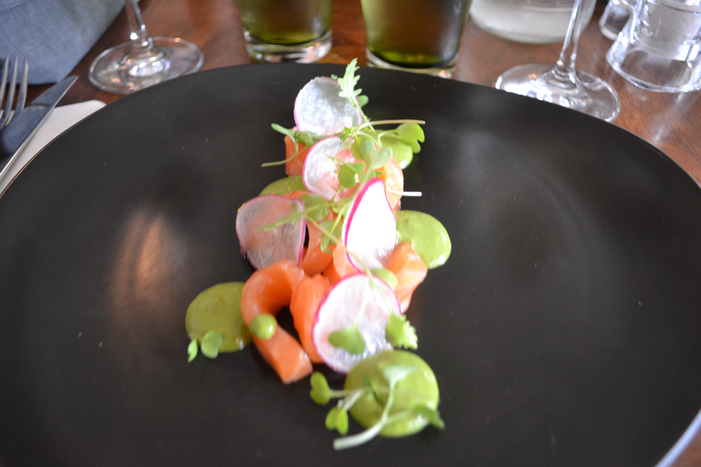 La Carte est plutôt réduite : pas plus de 5 choix pour les plats par exemple. Ce qui n’empêche pas d’avoir du mal à se décider : Carpaccio de Maigre, Citronnelle, Pièce de bœuf marinée ou encore Cabillaud, Bockchoy shitaké et écume curry vert.