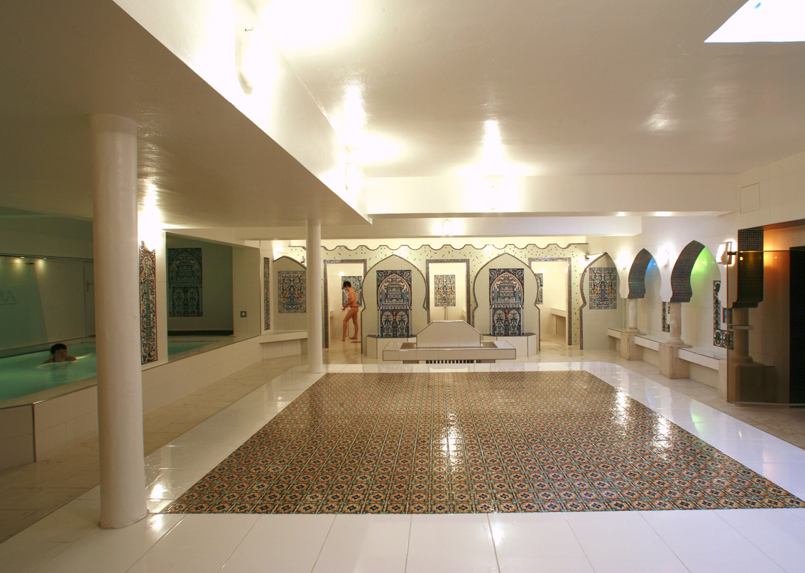 L’espace détente est composé d’un sauna, d’un jaccuzi et d’un hammam ainsi que de douches, d’une plateforme centrale pour se reposer et des espaces de soins.