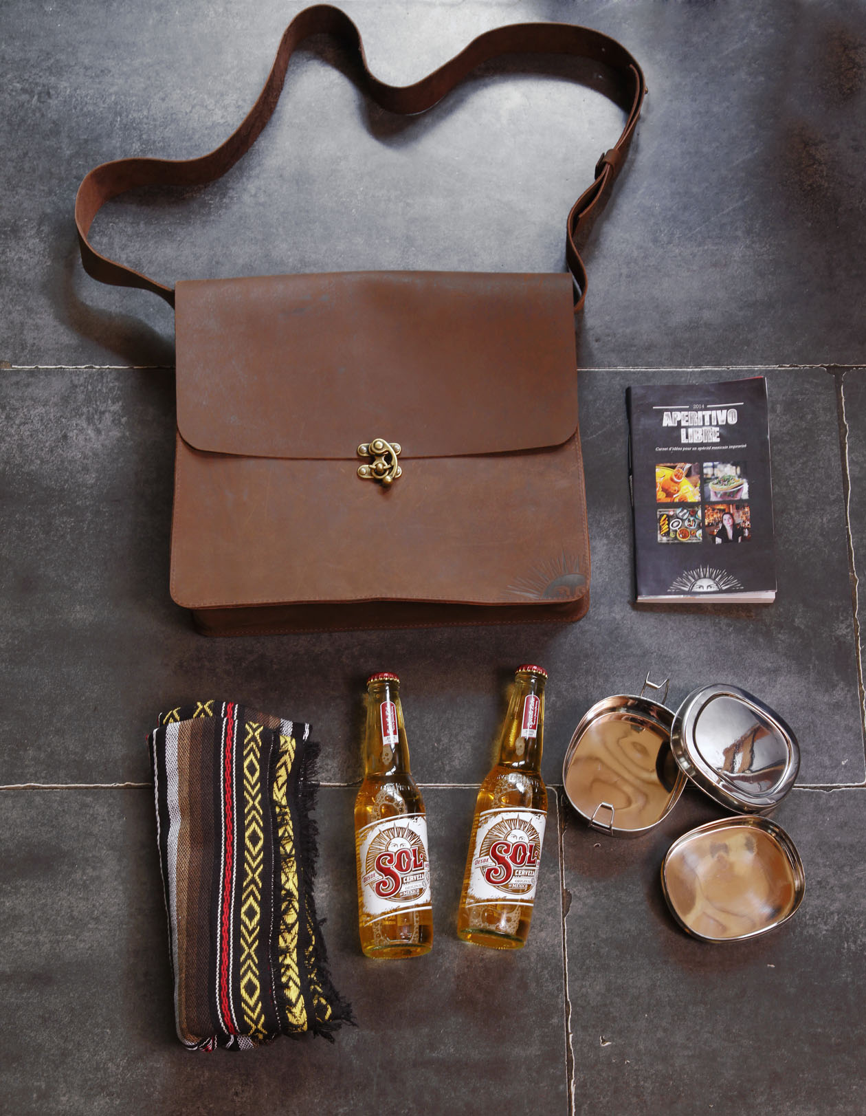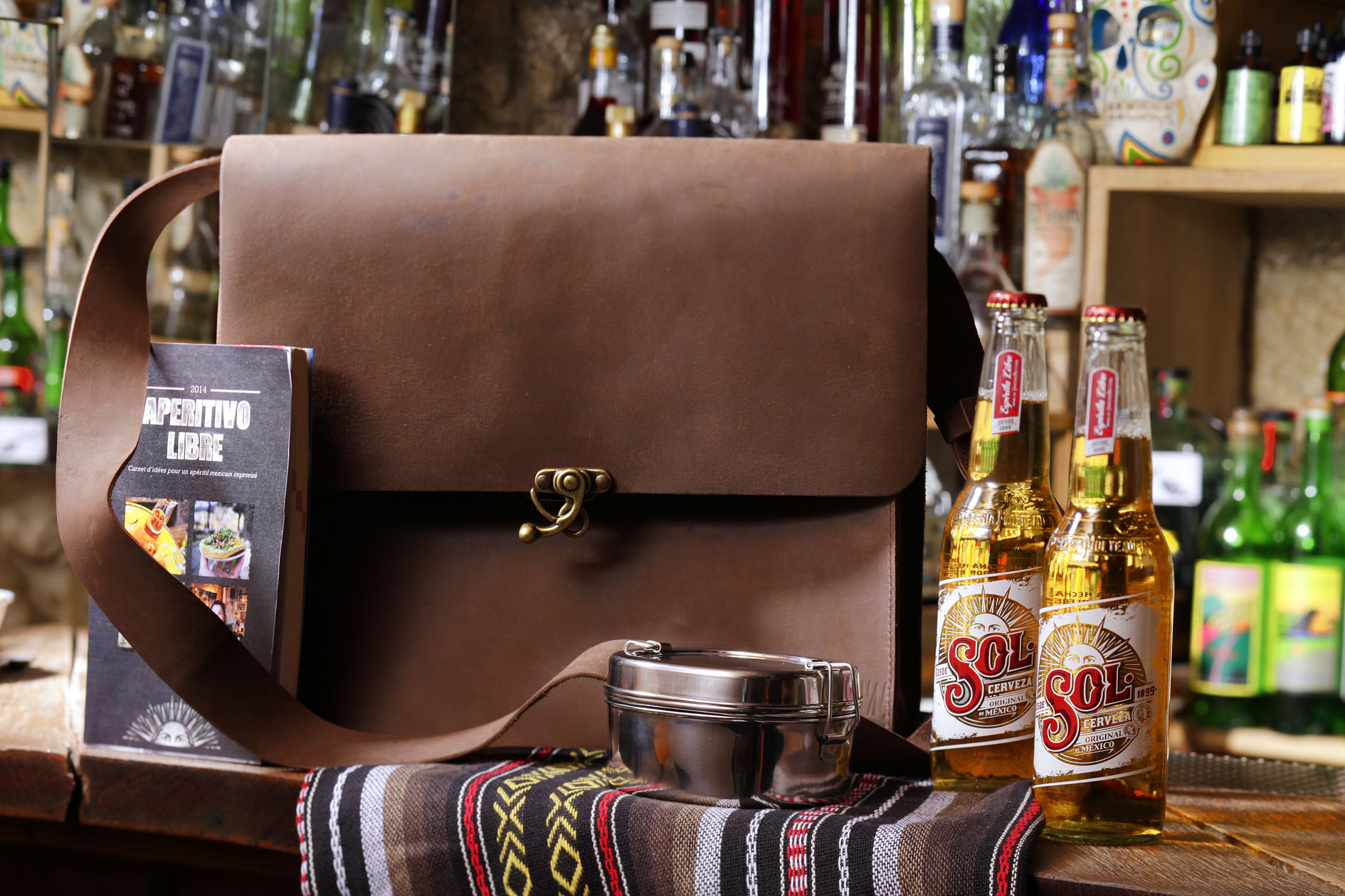 Cette année, quelques jours avant le fameux Cinco de Mayo, SOL a lancé l’accessoire indispensable pour un apéritif libre et improvisé, en hommage à l’esprit d’indépendance des brasseurs de son pays d’origine. Faite d’un cuir brut, à la main, la besace Aperitivo Libre contient tout le nécessaire pour réussir son apéritif SOL, et notamment un guide réalisé en collaboration avec Carina, barmaid de la Candelaria, qui révèle ses meilleurs spots parisiens, ses recettes de cocktail, de street food et autres secrets.