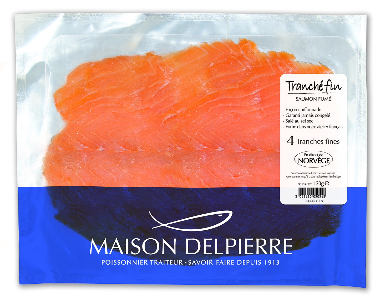 Maison Delpierre nous parle avec amour du saumon, un produit tout en finesse préparé avec le plus grand soin ! Après une sélection rigoureuse, Maison Delpierre prépare ses filets exclusivement à partir de saumons frais. Ils sont ensuite parés à la main dans son atelier en France, salés au sel sec et fumés au bois de hêtre. Ce savoir-faire d’exception, le meilleur du saumon, l’authenticité d’une préparation toute en simplicité et en transparence, la création toujours au service du goût…