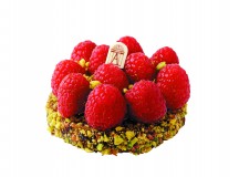 La Tarte Framboise Pistache : une pâte sucrée, une crème amande pistache, une crème vanille Bourbon, des éclats de pistache et des fruits frais, la simplicité est délicieuse,