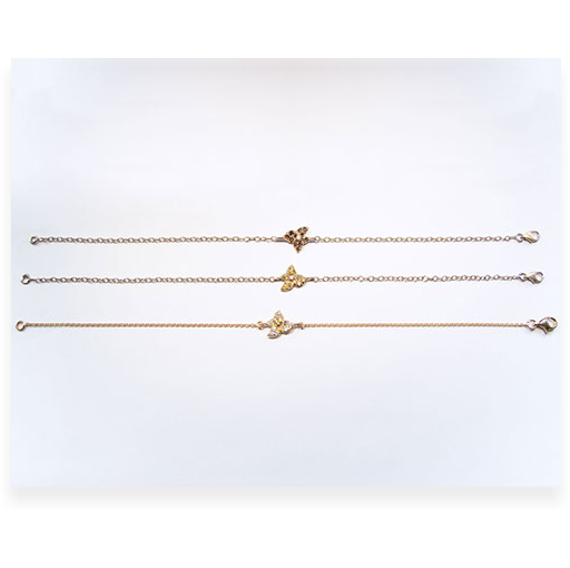 La collection « Chemin Montant » s’enrichit d’une nouvelle pièce, un bracelet aux lignes épurées, féminines et discrètes. A porté seul ou bien en nombre, le bracelet en maille miniature est agrémenté d’une fleur aux teintes douces.
