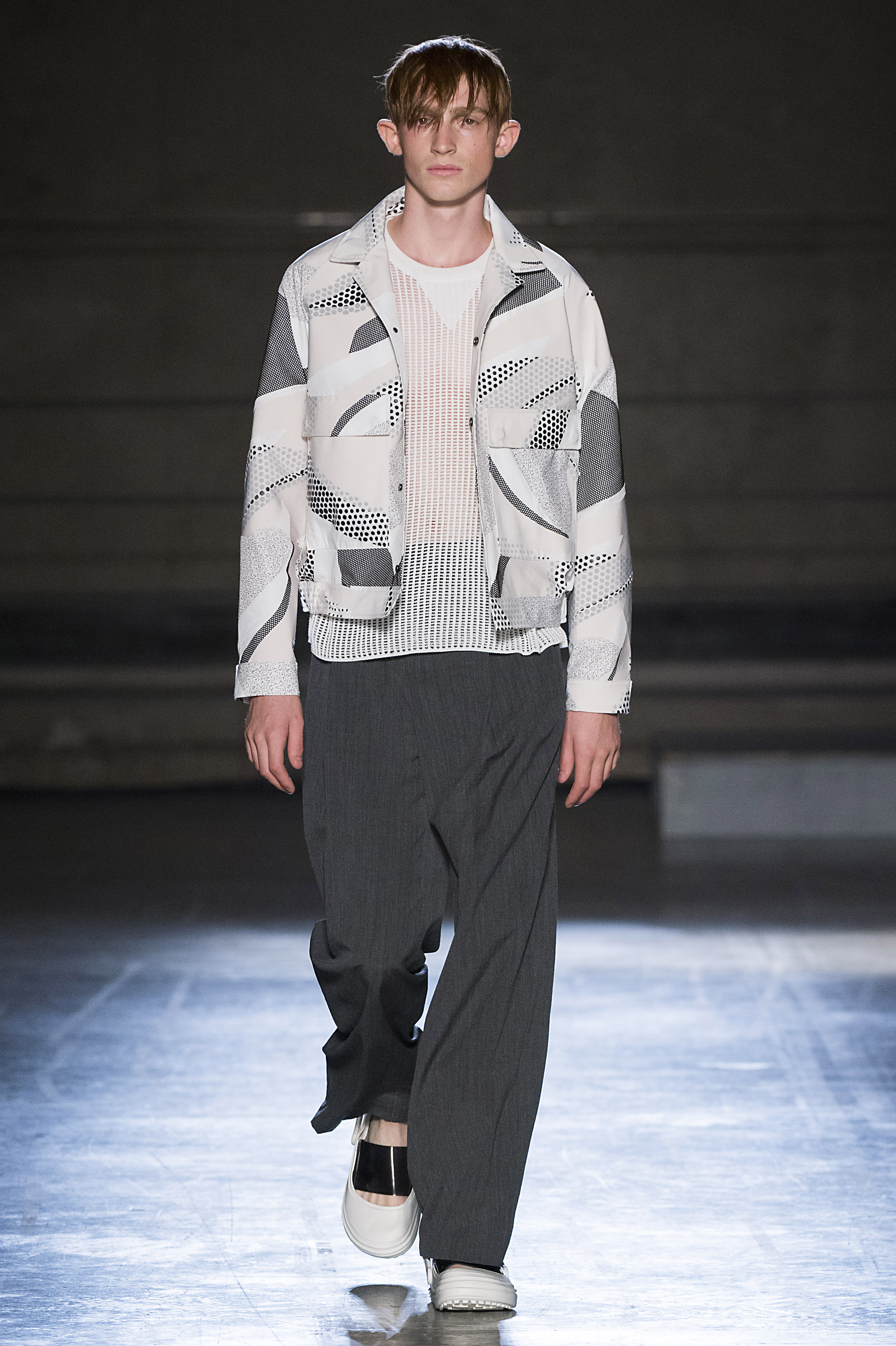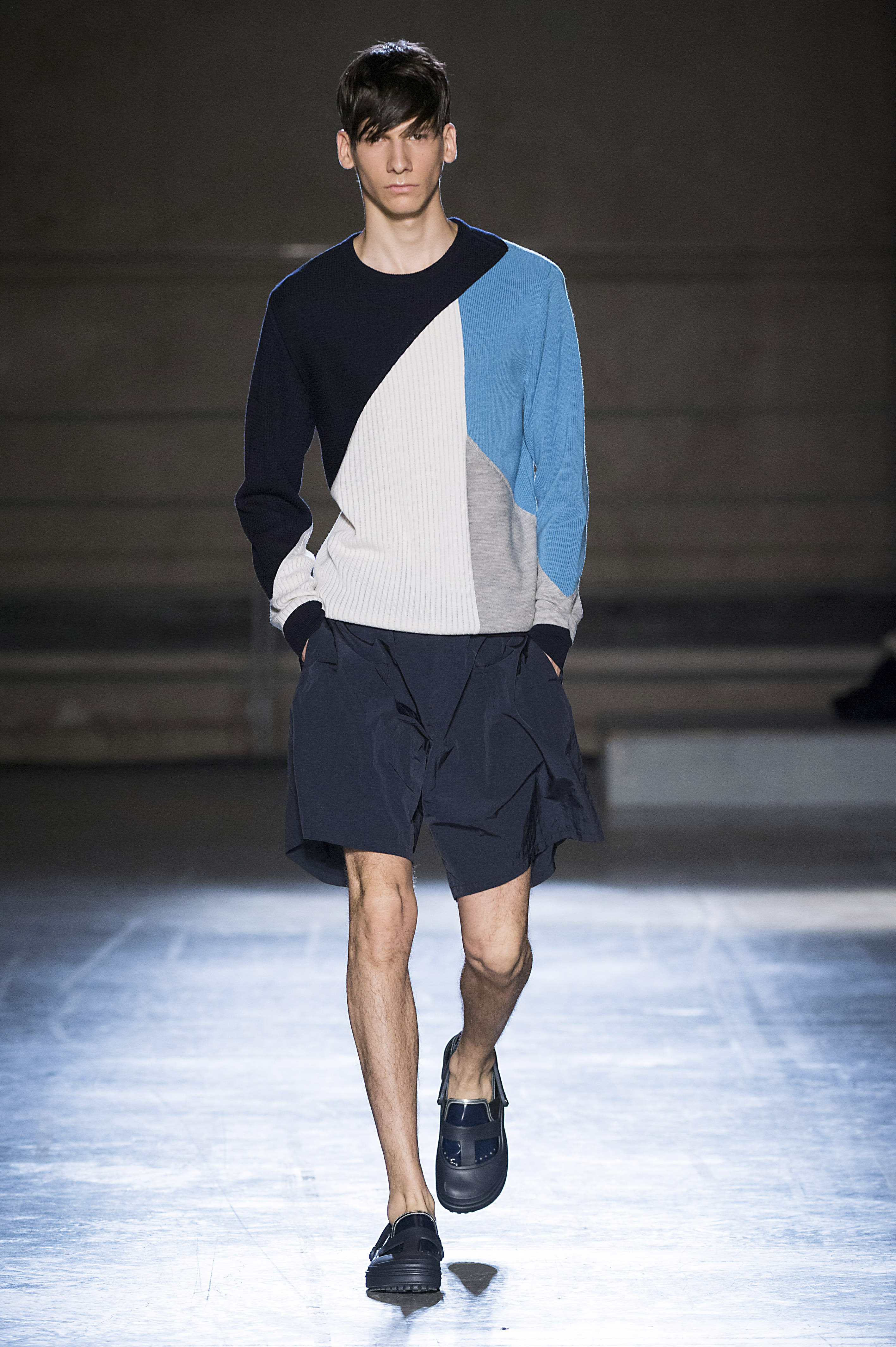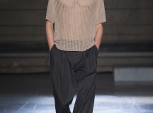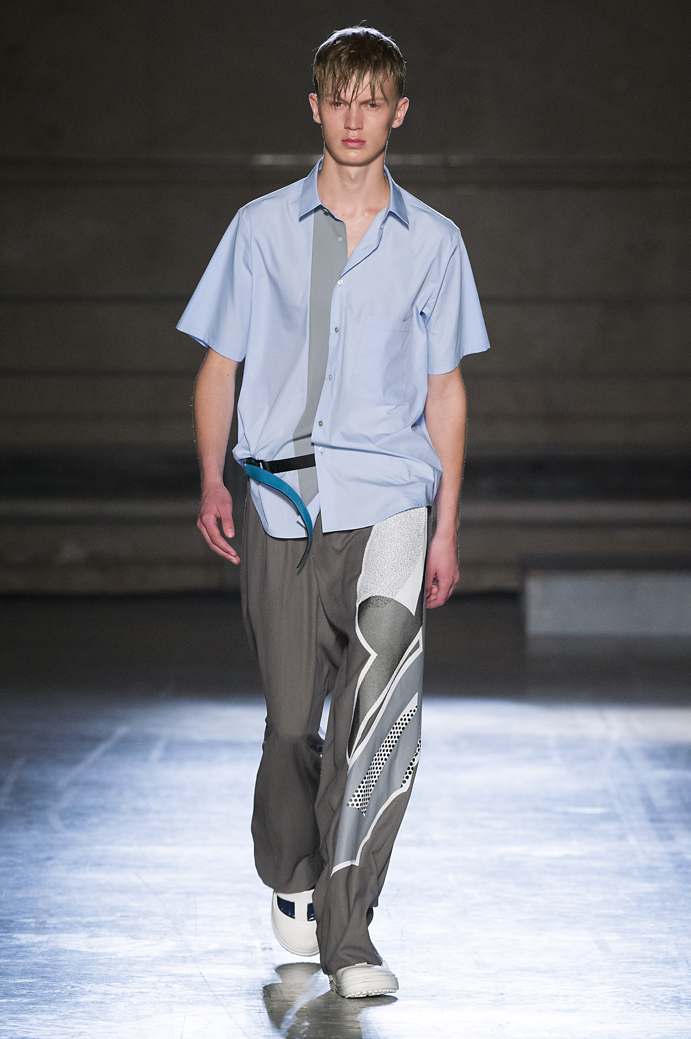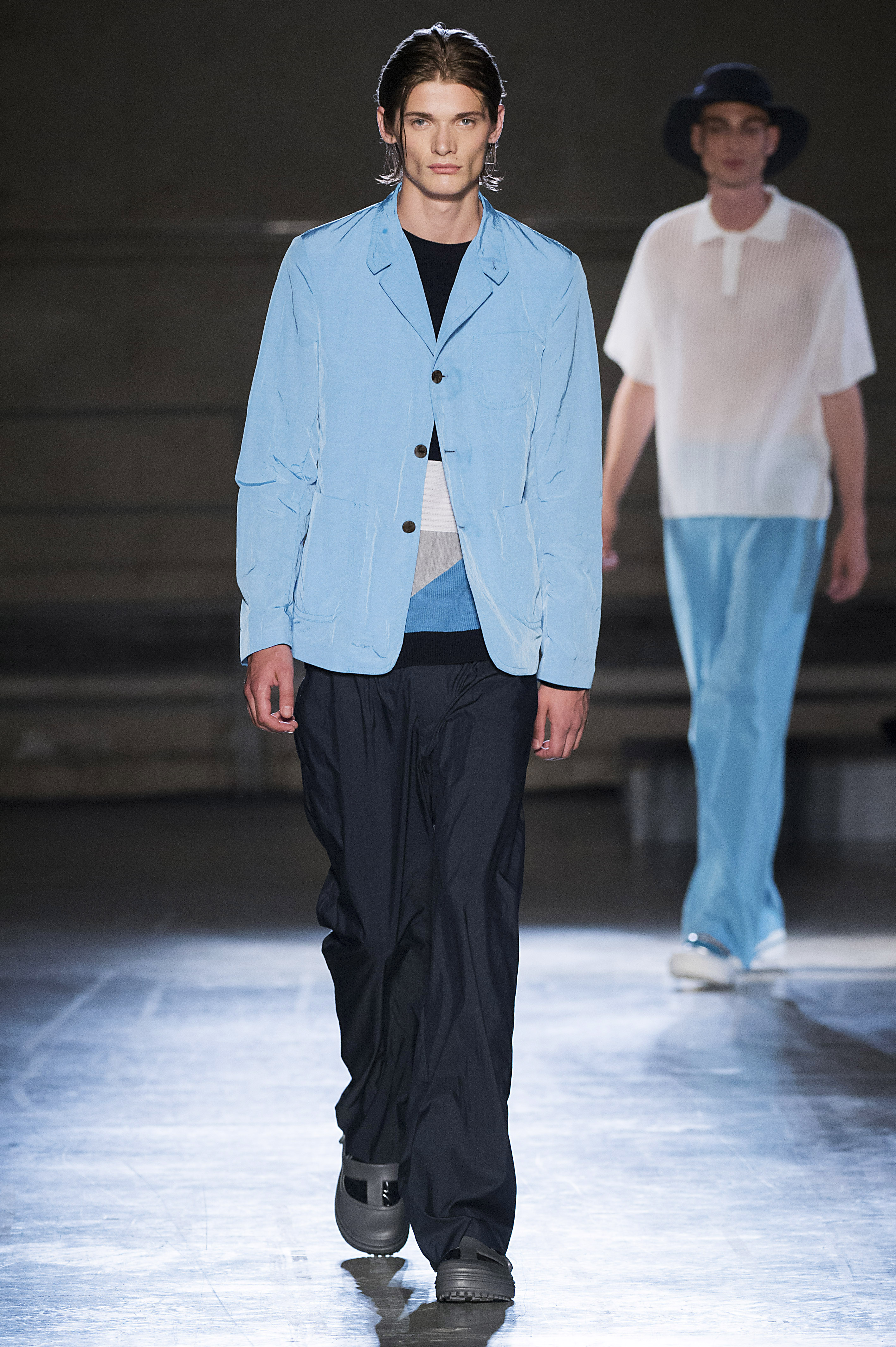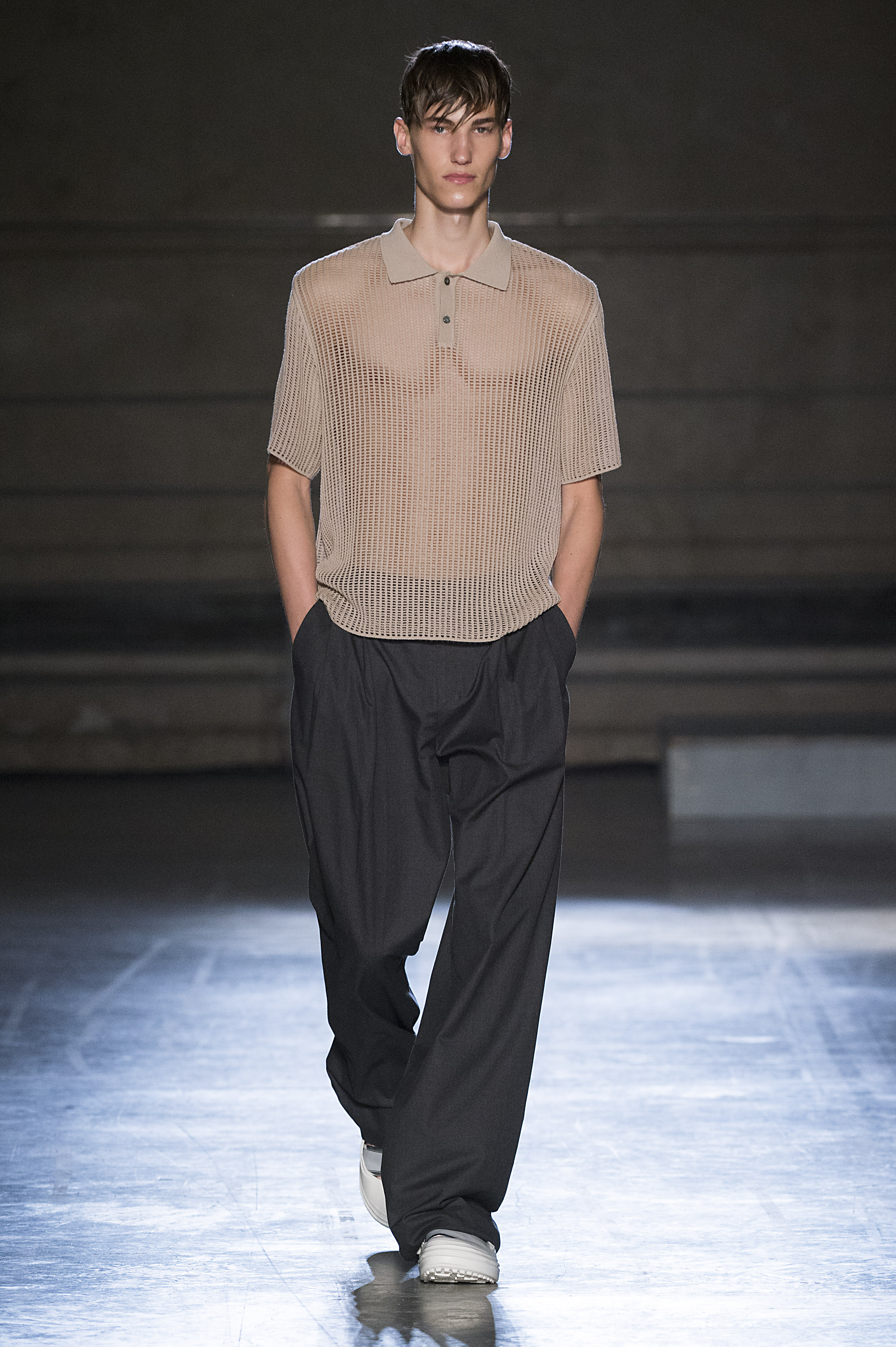 La silhouette sportive s’associe a une attitude sereine et calme tandis que la soie et la viscose des pièces ajoutent une touche de luxe à l’ensemble. Les imprimés se font plus masculins, influencés par les motifs des années 30 et la techniques en points de Lichtenstein. Un second motif semblable au mouvement des vagues sur le sable reflète les influences de l’art abstrait sur la collection.