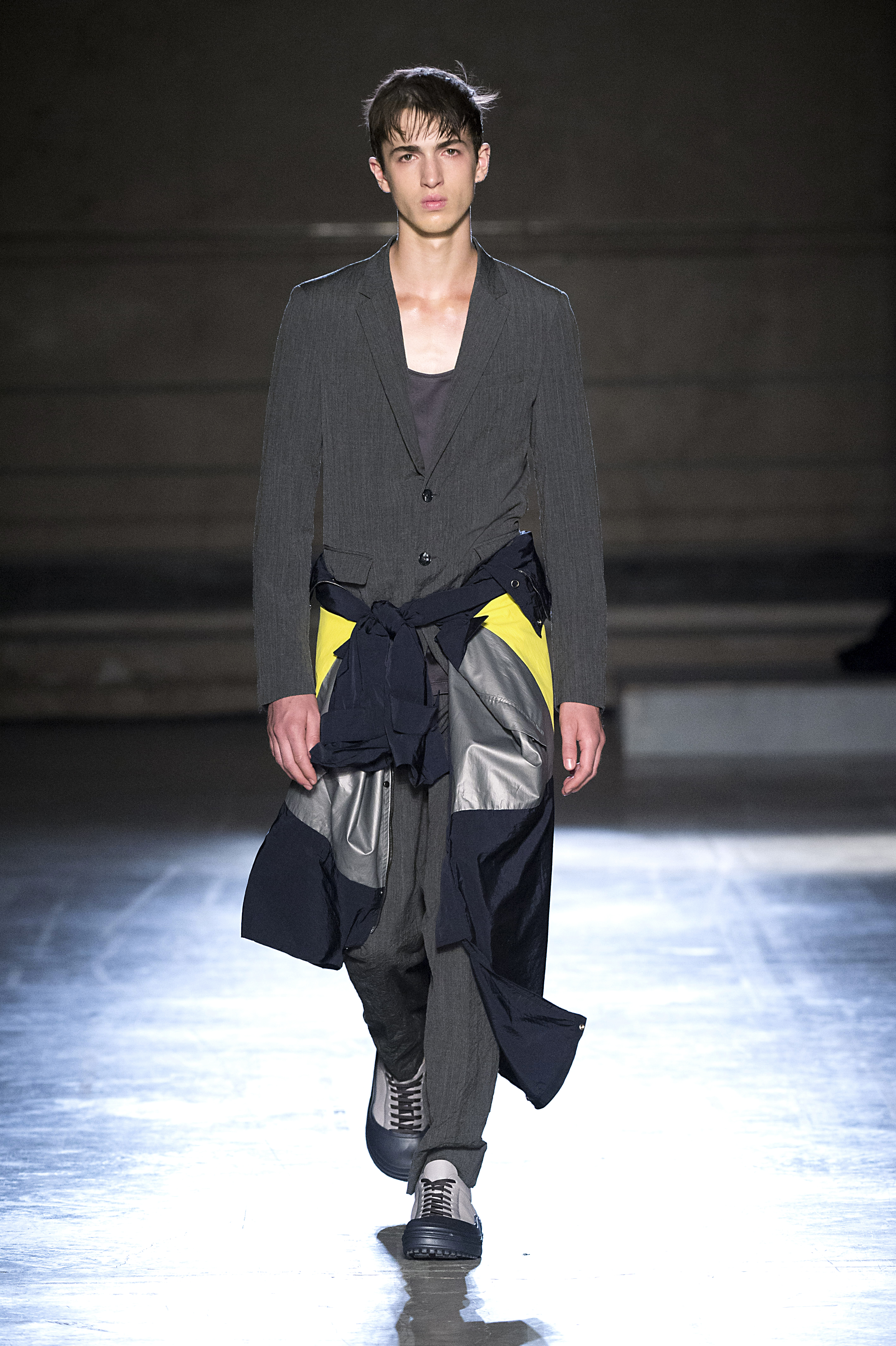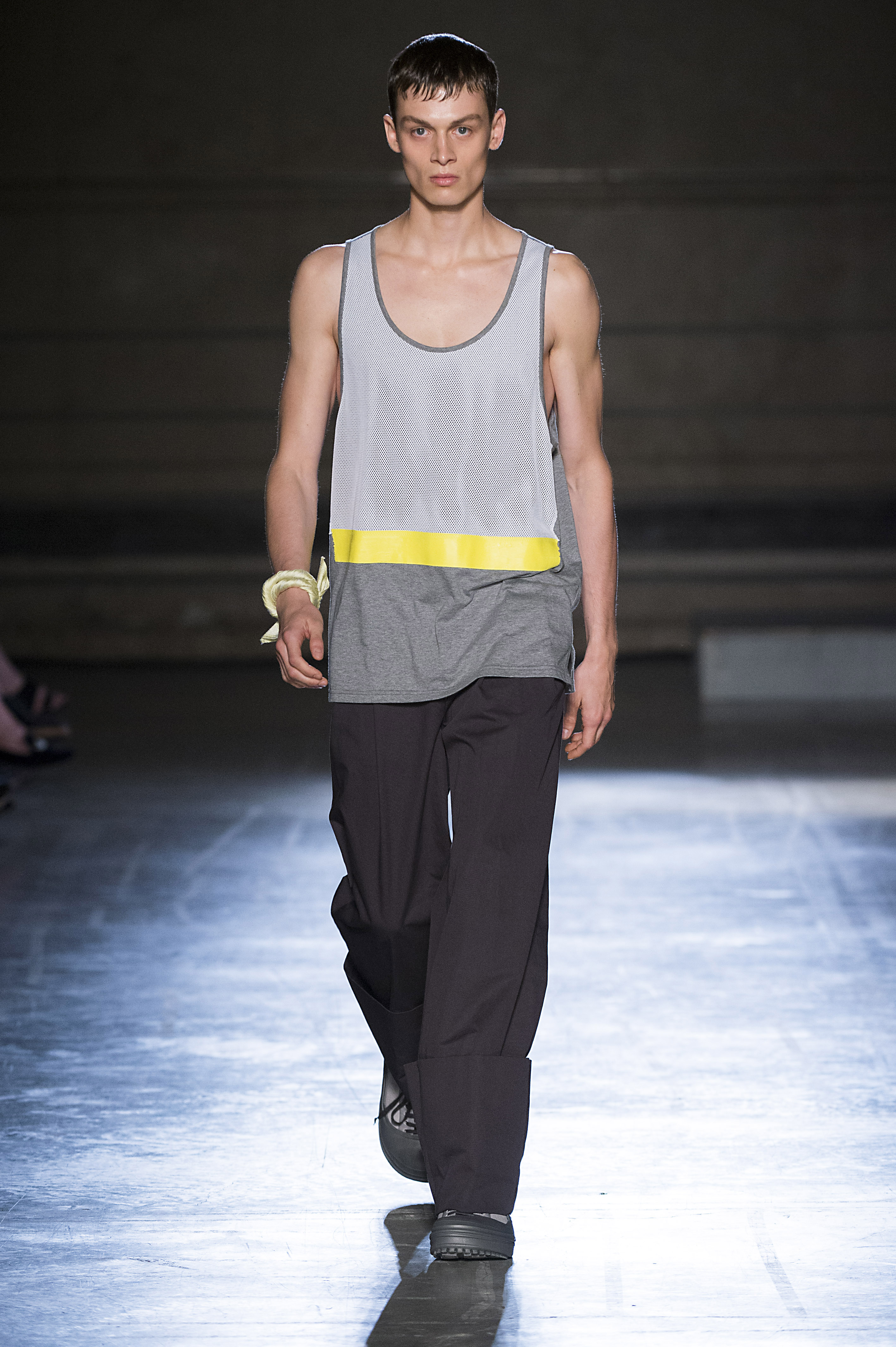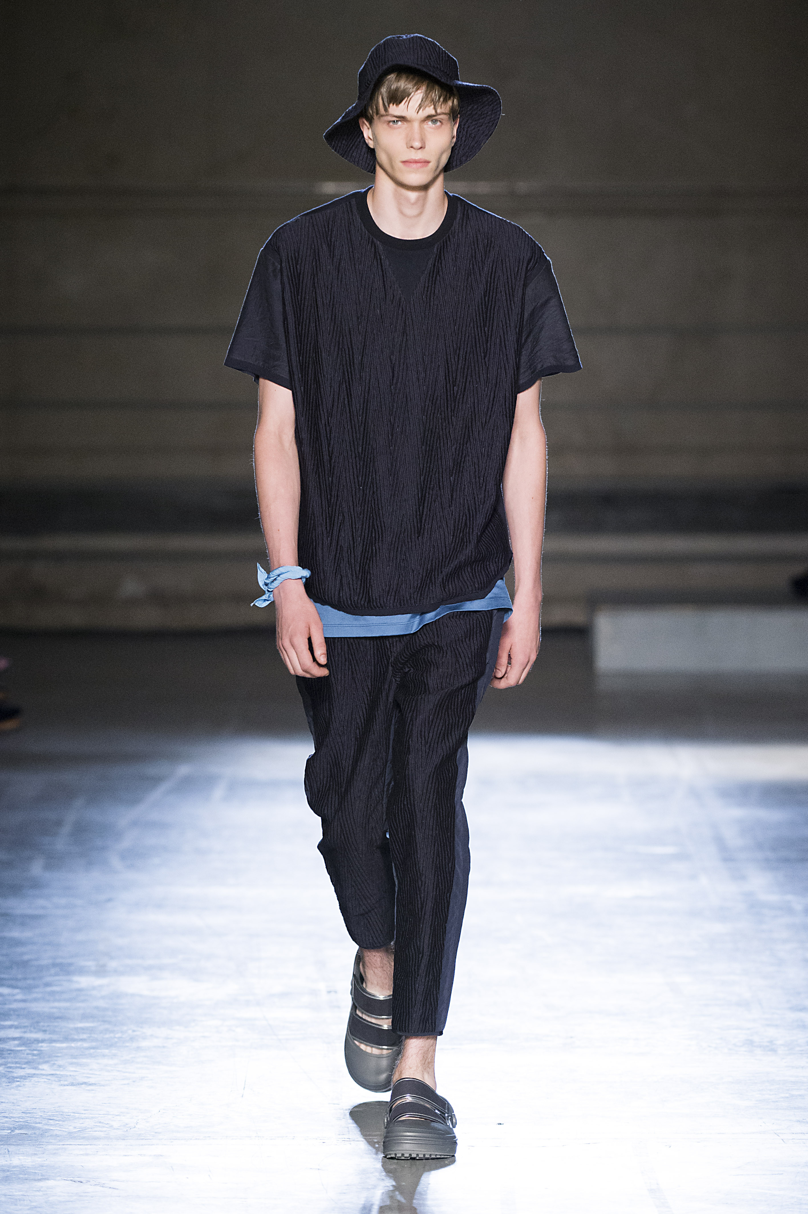 Cette collection repose sur une attitude, celle d’un jeune homme insouciant, un peu fêtard pour qui les contraintes des 35heures n’existent pas. Il vagabonde entre le littoral inondé de soleil et le calme d’une rue ombragée. Son attitude « à prendre ou à laisser » fait de lui un incorrigible séducteur. Un chapeau mou sur la tête et une parka noué autour des hanches son style n’a aucune limite; il porte son t-shirt imprimé favori sous une veste  finement travaillée. Ses rêves de devenir un artiste sont pour l’instant absorbés par son mode de vie qui est déjà un art en lui-même.