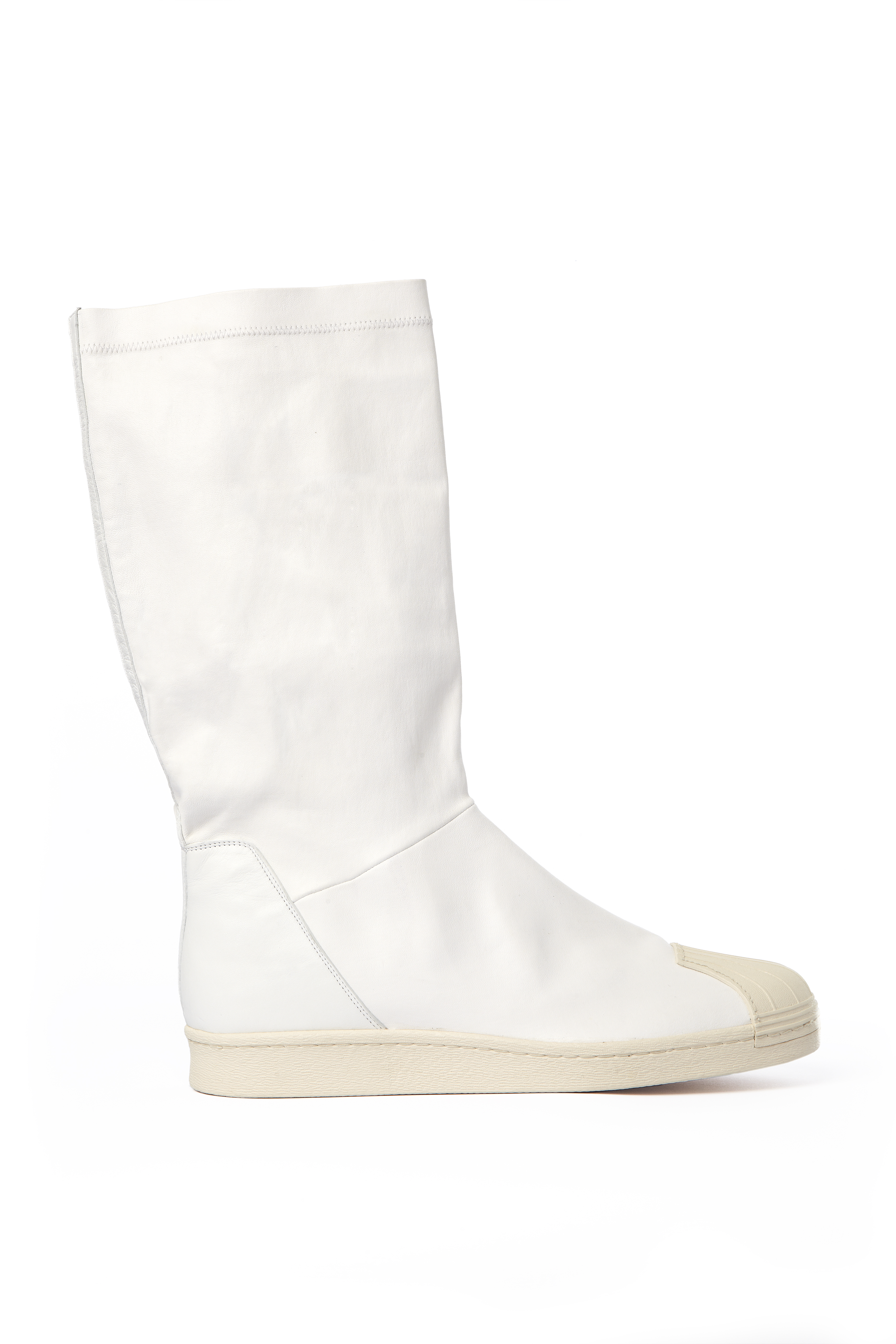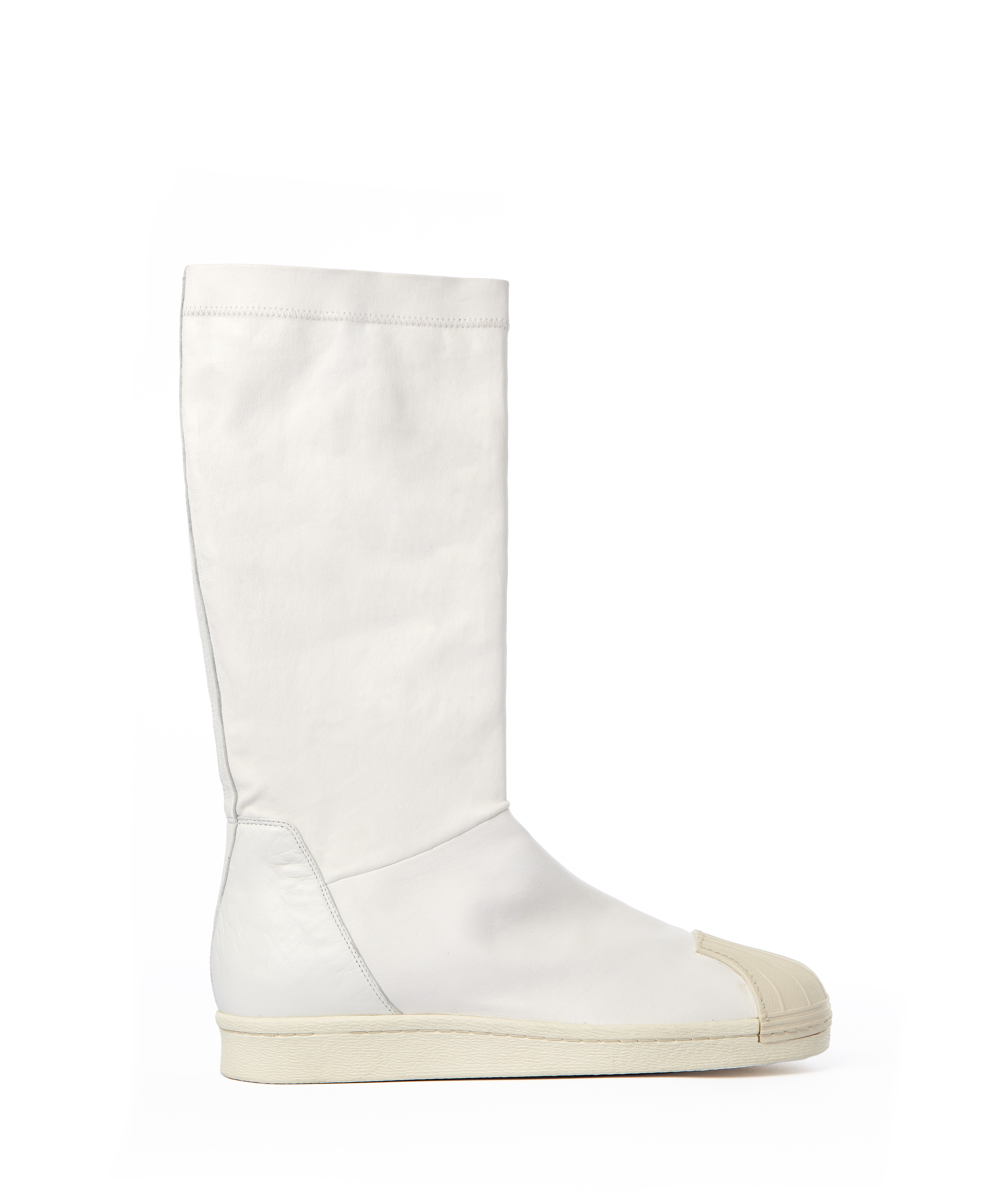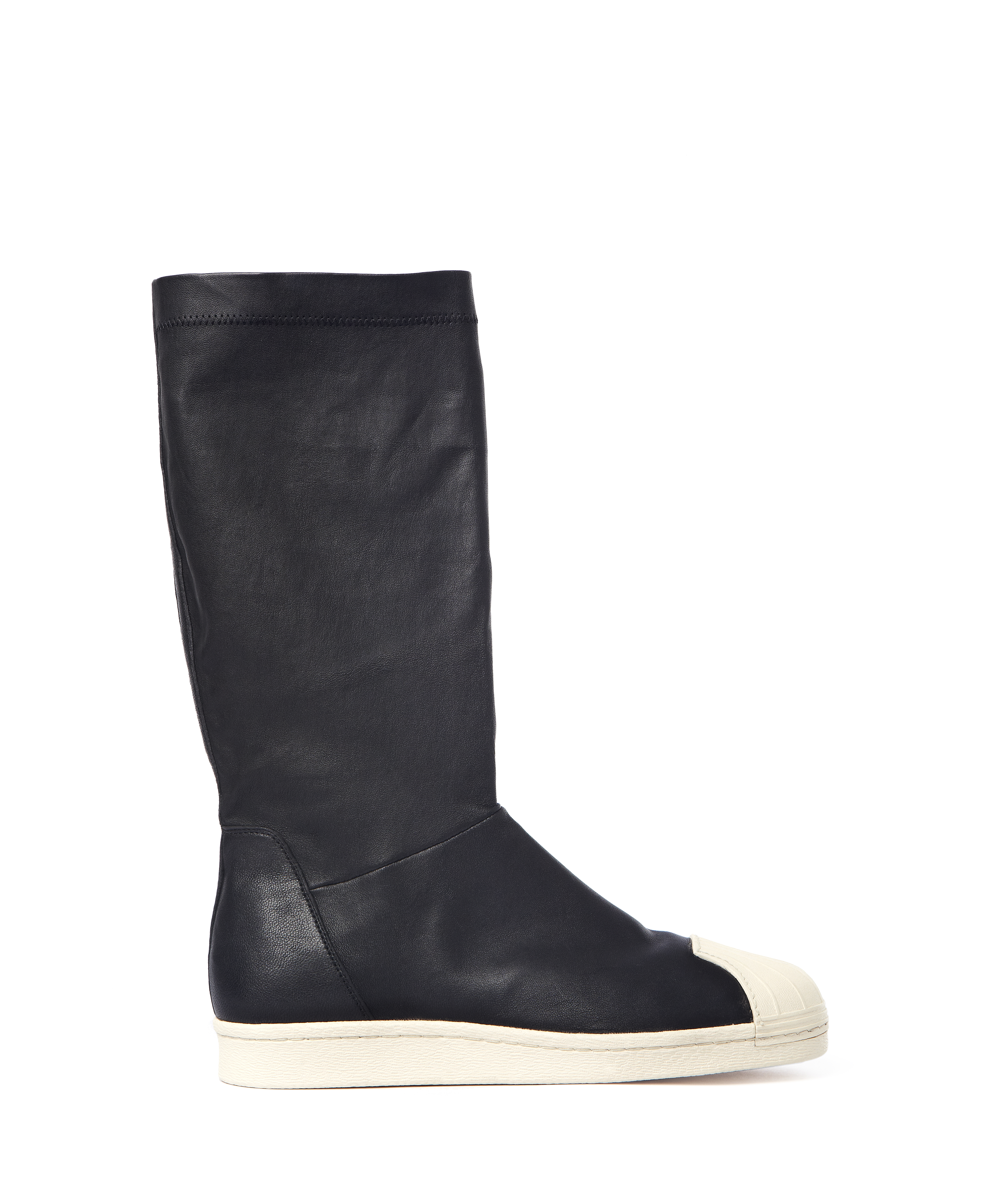 Pour le troisième modèle, la « Superstar Boot » Rick Owens retravaille l’iconique coquillage Adidas, le ramenant à son identité première et le combinant a une botte en cuir souple de haute qualité.