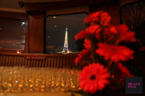 Hors-d’œuvres et musique lounge font de votre début de soirée un moment de détente avant le départ de la croisière à 20h45. Le long de la seine le River’s King déambule pour vous faire découvrir Paris de la manière la plus romantique qui soit. Ancrée à 22h30 votre soirée se prolonge jusqu’à une heure du matin ryhtmée par des musiques entrainantes.