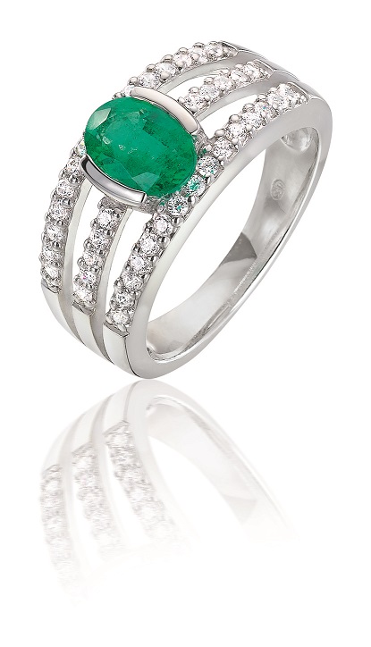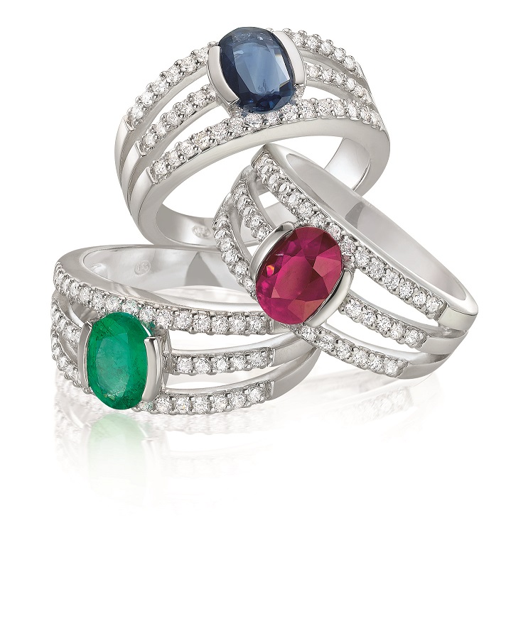 Séducteur par sa brillance, le triple anneau en or blanc serti de diamants exalte élégance et préciosité à chaque mouvement du doigt. Posé délicatement au centre, une émeraude, un rubis ou un saphir, finement facetté, révèle la beauté impénétrable de la pierre que les diamants portent aux nues. Pour sublimer la promesse d’une existence à deux.