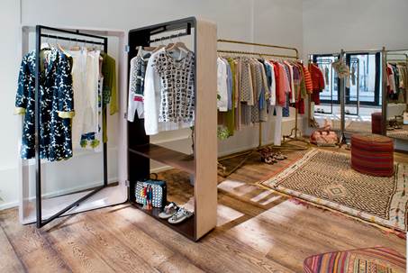L’espace est réinventé dans un esprit à la fois éclectique et nomade, à travers différents créés à partir de présentoirs mobiles. Une boutique évolutive et accueillante, qui apporte une certaine continuité au concept de » boutique-maison » si cher à Maliparmi : lieu d’achat, certes, mais aussi de rencontre ou l’on peut échapper quelques instants à la frénésie quotidienne.