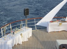 Avec 8 ponts pour un total de 2000m2, on a beaucoup d’espace pour profiter du farniente où des activités nombreuses proposées par l’équipe de GO du club med. Notamment du ski nautique et pleins d’activités nautiques.