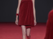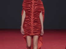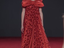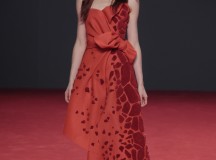 en intégrant les références de la couture classique. Des motifs empruntés aux pelages d’animaux sauvages – leopard, zèbre, girafe – sont réalisés en moquette, rasée et minutieusement posée à la main, ce qui a nécessité jusqu’à 300 heures de travail par modèle. La collection est une référence surréaliste à la fourrure comme camouflage, en tant que matière des vêtements indigènes anciens, et à l’imprimé animal comme l’archétype de la quintessence du glamour.