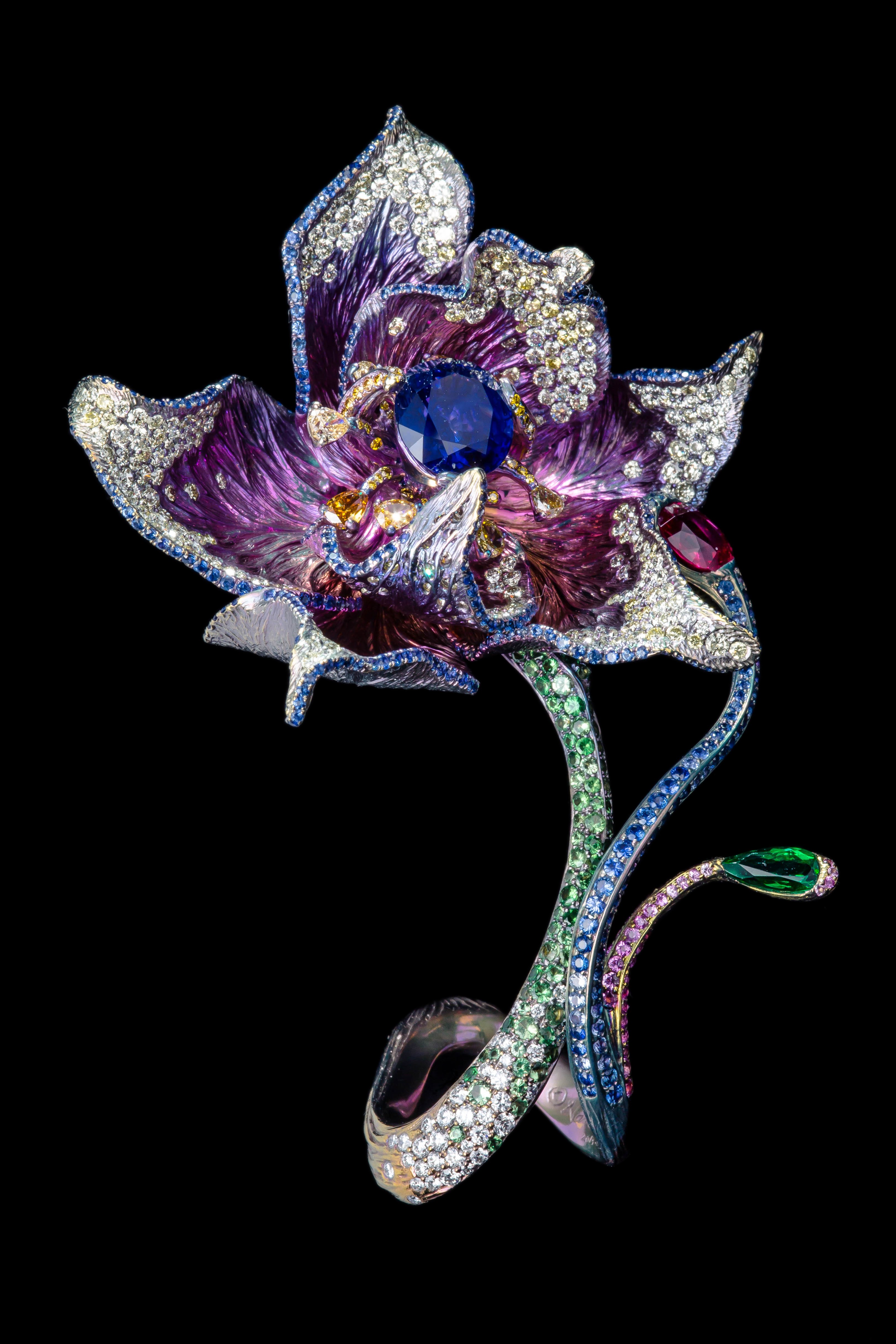 « Je crée parce que j’ai des histoires à raconter », explique le maître joailler. Les bijoux Wallace Chan ne sont pas seulement des pièces d’une formidable profondeur poétique et conceptuelle : ce sont aussi des œuvres concrètes et tangibles aux formes et aux dessins complexes mettant en œuvre un savoir-faire étonnant. Ses techniques innovantes de sertissage et de moulage interpellent l’esprit des spectateurs les plus assidus et expérimentés, qui ne cessent de s’émerveiller devant le fruit de son talent et de sa vision unique.