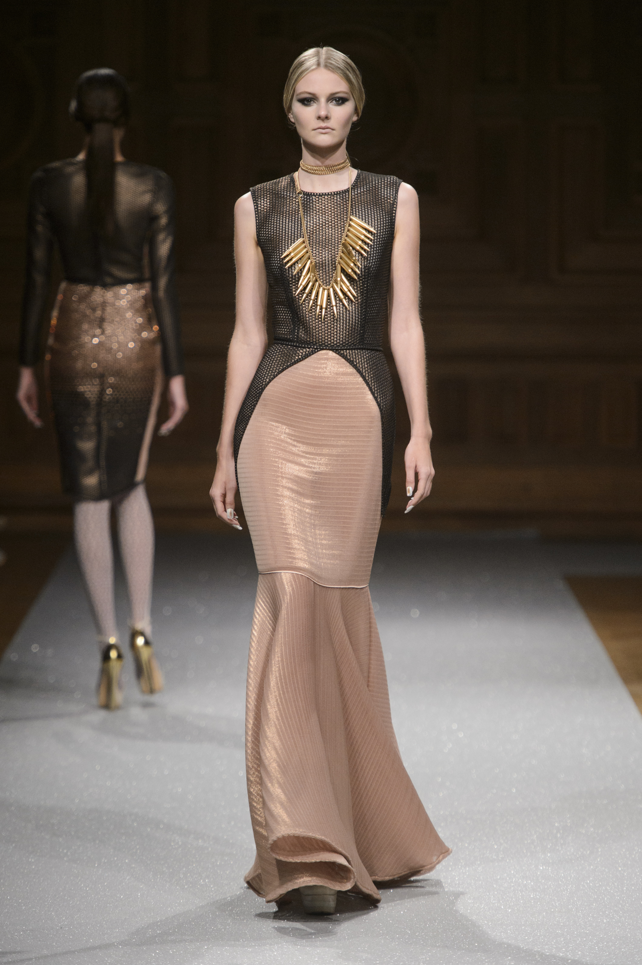 Une collection forte et équilibrée où le mélange des matières et la structure des robes projette la femme dans la modernité.