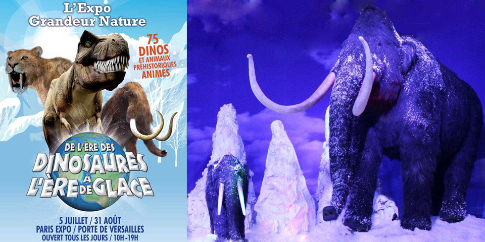 Dès le début de l’exposition, les visiteurs sont plongés au cœur de l’ère glaciaire et peuvent découvrir et observer une trentaine d’espèces de mammifères préhistoriques (mammouths, rhinocéros laineux, castors géants, tigres aux dents de sabre,) ainsi que les ancêtres de l’homme (Homo Erectus, homme de Neandertal et homme de Cro-Magnon) mis en scène dans leur habitat naturel. Les décors ont été étudiés pour représenter les différents biotopes comme la toundra, les forêts et les glaciers. Dans la seconde partie de l’exposition, les visiteurs font un bond dans le temps pour découvrir le monde tel qu’il était il y a 150 millions d’années à l’ère secondaire, à quoi ressemblait la planète, quelles espèces la peuplaient et quels végétaux la recouvraient. Plus de 20 espèces de dinosaures sont présentées, du plus petit Archeopterix au plus grand Brachiosaure.