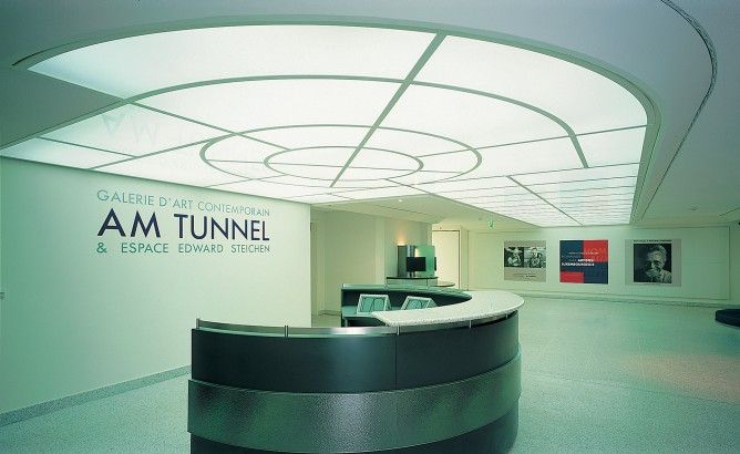 A l’origine de ce projet, la BCEE, Banque et Caisse d’Epargne de l’Etat. En 1987, la direction décide de relier les quatre bâtiments de l’institution par un tunnel. Entre 1992 et 1993, il a été transformé en galerie d’Art. La Galerie d’Art Contemporain Am Tunnel mérite une visite non seulement pour la singularité de son élaboration mais également pour sa collection permanente. Cette dernière regroupe des artistes luxembourgeois reconnus ou émergents. Un fond d’environ 120 œuvres de 90 artistes différents permet de varier les présentations.