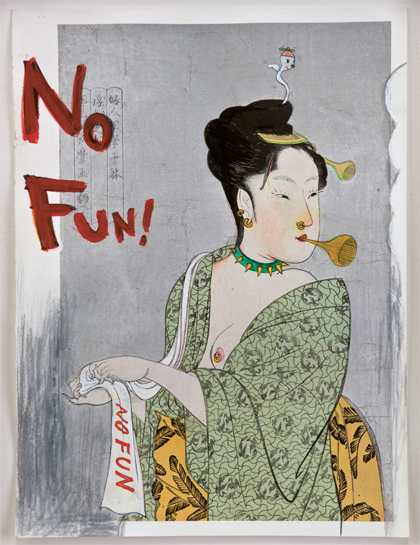 Yoshitomo Nara s’aventure dans la destruction de clichés avec No Fun ! (in the floating world), 1999. Facette par facette, artiste par artiste, les référents sont détruits.