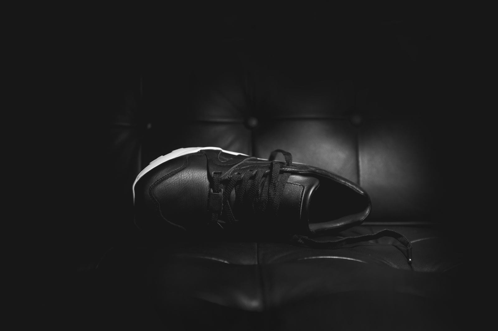 Achromatique signifie sans couleur. Disponibles uniquement en noir et blanc, ces baskets ne sont que des baskets. Toute indication de marque a disparu du produit. Je voulais réaliser un modèle qui soit jugé uniquement sur sa ligne, ses matériaux et sa fabrication. Un projet où la qualité l’emporte sur la marque ou le designer. »