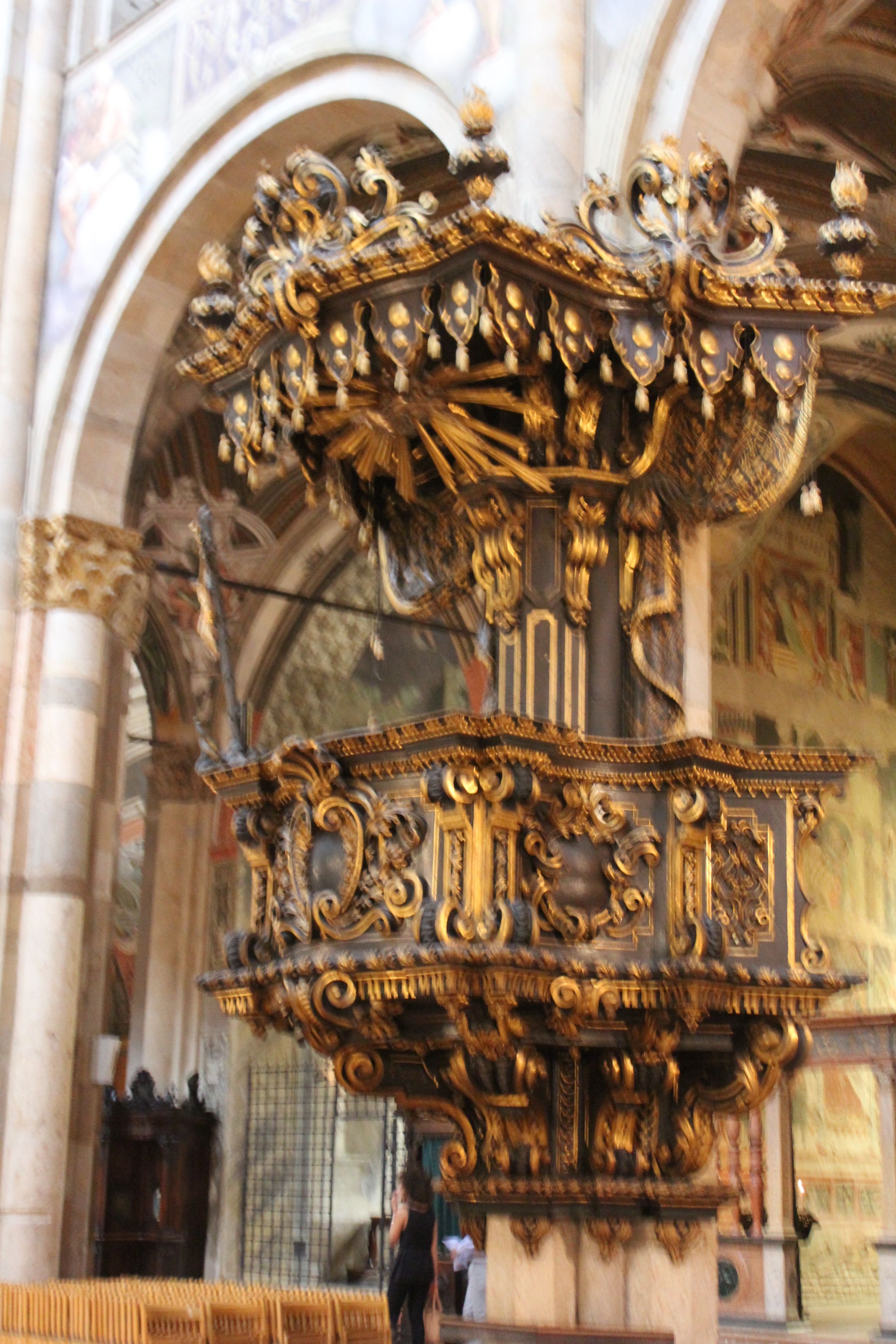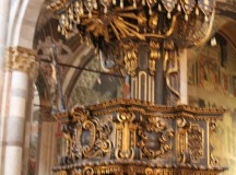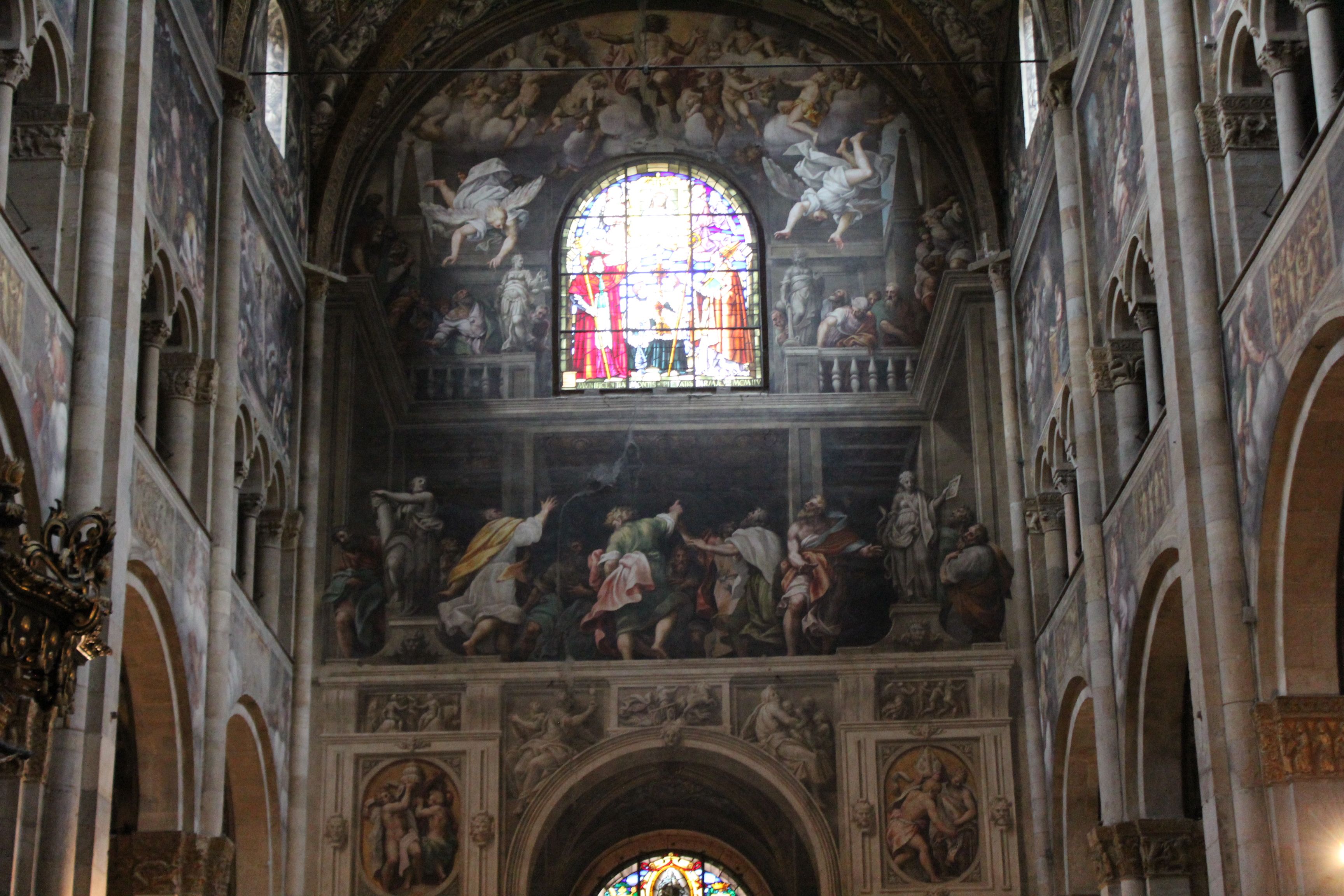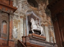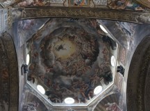 S’en suit une balade des plus instructives dans la ville de Parme. Nous commençons par le Teatro del Reggio où sont donnés depuis des siècles les Opéras les plus importants d’Italie ainsi que l’illustre Palazzo Farnese où avaient lieu les naumachies( batailles navales spectaculaires) et les événements illustres de la ville. Nous faisons aussi un arrêt à la fameuse cathédrale de Parme pour voir la coupole de Corregio, maître de la renaissance et du trompe l’œil.