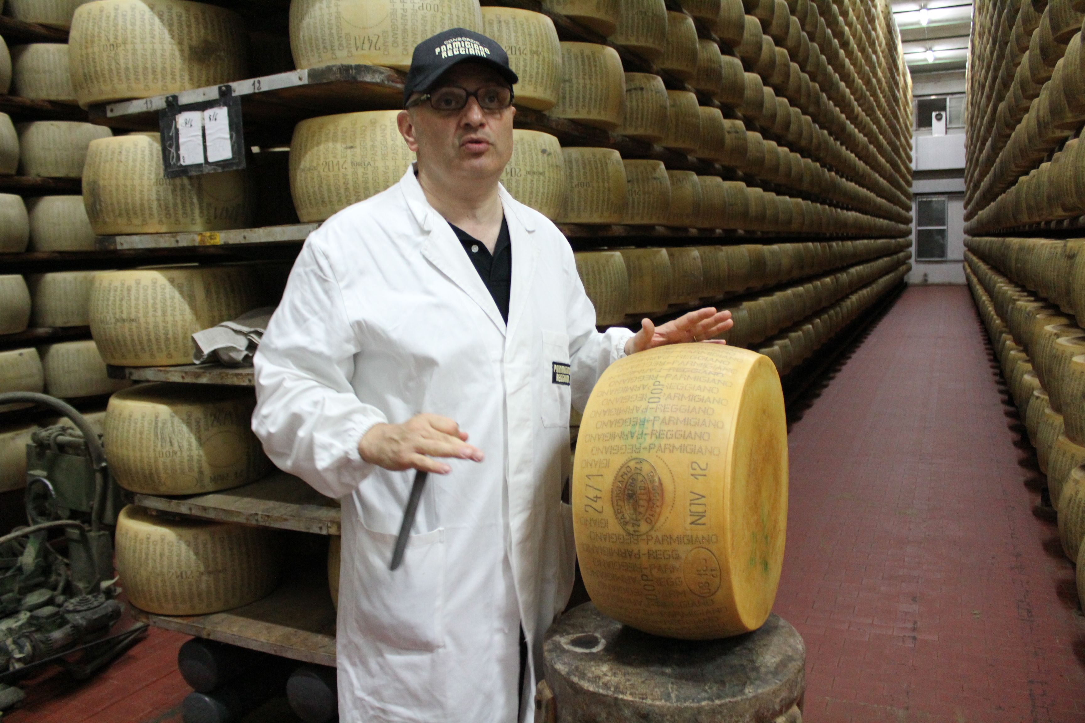 Au cours de la période de maturation et d’affinage, les meules reçoivent la visite d’experts. À l’oeil, ils évaluent les meules. Mais aussi à l’oreille, en les frappent de leur fin marteau. Si le son est disharmonieux, ce qui est très rare, un vide s’est formé dans la pâte et la meule est écartée. Le son est-il clair et harmonieux ? Tout va bien sous la croûte. C’est la musique du Parmesan. La plus grande partie des meules prendra la direction de l‘affinage, une petite partie sera déclarée Parmigiano Reggiano « Mezzano», à consommer sans attendre dans des préparations culinaires.
