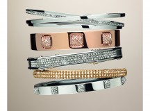 Pour les manchettes « Spiral », « Bolt » ou « Tactic », la pureté des formes est féminisée par l’application de cristaux pavés, offrant ici encore la possibilité de superposer et de mixer les métaux.
