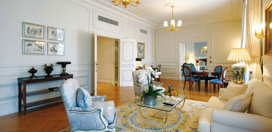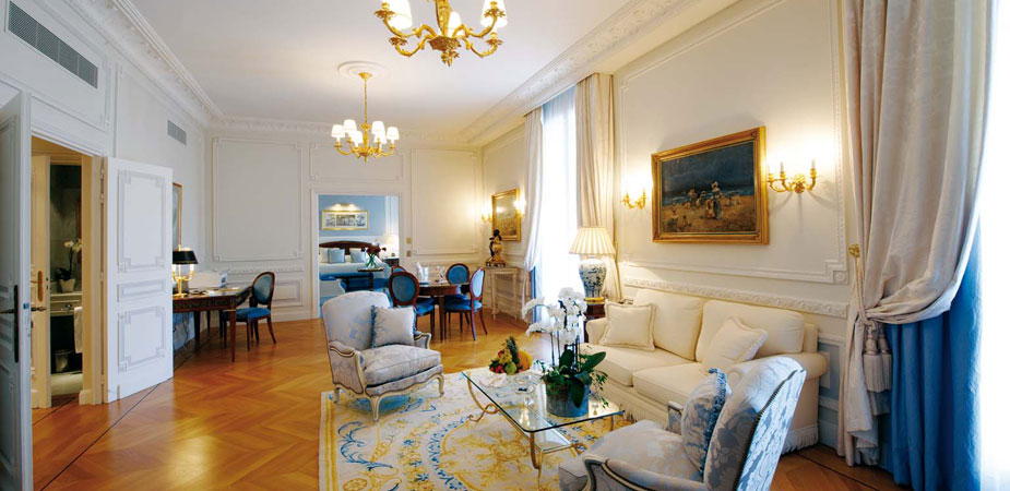 d’autres salons, au fond des boutiques de luxe, et en face la réception et la conciergerie. Premier contact, premiers sourires, une attention et une efficacité immédiate, l’accueil extrêmement courtois du directeur qui tient à saluer tous ses hôtes, en particulier ceux qui viennent à l’Hôtel de Paris pour la première fois. La magie opère, l’Hôtel de Paris ressemble à un grand orchestre symphonique qui ne joue que pour vous. Membre des « Leading Hotels of the World », maintes fois primé pour ses prestations et son prestige, ce palace emblématique propose 182 chambres dont 81 suites