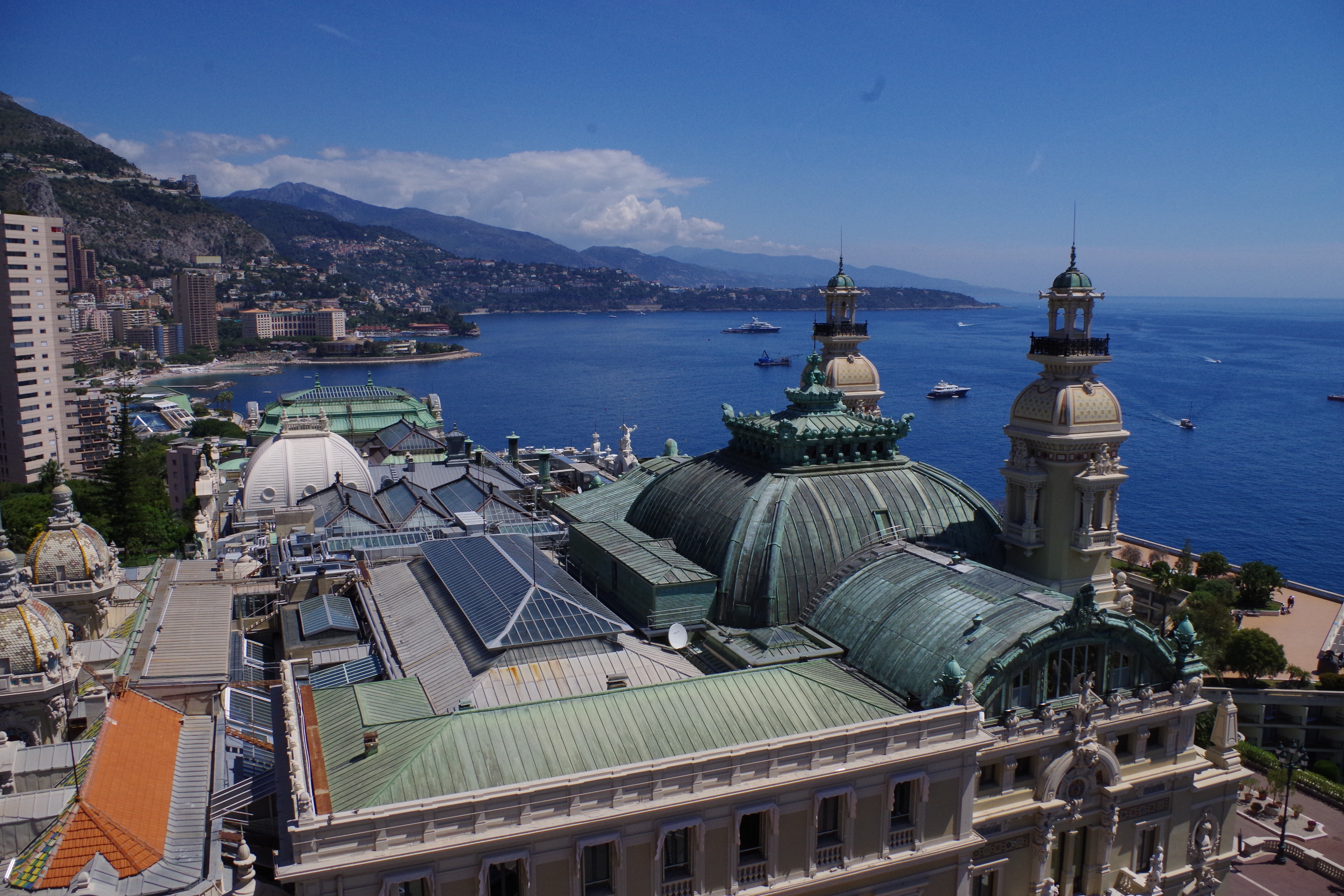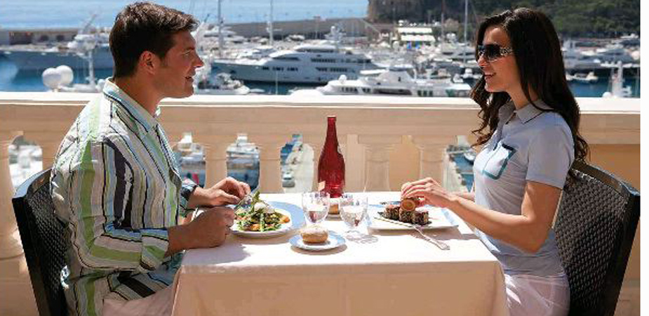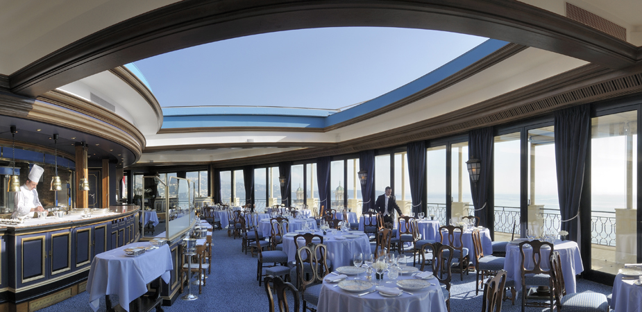 Le Grill qui fêtait en 2009 son jubilé, n’a rien perdu de son pouvoir de séduction. Le panorama époustouflant qui survole les toits du Casino et de l’Opéra Garnier, le Rocher et le port de Monaco n’est sans doute pas étranger à son succès. De toute part, le bleu azur de la mer s’étend à perte de vue. Les délices de sa rôtisserie ouverte sur la salle font le reste. Le toit ouvrant qui disparait à la belle saison pour offrir aux convives le plaisir d’un dîner à la belle étoile ajoute une touche