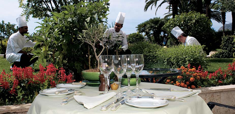 l’on ne trouve plus ailleurs. Franck Cerutti, chef exécutif des cuisines de l’Hôtel de Paris et du Louis XV orchestre avec maestria, l’ensemble des brigades qui se partagent entre les quatre cuisines de l’hôtel. Du Louis XV, triplement étoilé, au Grill, la rôtisserie perchée sous les toits, du Côté Jardin, la table des déjeuners en toute simplicité, à la Salle Empire, celle des festivités en habit de gala, il met à l’honneur le produit dans sa plus pure expression, sans tricherie, pour offrir