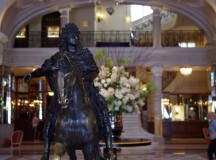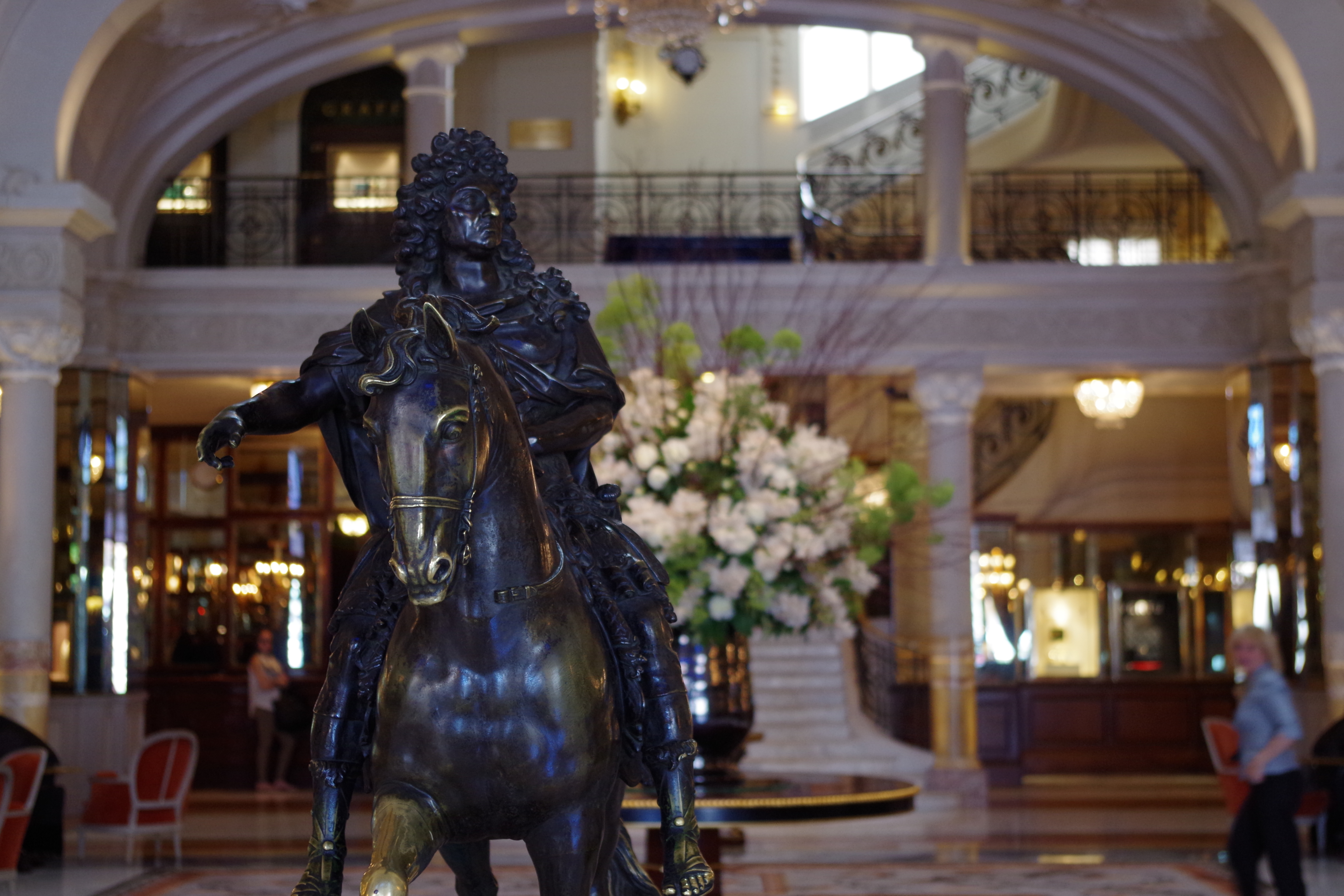 Sur la place du Casino, face à l’entrée de l’Hôtel de Paris, les voituriers semblent interpréter un ballet au volant de prestigieuses cylindrées. Le ton est donné. Quelques marches à peine, et les premiers pas dans le grand hall aux plafonds magistraux grisent d’émotion. La statue équestre de Louis XIV présente son genou lustré, signe d’une tradition qui perdure de toucher la patte pour avoir de la chance au jeu. A droite, l’entrée du prestigieux « Le Louis XV-Alain Ducasse », à gauche le célèbre Bar Américain où tout Monaco se presse, un peu plus loin, l’accès à la Salle Empire et à