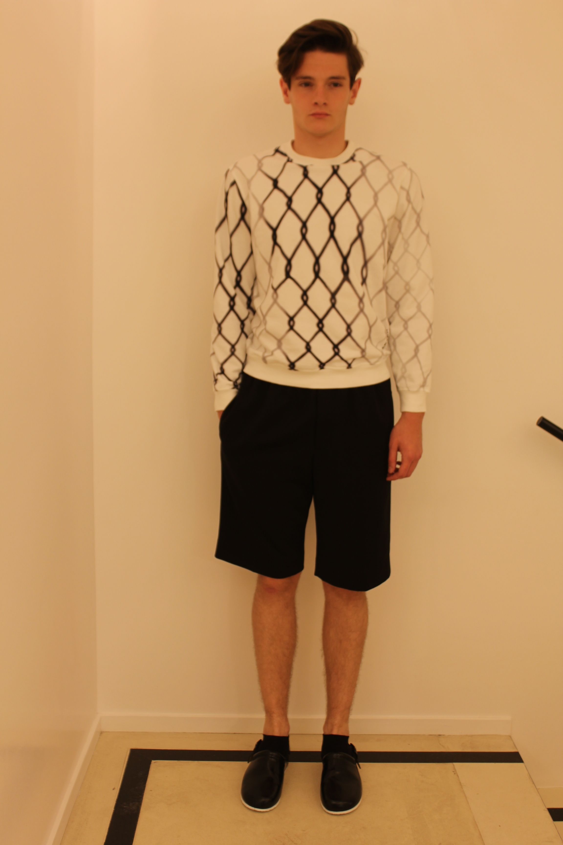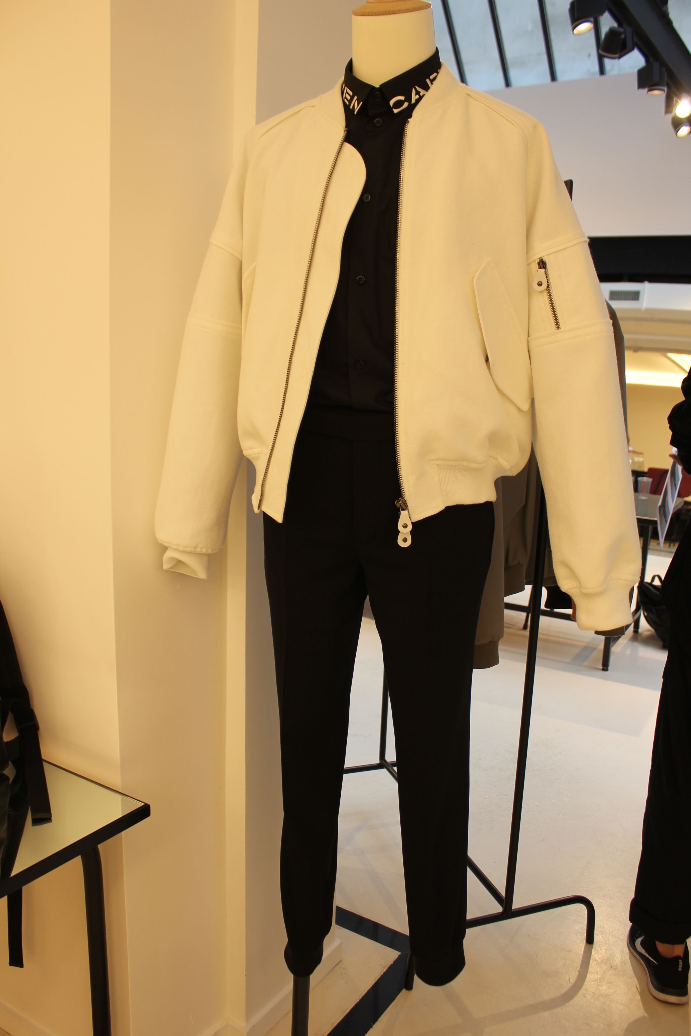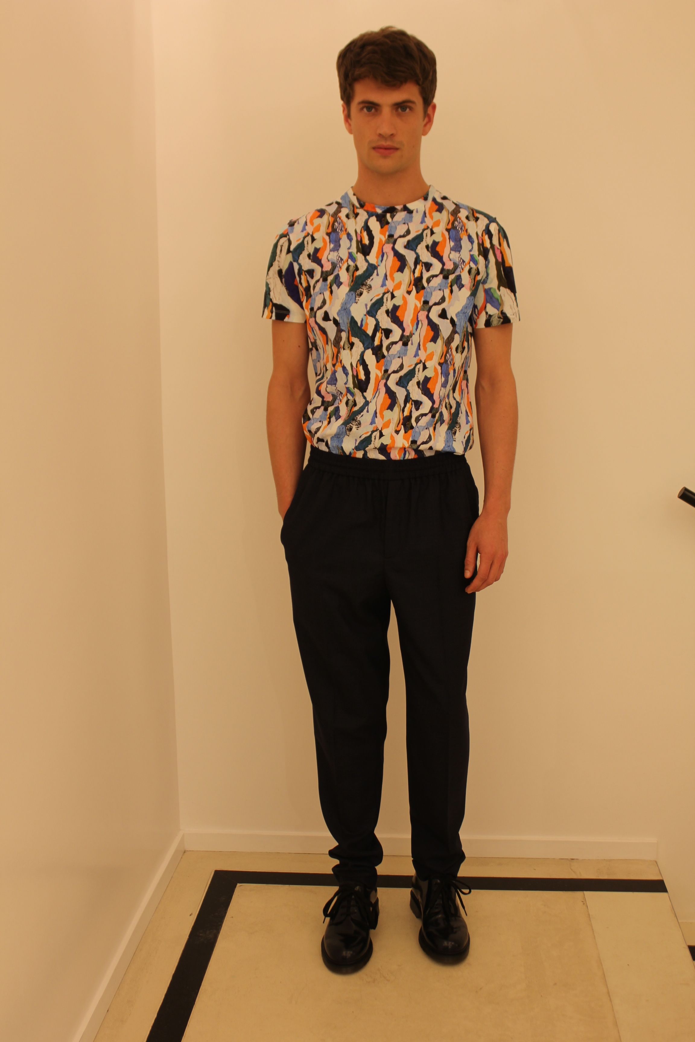 Les héros très stylés de Carven…Qui sont ces hommes que Guillaume Henry croise tous les jours en se rendant chez Carven ? Des étudiants, des garçons de café, des ouvriers… Le créateur les observe, note leur allure, leur style et en ressort quelque chose de différent… Les basiques de l’homme sont ainsi revisités avec ce twist en plus. Les parkas et trenchs possèdent des multipoches, les costumes se composent de vestes zippées et de bas de jogging. Le streetwear et le sportswear sont bien sur présents, à travers les multiples propositions de bombers et sweat-shirts mais aussi à travers notamment les polos de rugby qui deviennent des chemises aux trois tonalités, ou les logos de tee-shirts de foot qui se transforment en imprimés ludiques, comme le nom Carven brodé sur le col. Comme dans un film de Ken Loach, dont Guillaume Henry s’inspire, les héros de Carven semblent passer de la rue aux studios, sans problème. Mais toujours avec beaucoup de style.