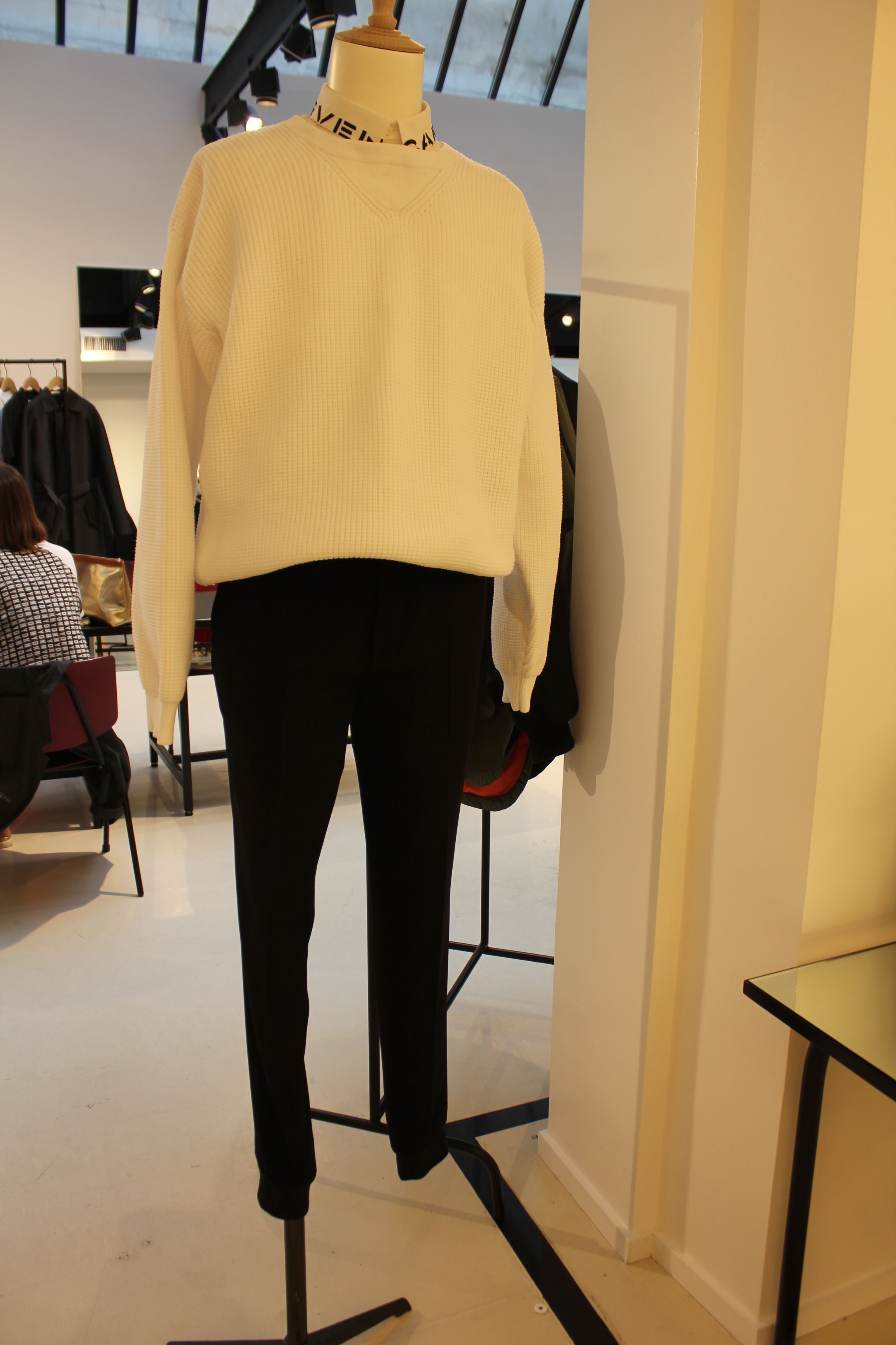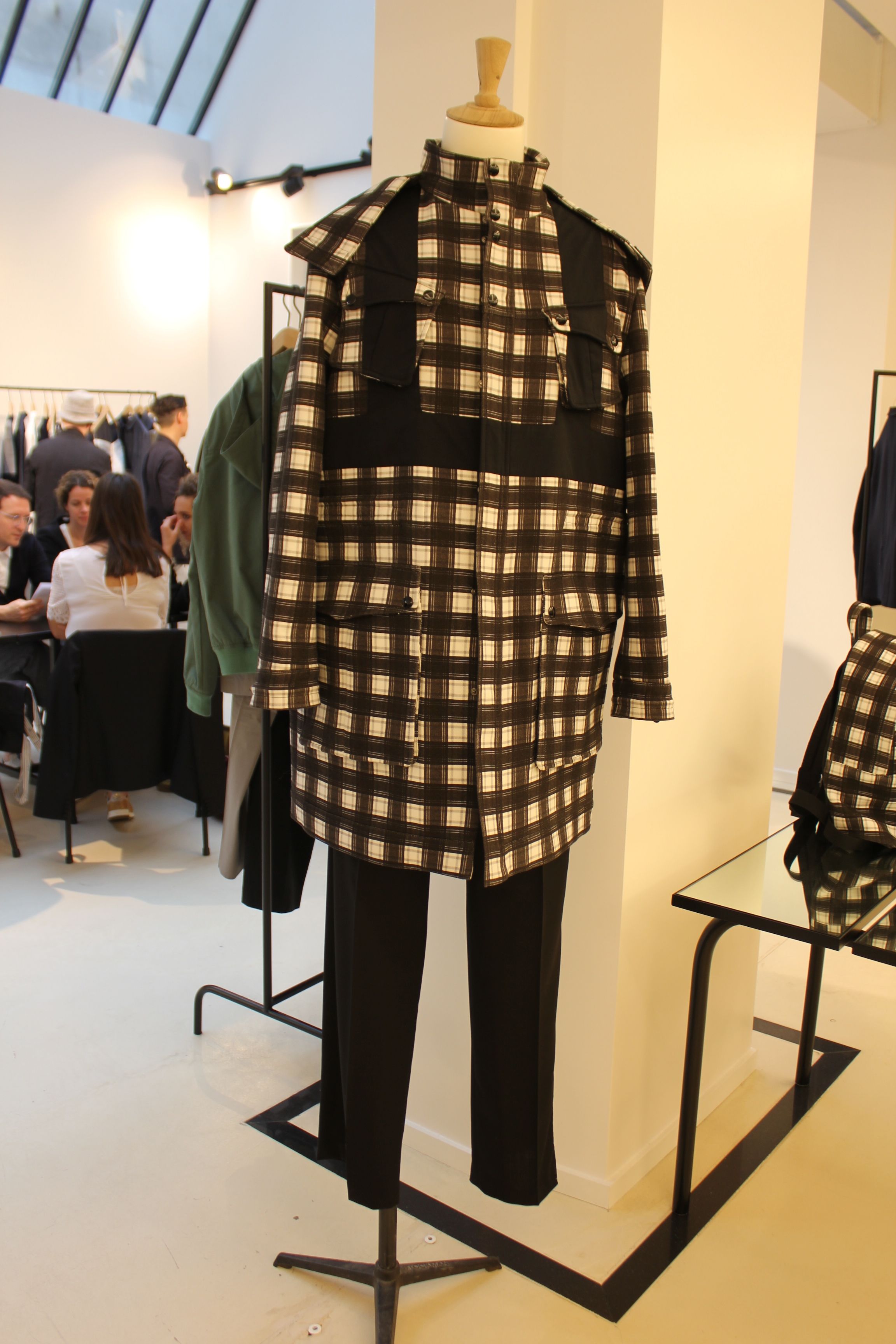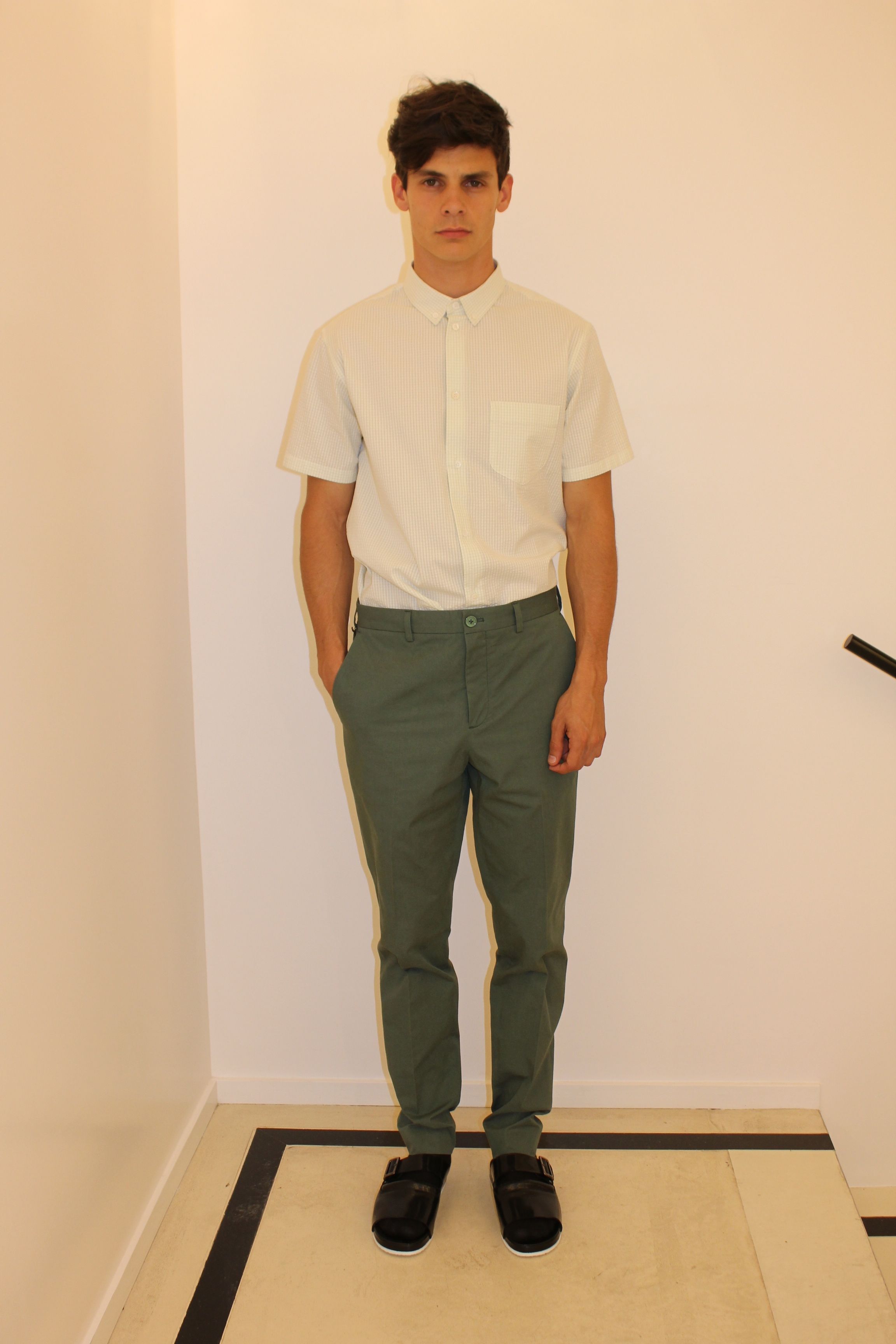 Les héros très stylés de Carven…Qui sont ces hommes que Guillaume Henry croise tous les jours en se rendant chez Carven ? Des étudiants, des garçons de café, des ouvriers… Le créateur les observe, note leur allure, leur style et en ressort quelque chose de différent… Les basiques de l’homme sont ainsi revisités avec ce twist en plus. Les parkas et trenchs possèdent des multipoches, les costumes se composent de vestes zippées et de bas de jogging. Le streetwear et le sportswear sont bien sur présents, à travers les multiples propositions de bombers et sweat-shirts mais aussi à travers notamment les polos de rugby qui deviennent des chemises aux trois tonalités, ou les logos de tee-shirts de foot qui se transforment en imprimés ludiques, comme le nom Carven brodé sur le col. Comme dans un film de Ken Loach, dont Guillaume Henry s’inspire, les héros de Carven semblent passer de la rue aux studios, sans problème. Mais toujours avec beaucoup de style.