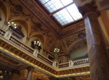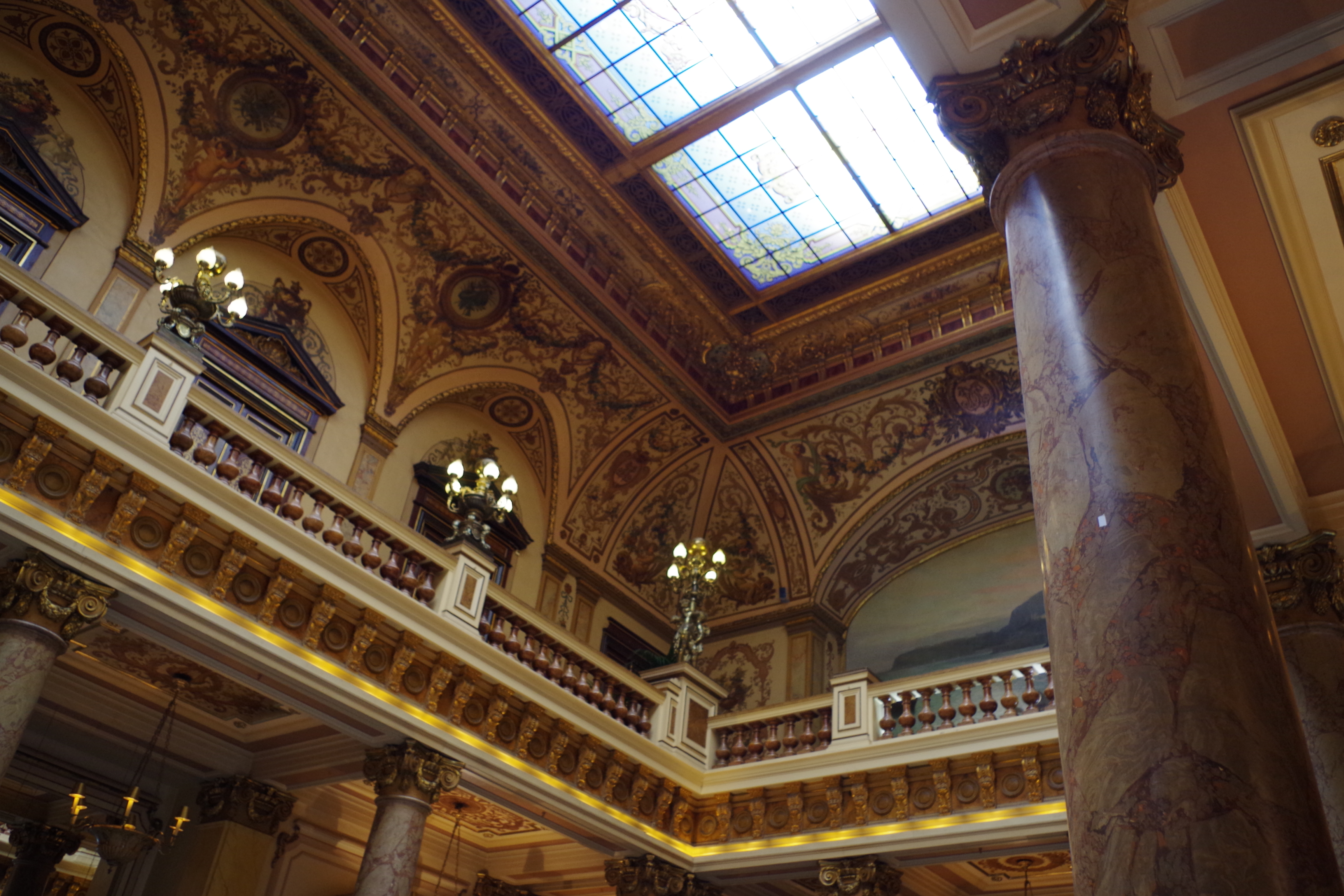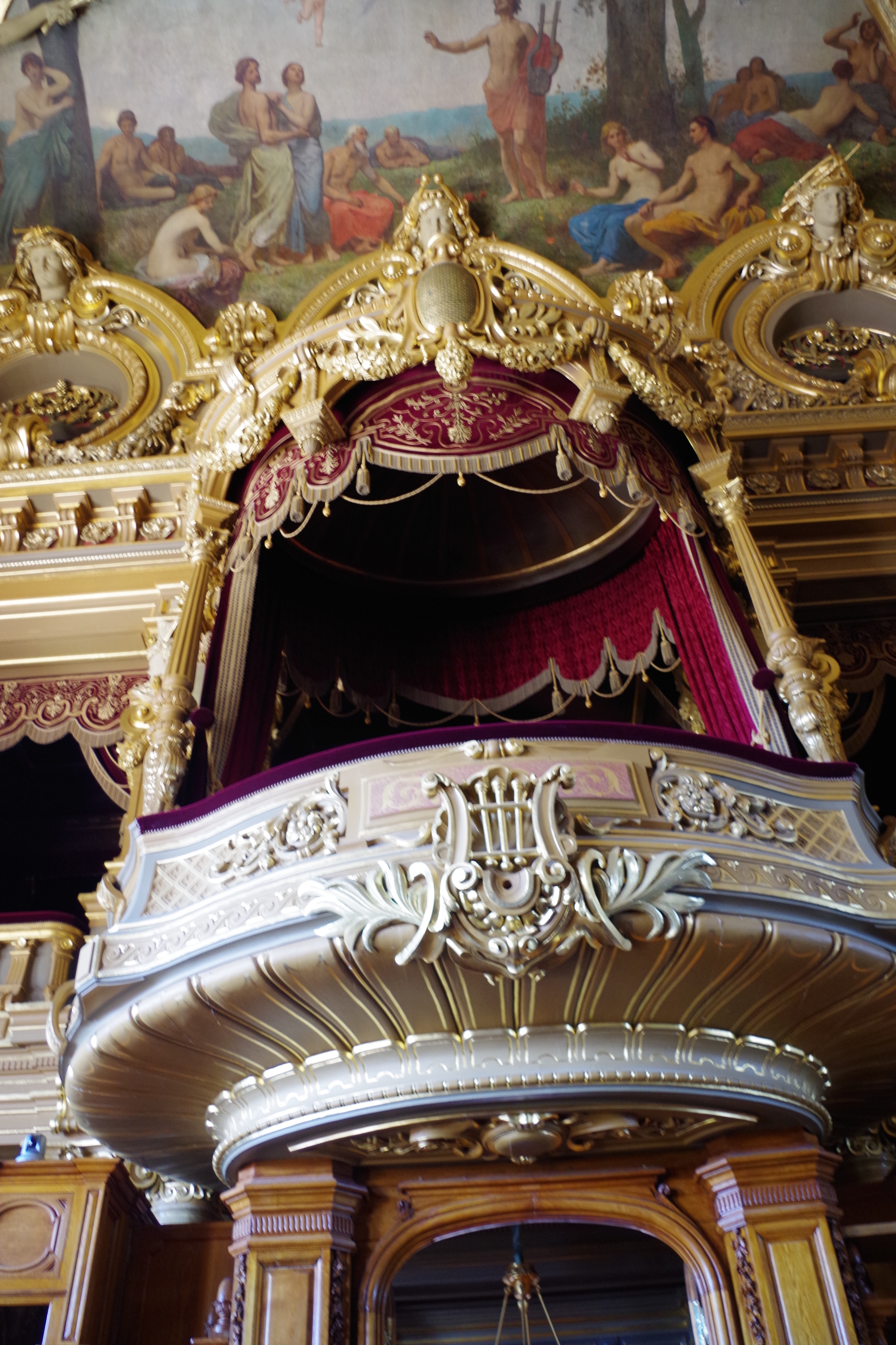 Alors que le Second Empire construit de nombreux théâtres, dont l’Opéra de Paris est à la fois le fleuron tout autant qu’un symbole de l’engouement de la Belle Époque pour les arts de la scène, Monte-Carlo mène sa vie culturelle dans son Casino. Une situation qui ne peut s’envisager plus longtemps. Aristocrates et grands bourgeois s’installent sur la Côte d’Azur avec leurs épouses et leurs familles pour des séjours de plusieurs mois. Monte-Carlo ne peut se réduire à un lieu de passage ! Pour continuer à rayonner, mais aussi attirer la gent féminine huppée, les artistes – tout ce qui rend un lieu incontournable en somme – la Société des Bains de Mer décide d’adjoindre à son casino une salle de concert digne de ce nom et d’institutionnaliser la vie culturelle à Monaco. Pour ce faire, Marie Blanc, qui depuis la mort de son mari dirige la SBM, fait appel à Charles Garnier. Dès le mois de juin 1878, plus de cent ouvriers s’activent sur le chantier. Mais, pour livrer l’édifice à temps – le théâtre doit être réalisé en 6 mois ! – l’architecte se rend vite compte que les moyens mis en oeuvre ne suffisent pas. Il a alors recours au travail de nuit et aux techniques les plus modernes. Pour résoudre la question de l’éclairage, il fait venir de Paris une locomotive à vapeur destinée à entraîner une dynamo qui alimente des bougies de Jablochkoff, symboles de l’entrée en lice de l’électricité dans l’éclairage public français. Les poutres en fer destinées à former la charpente ont été dessinées par Gustave Eiffel. Le 15 octobre, l’édification du mur sud marque la fin des travaux de maçonnerie. De grandes fenêtres donnant sur la mer font de la salle de spectacle un lieu unique au monde. Ornée de balcons et de colonnes en marbre, surmontée d’un dôme cerné par deux clochetons indiens, cette nouvelle façade s’impose désormais aux visiteurs, de toute sa hauteur baroque, dès leur descente du train. À l’intérieur, Charles Garnier a porté le luxe et l’ornement à leur comble : mariage des trois ors (jaune, rose et vert), abondant usage du symbole de la lyre, galbe de l’imposante loge princière, citations artistiques italiennes et antiques…