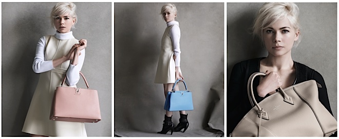 Michelle Williams renfile son costume d’égérie de la Maison Vuitton pour la troisième fois consécutive. L’actrice, très occupée par son rôle dans la comédie musicale Cabaret, a pris le temps de poser pour la nouvelle campagne publicitaire du grand maroquinier de luxe.