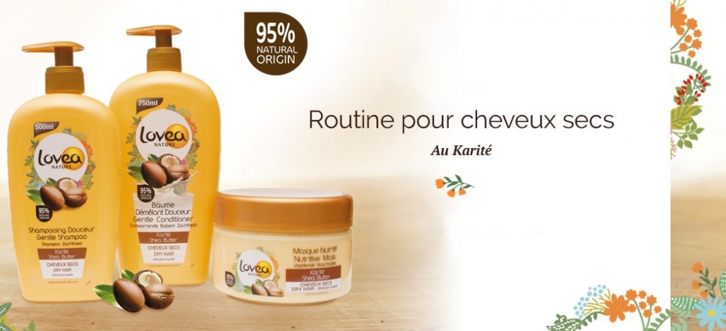 Lovéa propose une gamme de produits à 95% d’origines naturelles afin de prendre soin de vos cheveux grâce au beurre de karité connu pour ses vertus nourrissantes et à la célèbre et précieuse huile d’argan.