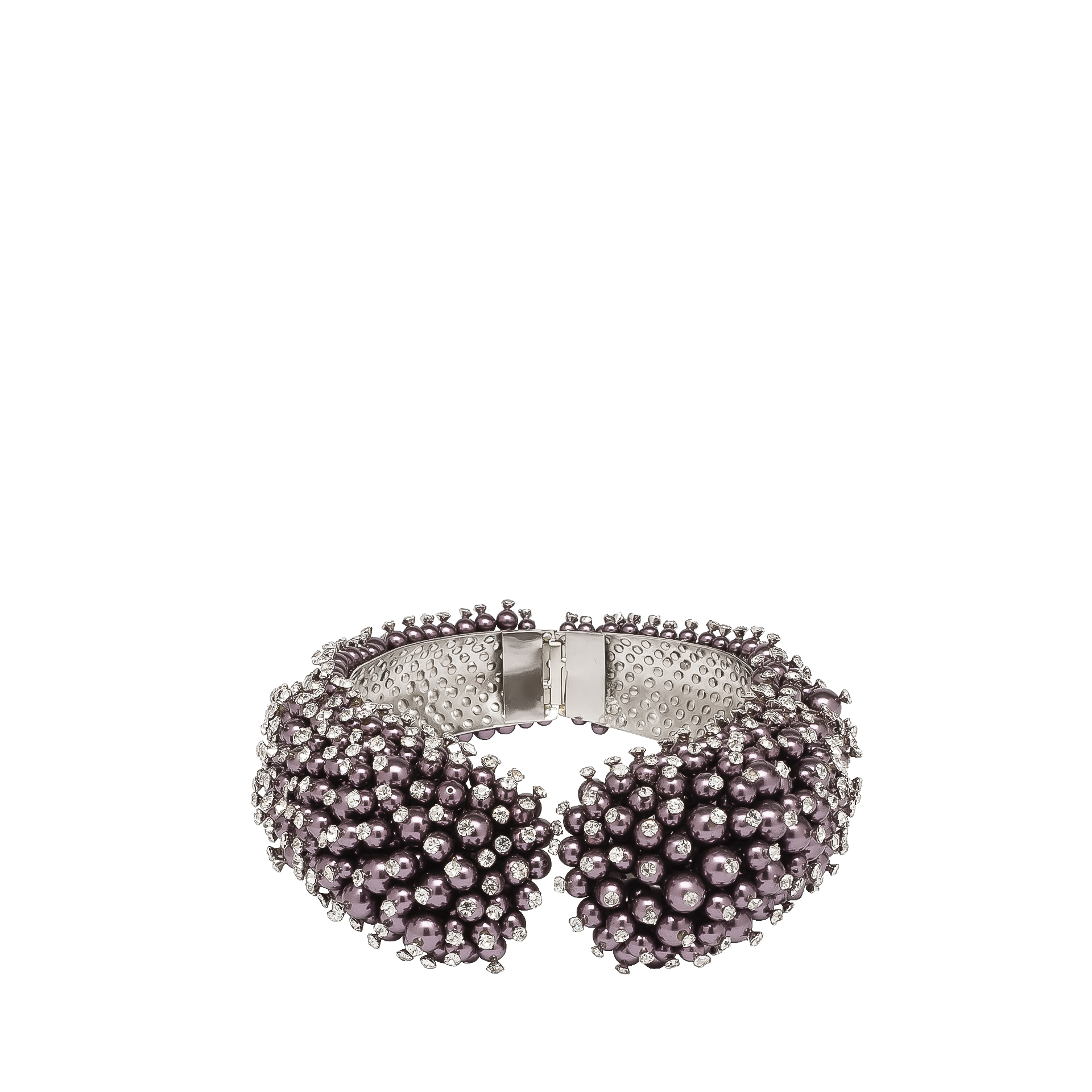Inspirée à l’origine d’une broche des archives de Cristobal Balenciaga, la collection Automne Hiver 14-15 est truffée de cette broderie précieuse et sophistiquée que l’on retrouve sur les manchettes et colliers ponctuant les silhouettes.