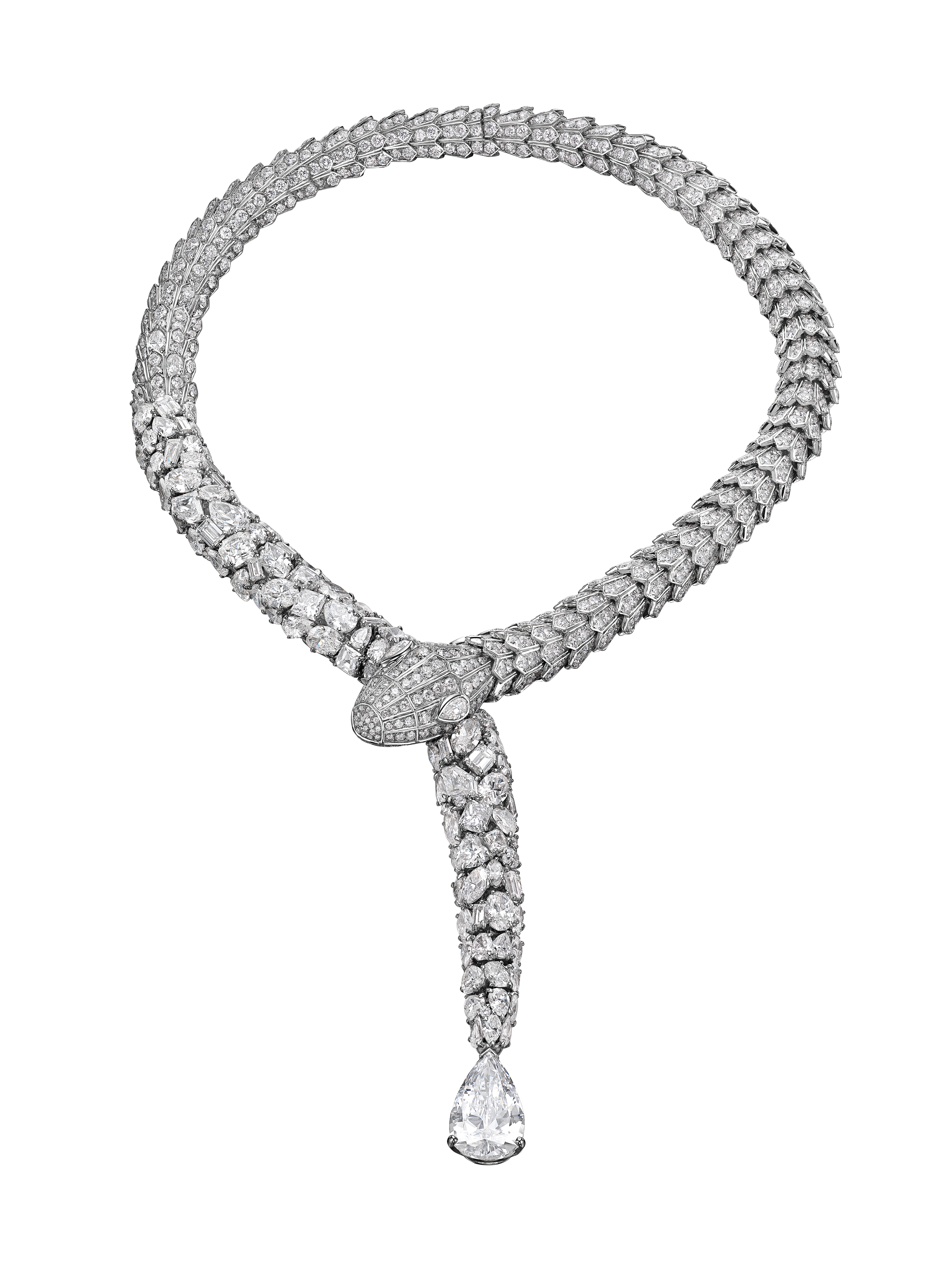 Bvlgari a imaginé un splendide collier Haute Joaillerie Serpenti, une pièce d’exception qui célèbre le serpent et son éternelle sensualité.
