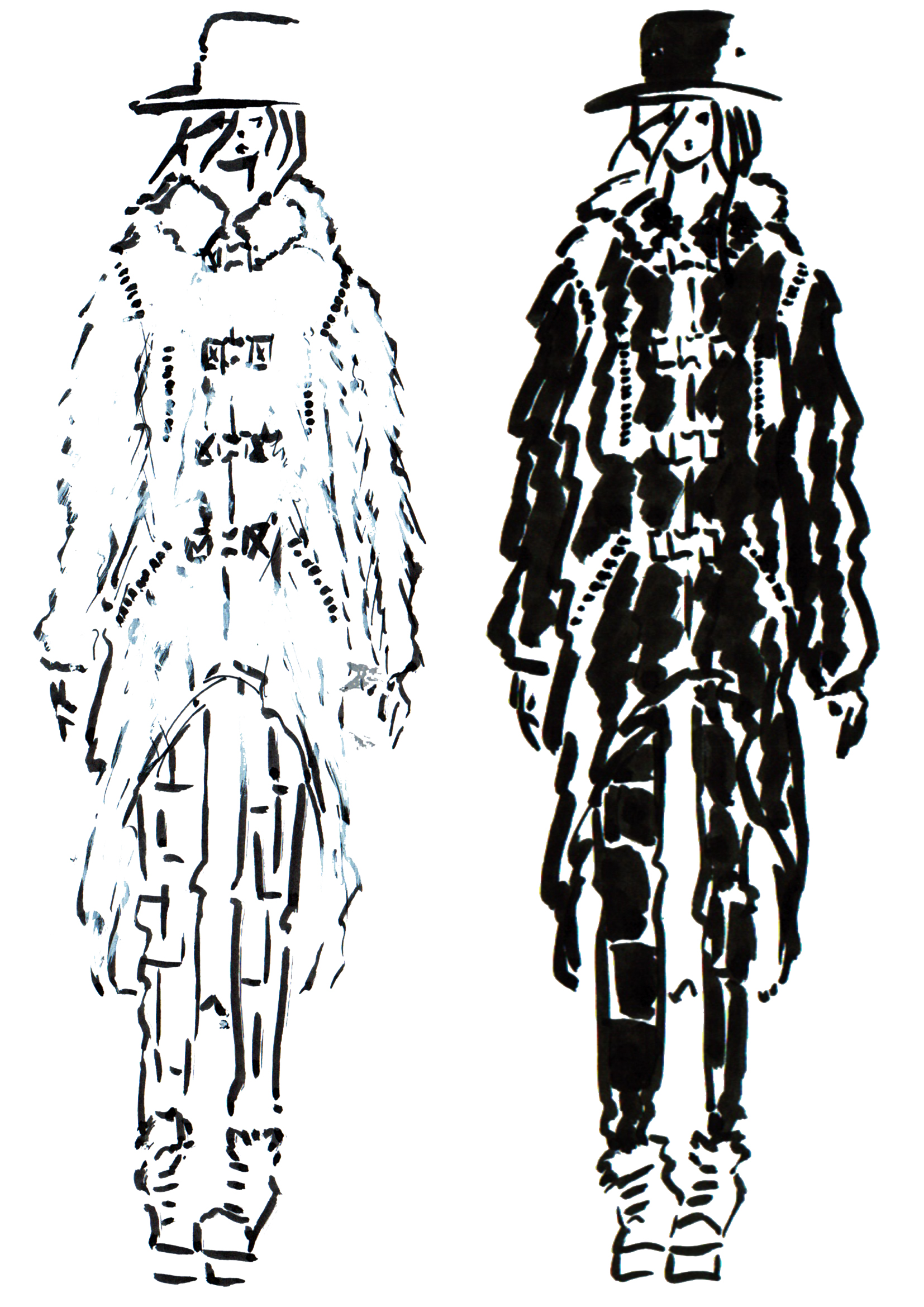 L’une de ces pièces est un manteau en fourrures et serpent assemblés en alternance, aujourd’hui mis à