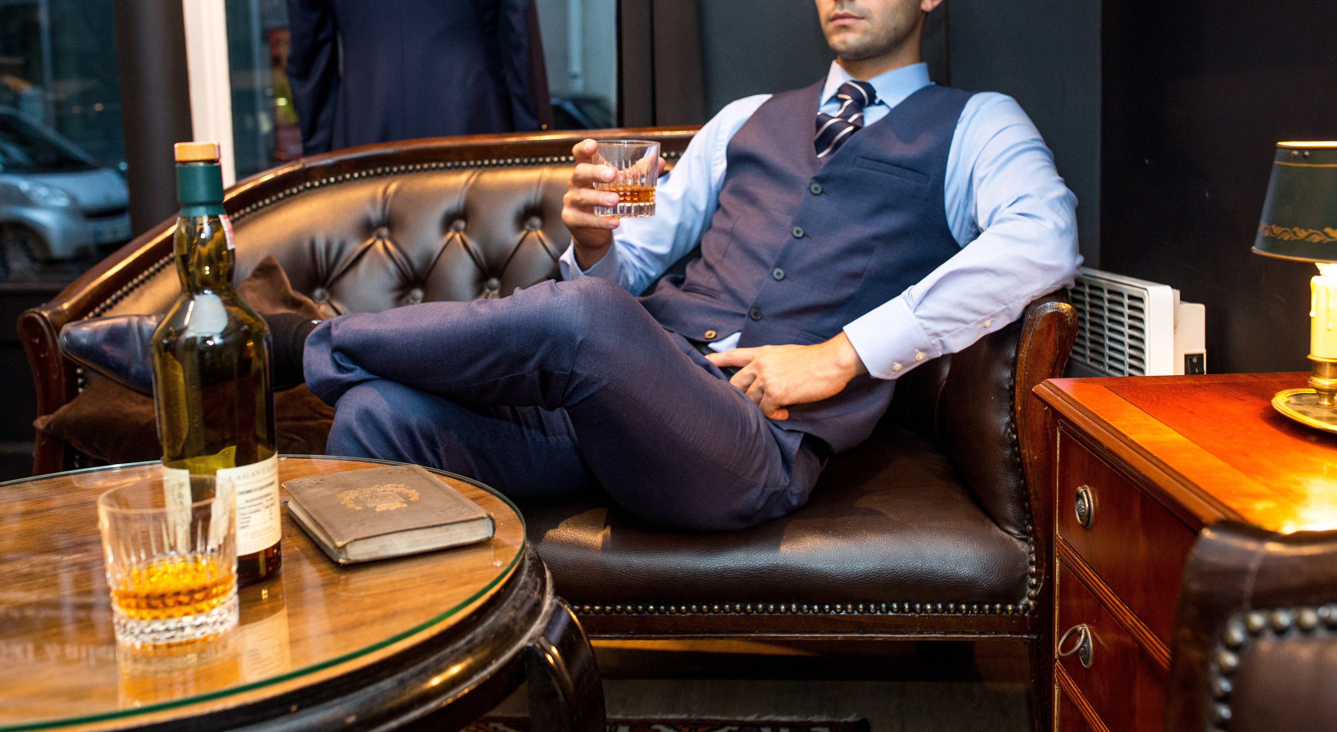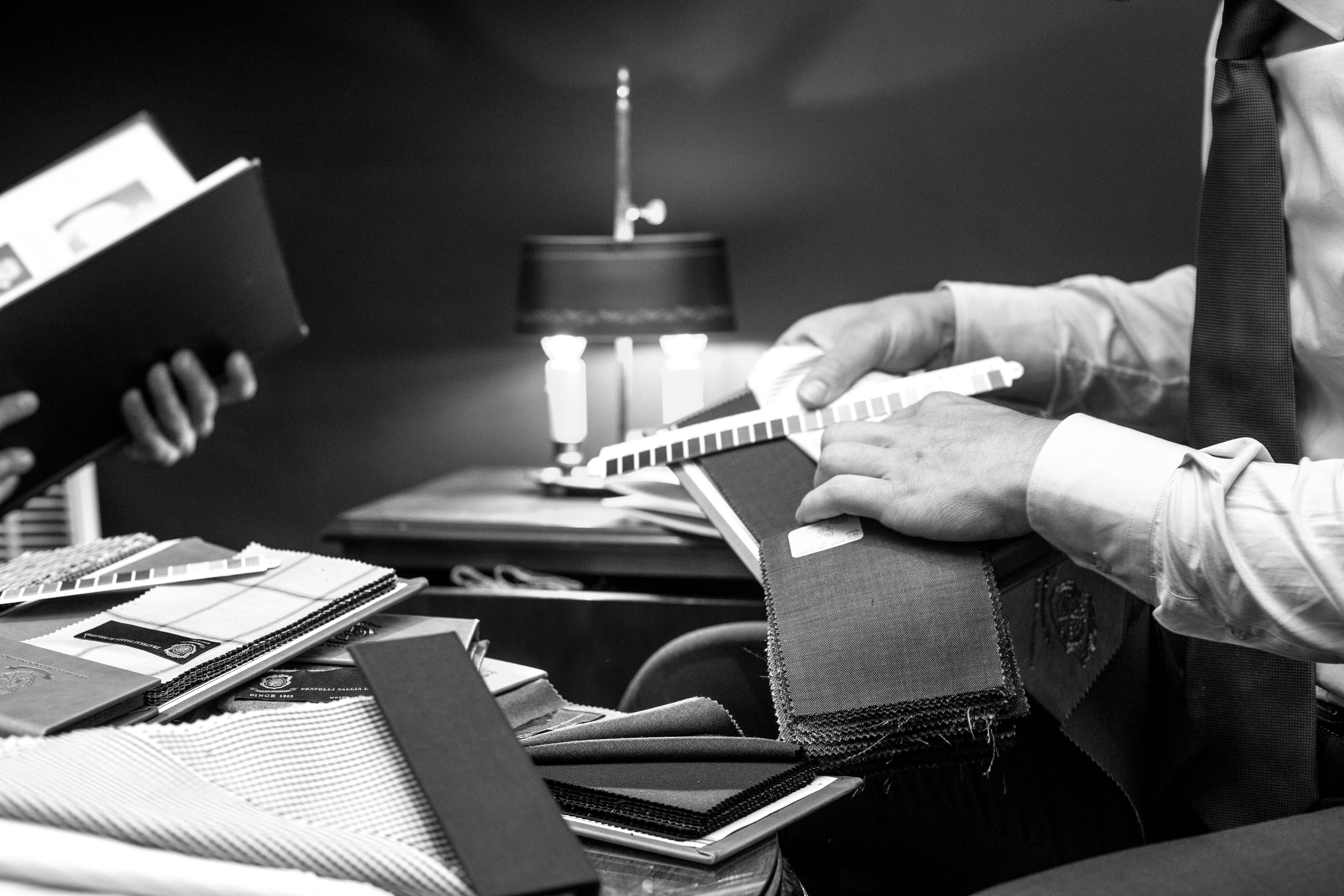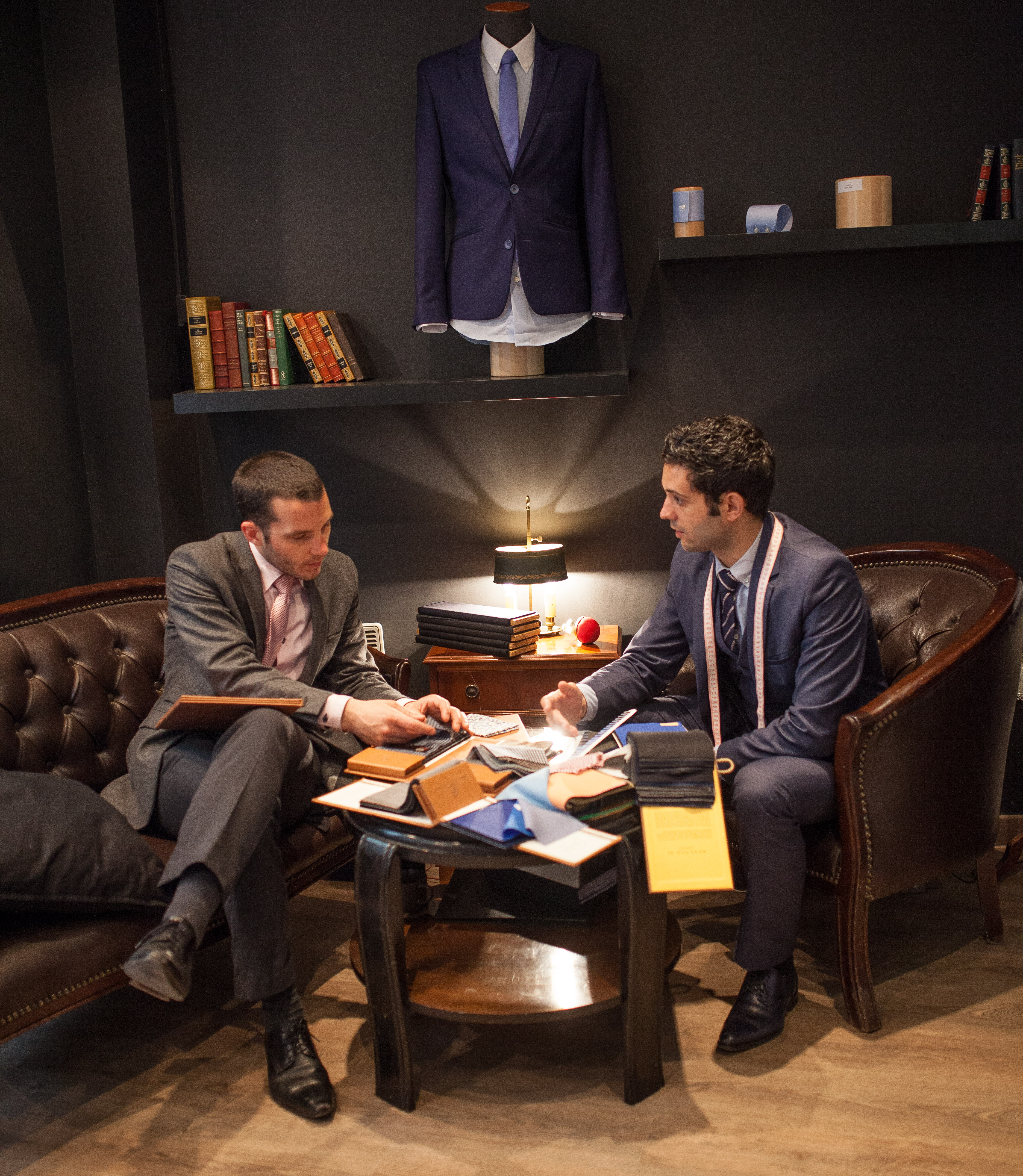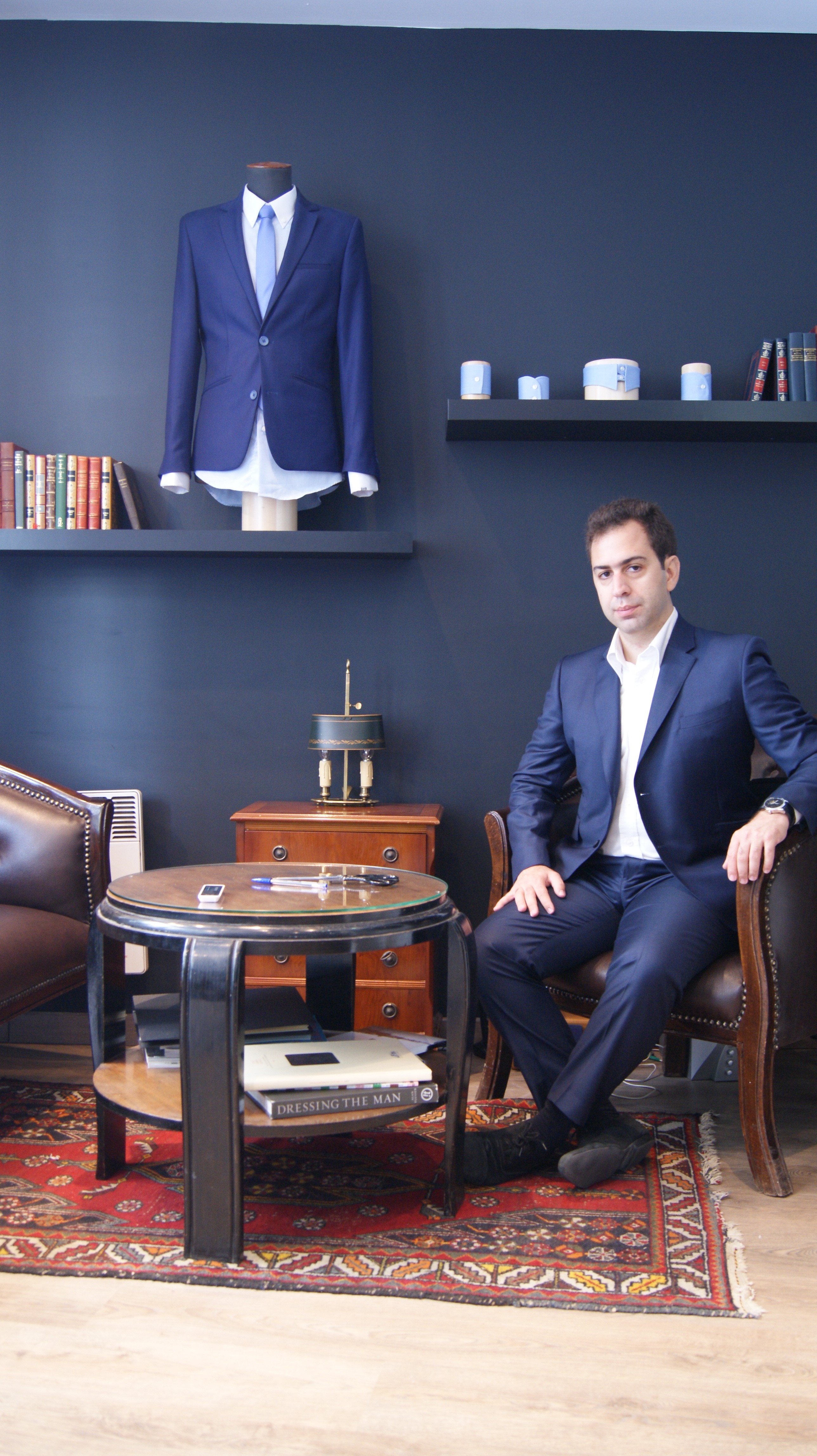 Tout a commencé il y a quelques semaines dans une boutique cosy de paris que vous retrouverez 9 rue de Palestro 75002 Paris. Confortablement assis dans un fauteuil nous faisons défiler les tissus et les matières pour choisir le costume de nos rêves.