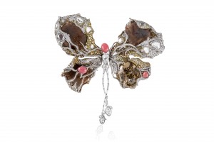 Cette broche parfaitement unique Black Label Masterpiece 2014, est montée sur un corps en titane et en or 18 carats. Pour former cette petite ballerine et ses ailes de papillons, les deux femmes se sont servies des pièces les plus majestueuses :