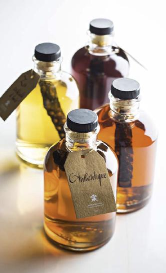 Ces liqueurs de dégustation tiennent leur richesse gustative du vieillissement en fût, qui peut aller de trois semaines jusqu’à trois mois en fonction des alcools et du résultat voulu.   Le bois constitue une des touches majeures de ces cocktails : de par son parfum, obtenu lors du vieillissement en cave. Ainsi que par leurs robes, toutes teintées de nuances se rapprochant de la couleur du bois, du doré au rouge brun foncé, présentées dans des flacons tels des parfums précieux. A cela nous retrouvons dans ces créations également quelques notes de fruits confits.